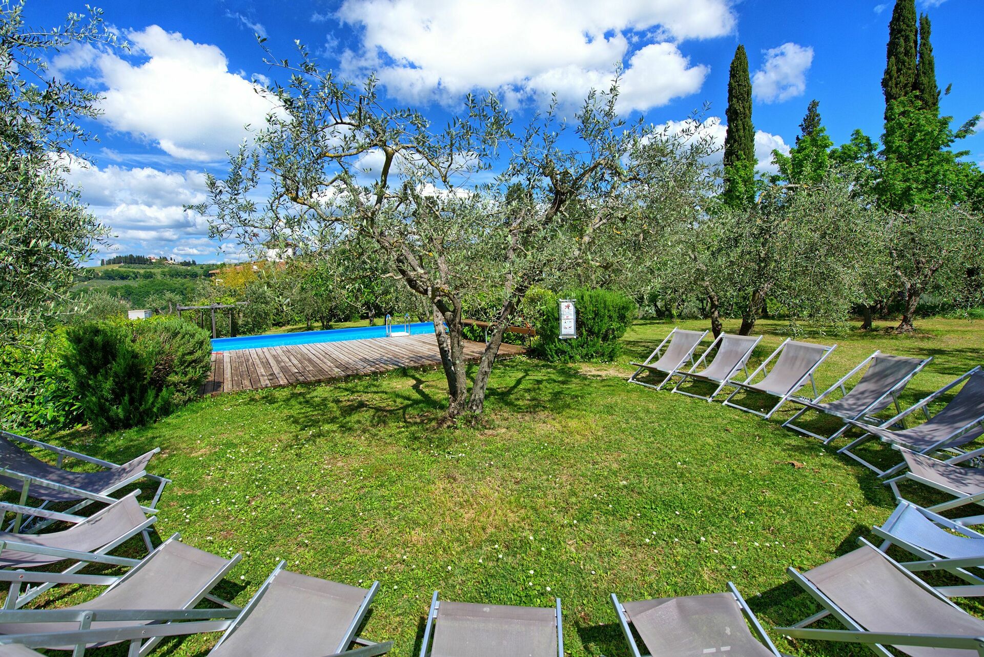 Gli ospiti di Maggiano hanno a disposizione un grande e panoramico giardino privato e una piscina (fuori terra) riservata al loro esclusivo utilizzo.
