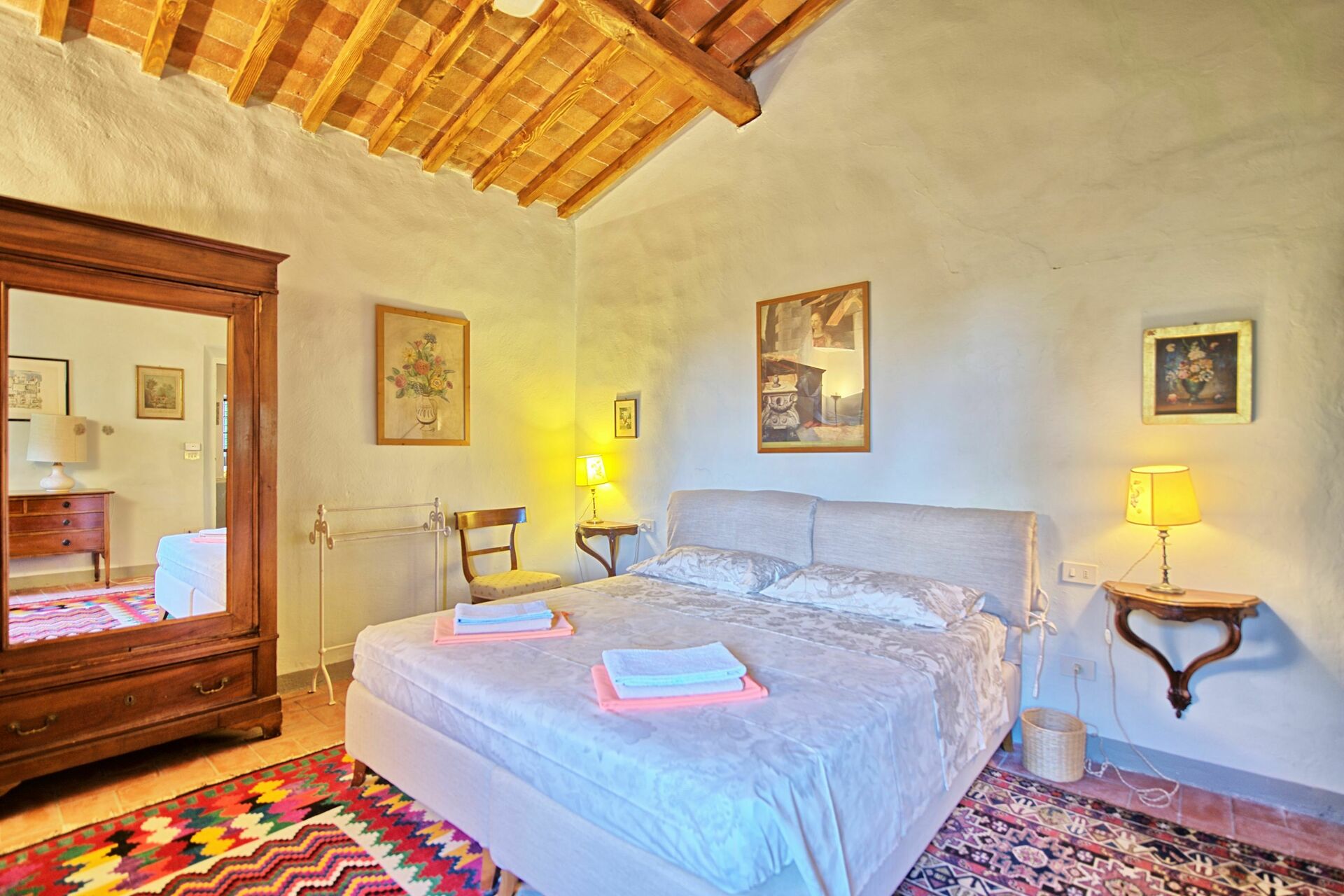 Nous étions 4 couples avec 2 adolescents. La maison est très spacieuse et offre de grands espaces autant à l'intérieur qu'à l'extérieur. A bonne distance de Florence, de Sienne et de San Gimignano. La décoration intérieur n'est pas moderne, mais correspond tout à fait au charme de ce type de maison italienne. La salle de jeu est un plus et la piscine même fraiche a fait le bonheur des plus courageux. Les autres ont pu se détendre au bord de la piscine sur les transats mis à notre disposition. Une salle de bain par famille ce qui est agréable. La literie est de qualité. La maison est très bien équipée, et si jamais il manquait quelque chose, Erick était toujours disponible pour nous rendre service. Il était d'une grande gentillesse.