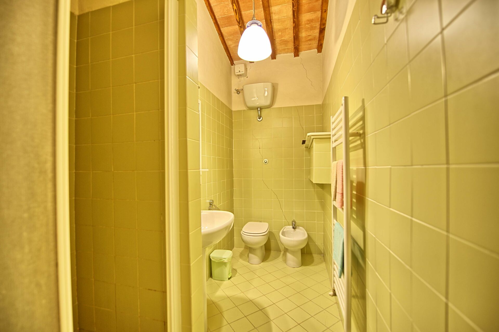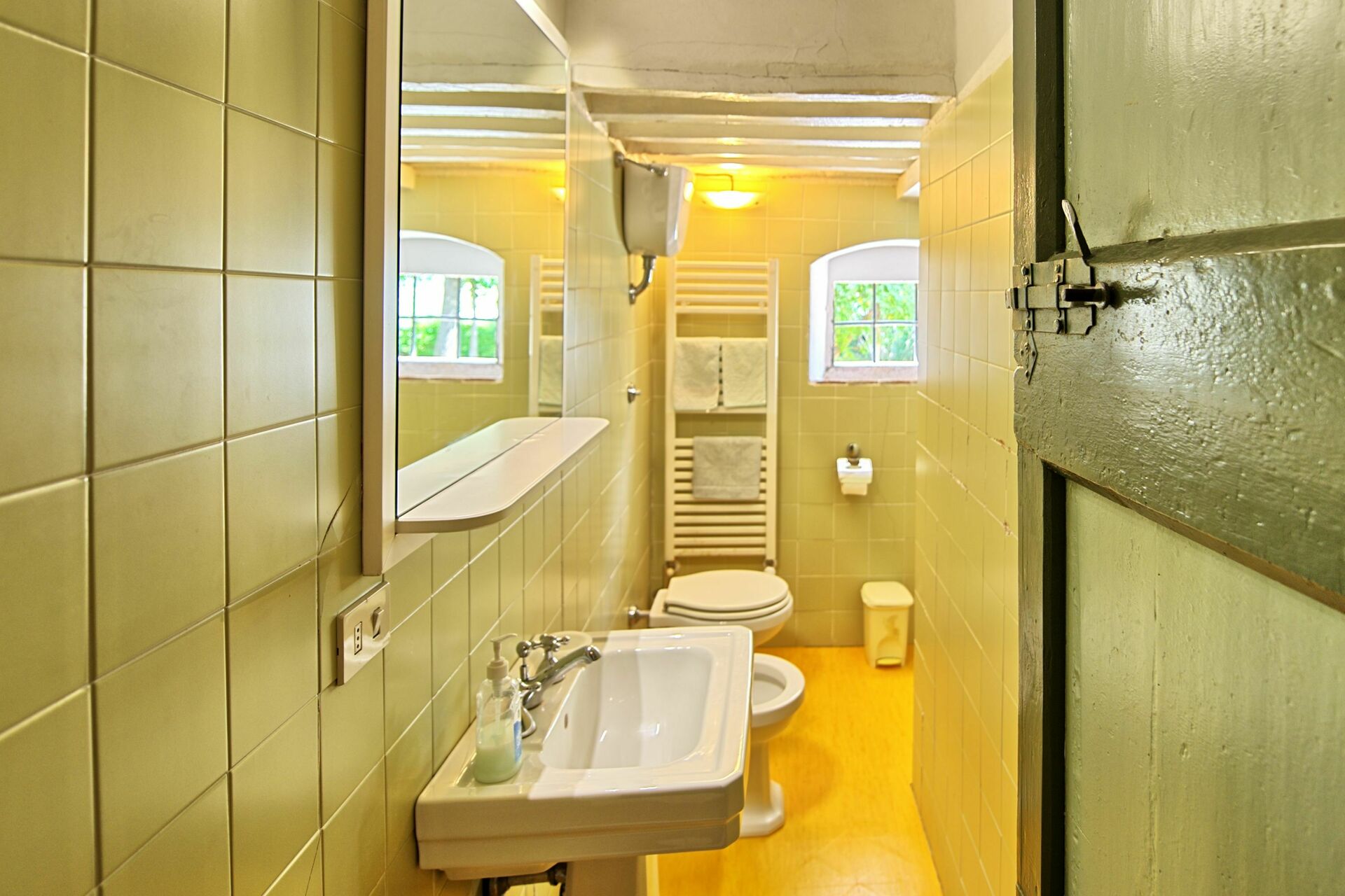 Das Haus ist etwas altertümlich eingerichtet, was aber sehr gut zu dem Haus und den schönen Böden und Decken passt. Der Besitz ist nicht echt auf dem Lande, obwohl man sich eigentlich so fühlt und alle Vorteile geniessen kann: es ist ruhig mit einer wunderbaren Aussicht. In dem Ort Montagnana kann man auch zu Fuss einkaufen gehen (ein bisschen Zeit braucht man allerdings) und es gibt eine Pizzeria, die zwar nicht schön ist, aber die beste Pizza der Welt backt.