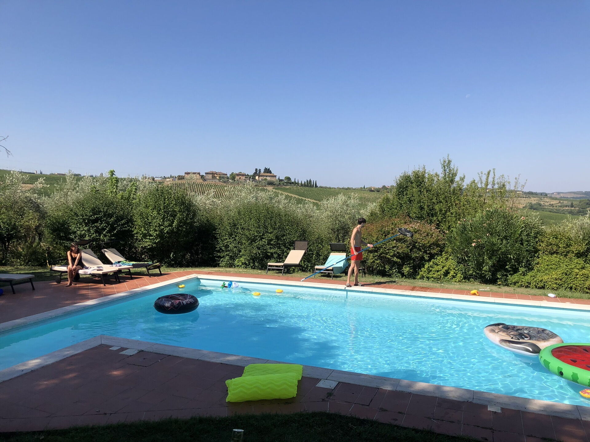 Vår familj, vuxna, ungdomar och barn hade en underbar vecka. Vi lagade fantastiska måltider, och vilka COOP det finns i Italien! Köket och loggian var härliga. Terassen vid poolen och allt badande i poolen behövdes i värmen. Våra vackra sovrum och vardagsrum njöt vi av. Utflykter till Florens, Volterra, San Gimingano och vingårdar. Vi hade en riktig familjevecka. Kul med bordtennis och biljard. Toscana är det vackraste landskap som vi vet. Hoppas att kunna återvända. Ciao! Familjen Lindblad från Stockholm