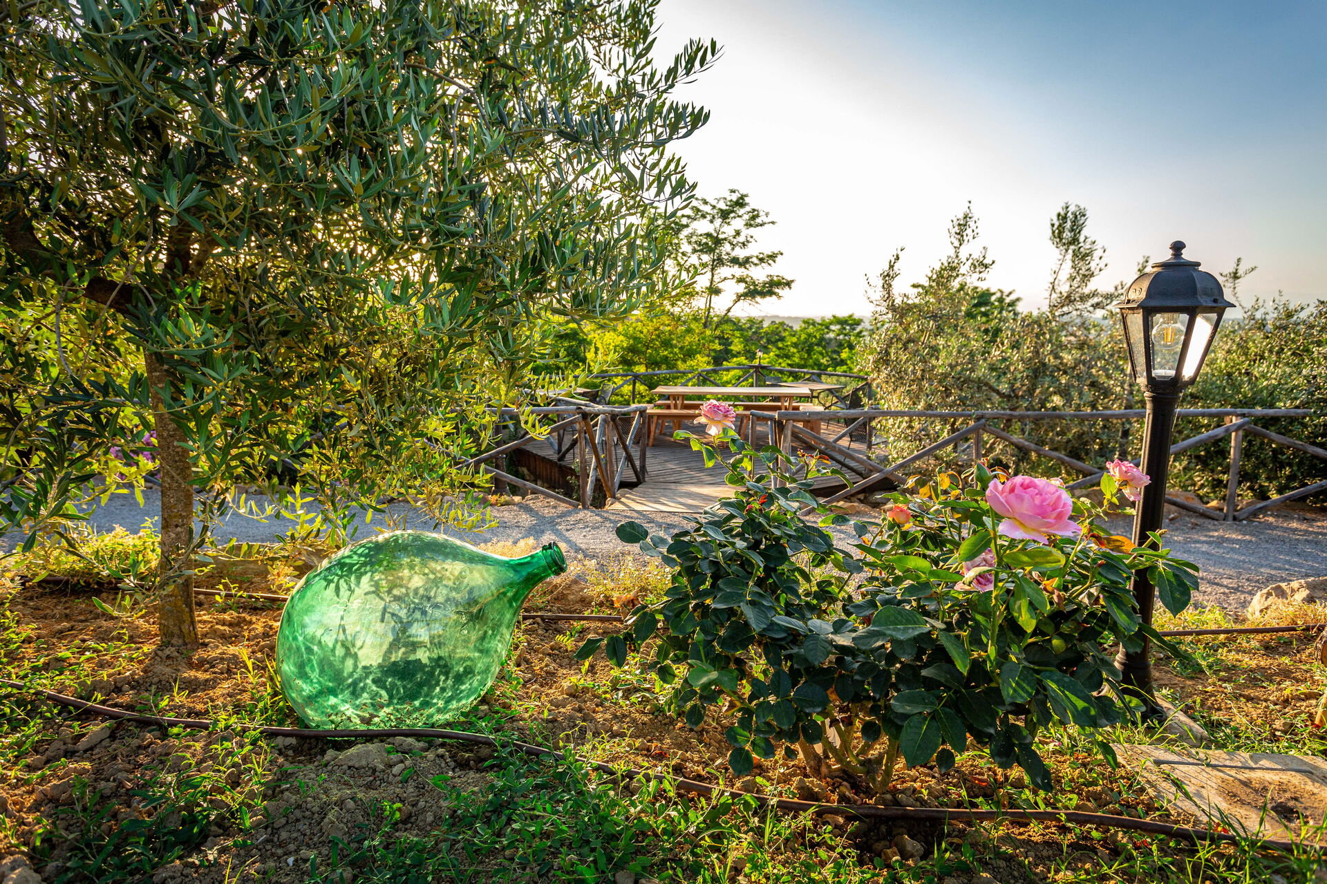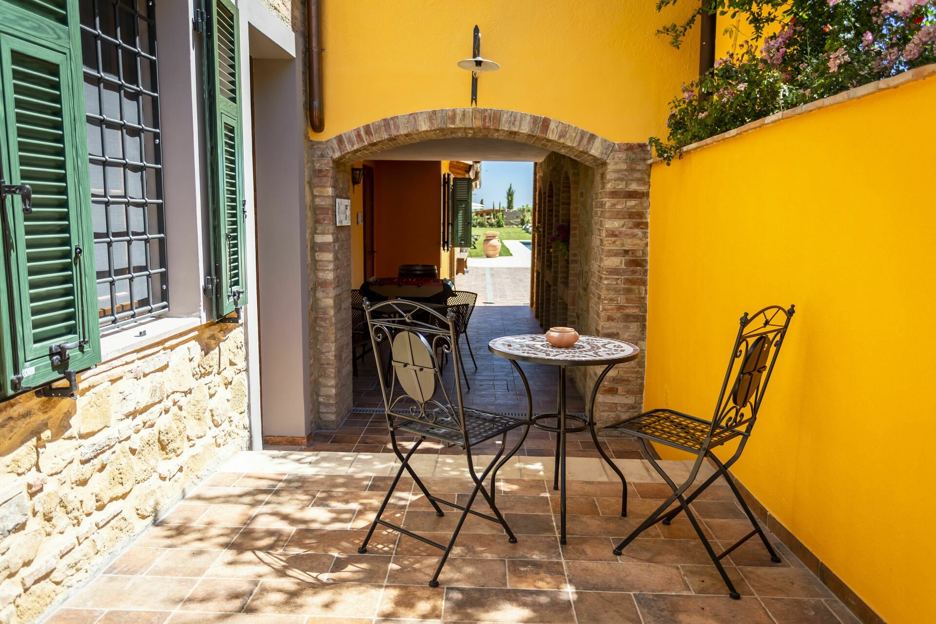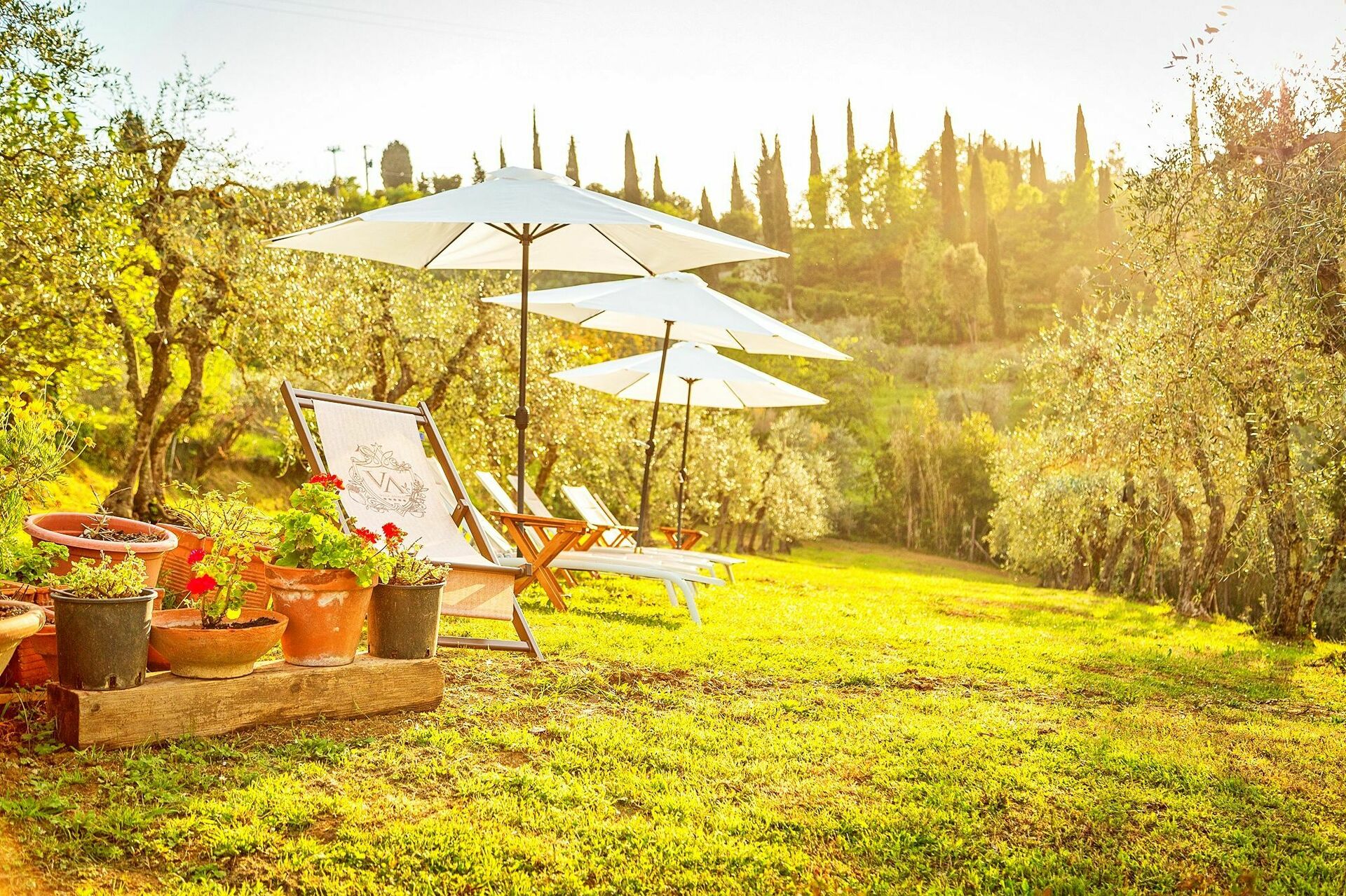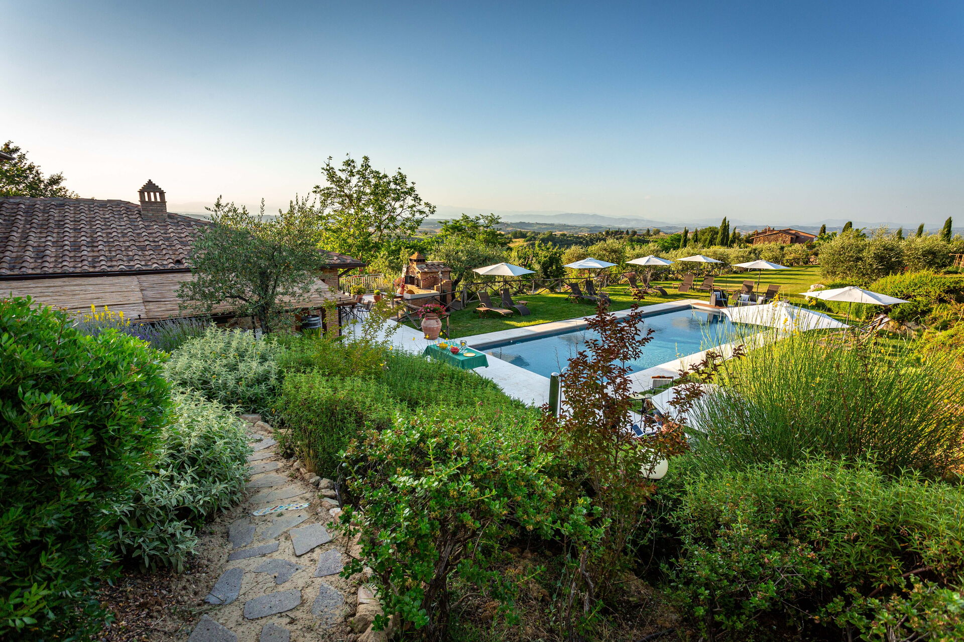 La struttura è circondata da un bel giardino curato, con alberi, piante e fiori, da cui si può godere di una meravigliosa vista panoramica sulla natura circostante e sul paesaggio collinare tipico del Chianti. Numerose are attrezzate sono a disposizione degli ospiti per potersi rilassare e divertire nel giardino, compreso un parco giochi per i bambini più piccoli.