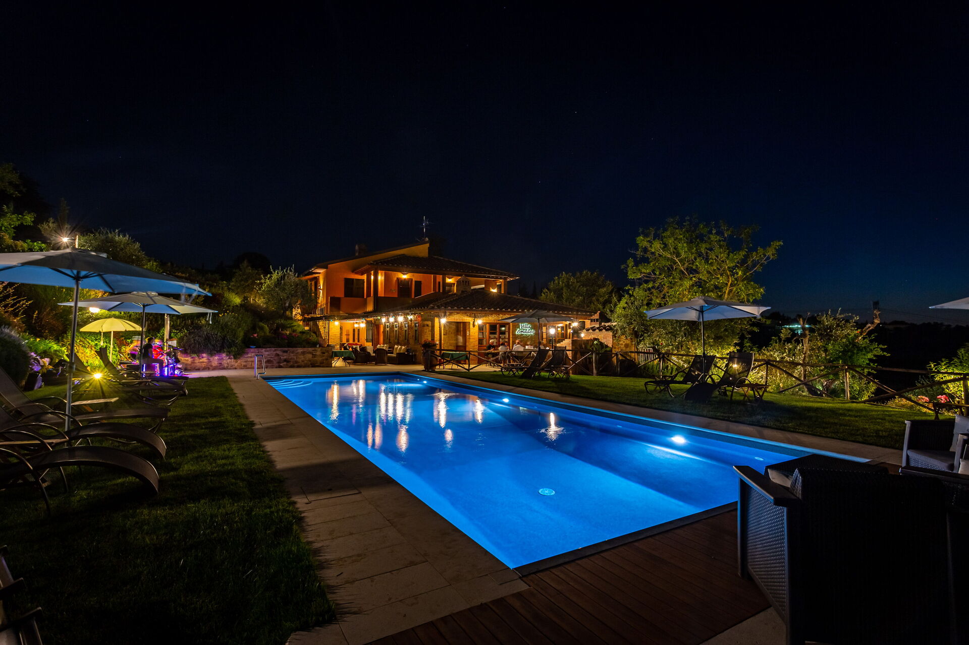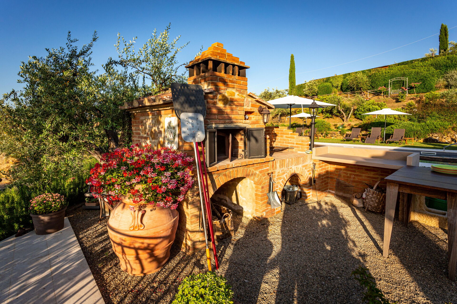 La piscina è ad uso esclusivo degli ospiti (e dei proprietari quando presenti) ed è dotata di lettini ed ombrelloni: è il luogo ideale per rinfrescarsi e rilassarsi nelle calde giornate estive insieme ad amici e familiari. Un'area barbecue e una zona pranzo esterna sono a disposizione per organizzare i pasti all'aperto.