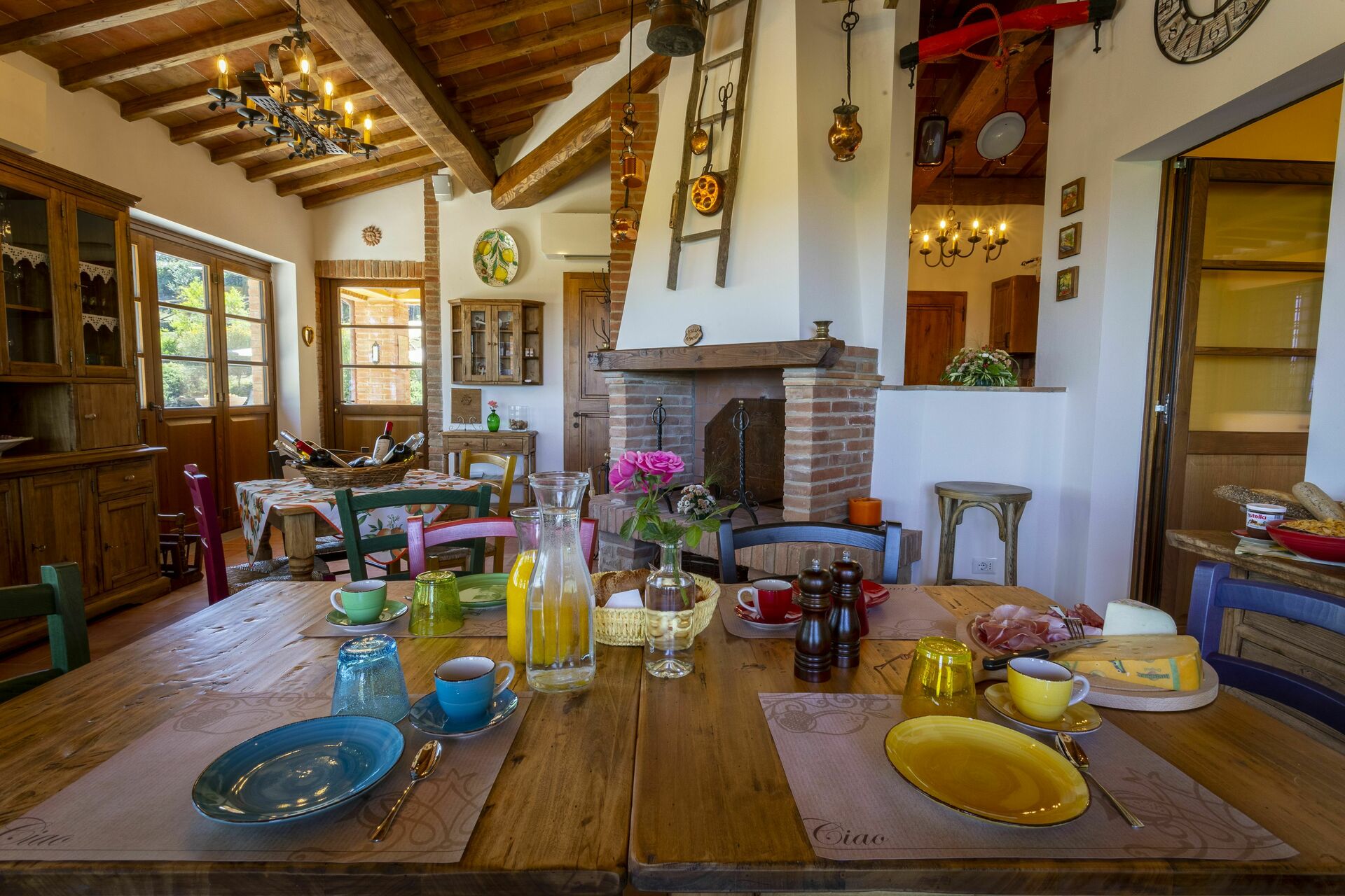 Taverna con graziosa zona soggiorno/pranzo con grande camino e cucina ben attrezzata (2 grandi frigoriferi, freezer, lavastoviglie, grande piano cottura adatto anche a lezioni di cucina, macchina da caffè Espresso, bollitore, tostapane, spremiagrumi), bagno con doccia.