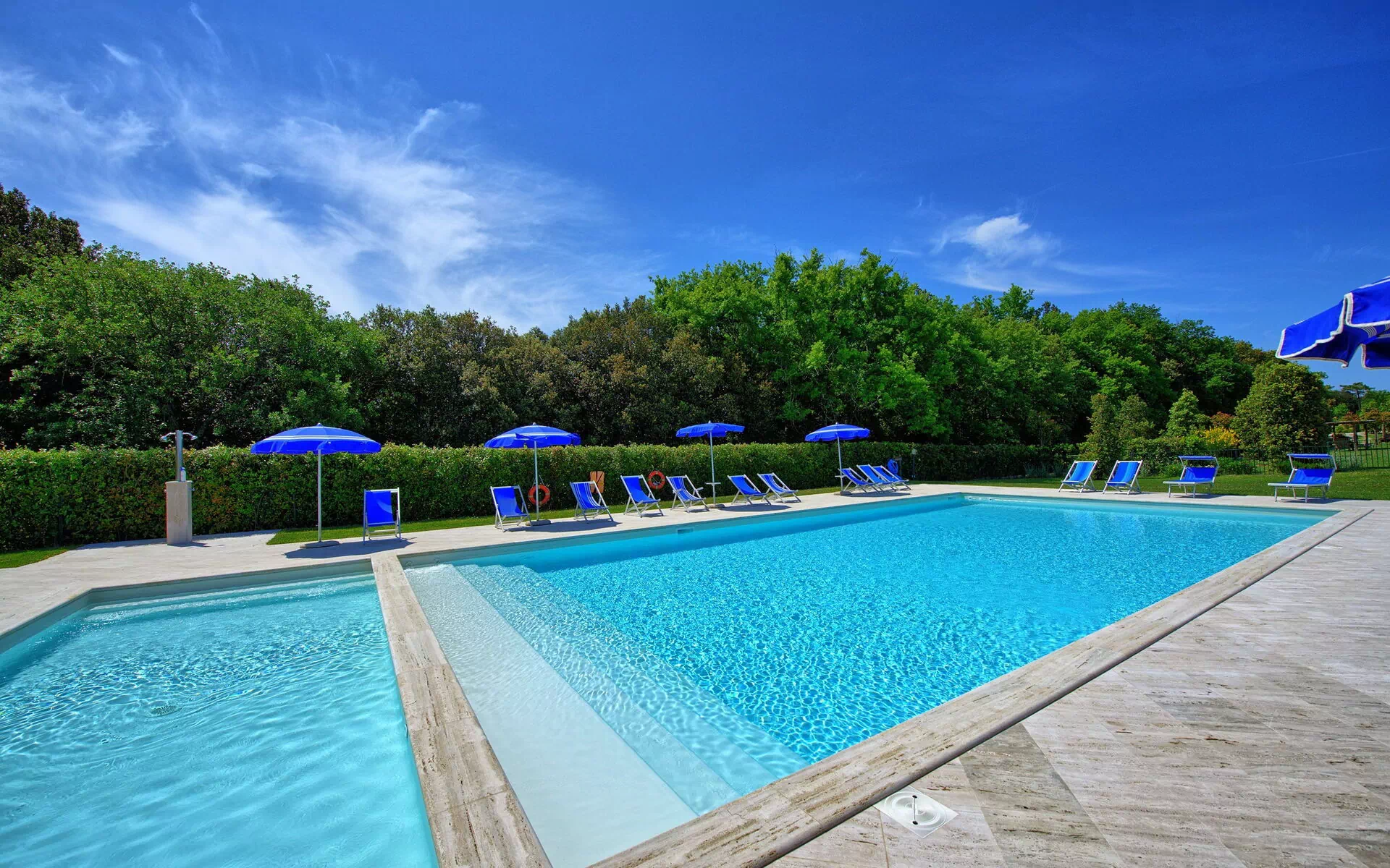 - piscina recintata il cui uso è condiviso con gli ospiti delle 5 unità (14 x 8 metri; profondità: 1,20 metri; aperta dalle ore 7:30 alle ore 20:30)