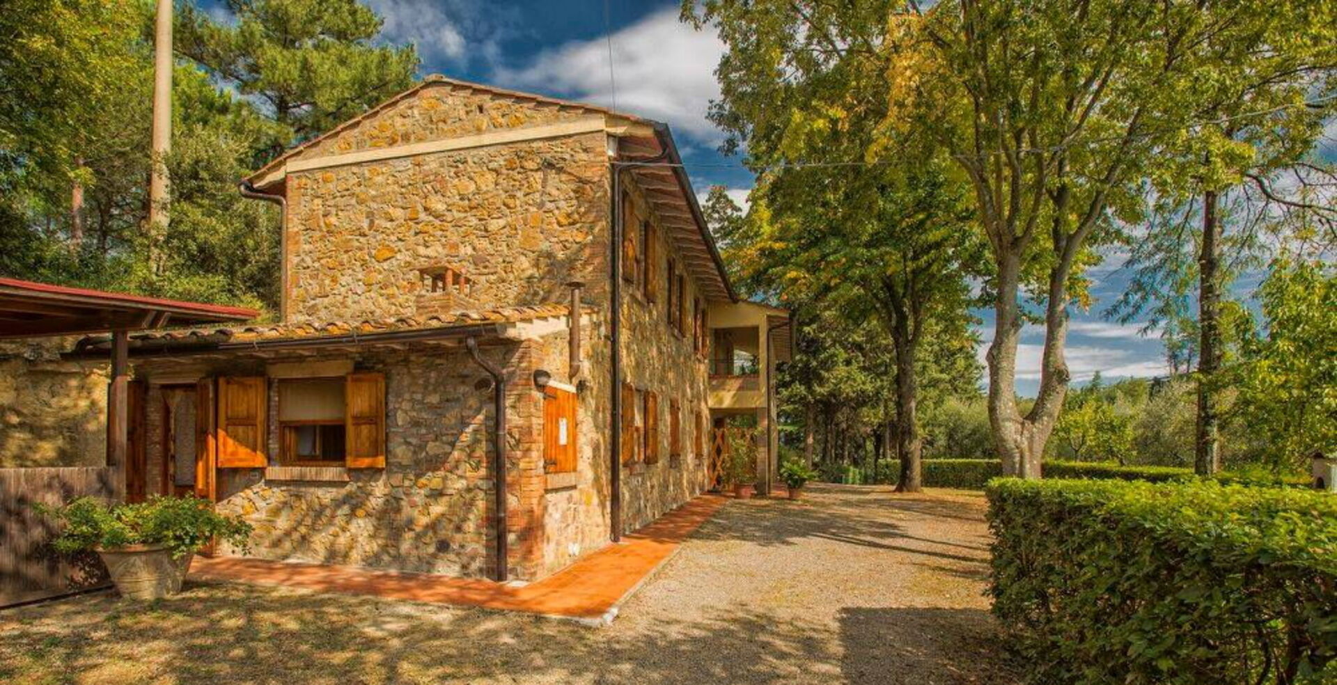 Gli appartamenti sono arredati in stile rustico toscano e dispongono tutti di uno spazio esterno privato ed attrezzato per mangiare all'aria aperta: la posizione è tranquilla e girando per la grandissima proprietà potrete godere di bellissimi panorami delle colline circostanti. Se siete alla ricerca di un panoramico posto in Toscana non rimarrete delusi da Leccino e dai suoi 5 appartamenti; gli spazi esterni sono grandi e ospitano sentieri, una piscina (recintata), uno spazio giochi per bambini e una panoramica terrazza situata all'ombra di una grande quercia da dove poter spaziare con la vista su uno spettacolare panorama dove si susseguono colline, montagne, paesi, boschi e campi coltivati.