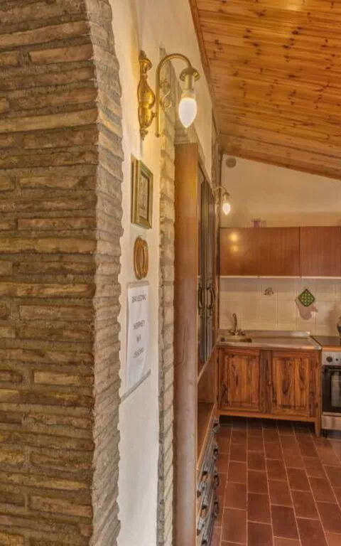 Piano terreno: zona pranzo con cucina (forno, tostapane, macchina da caffè espresso), camera matrimoniale, bagno con doccia.