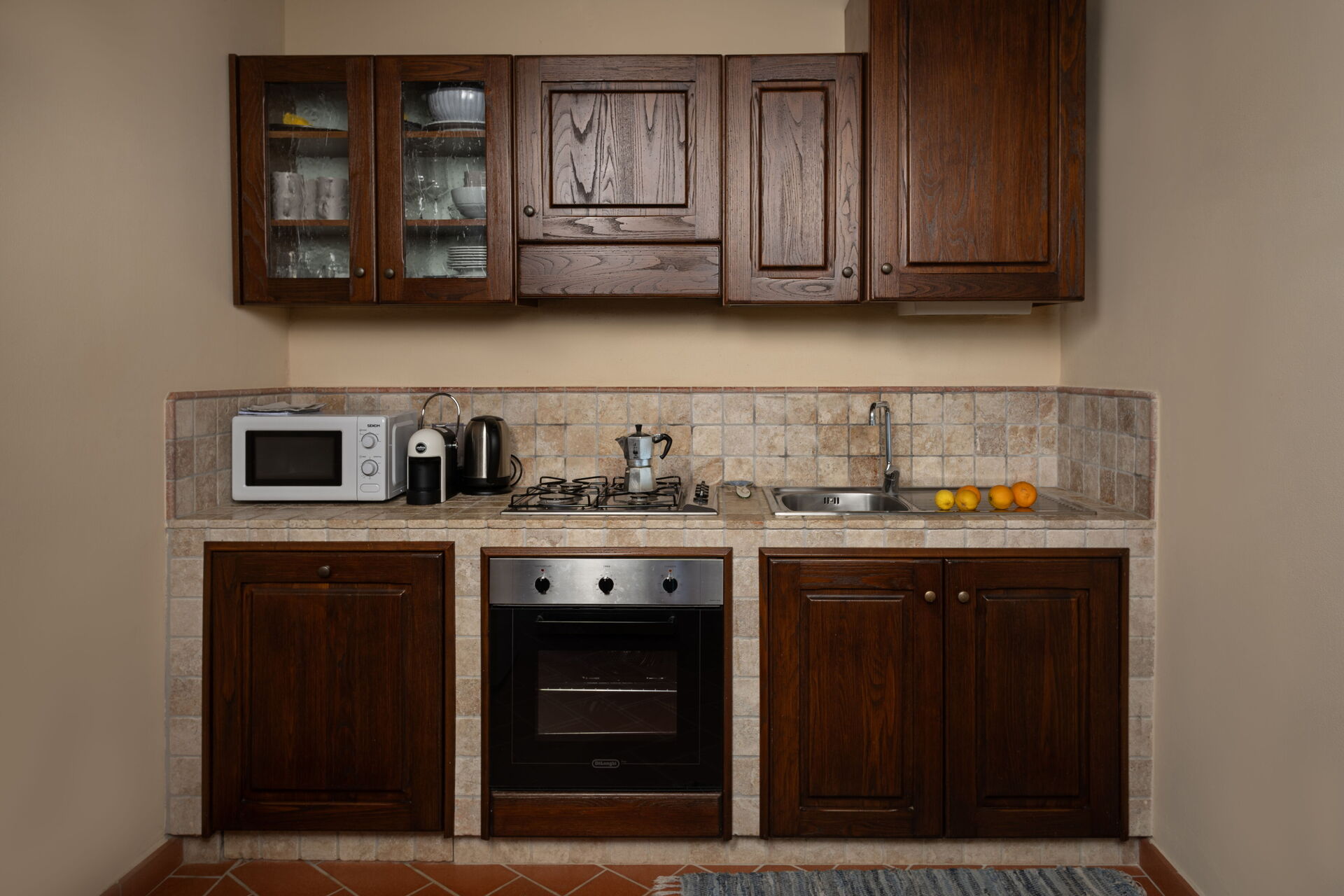 Piano terreno: ingresso riservato con giardino privato su soggiorno con zona pranzo e cucina (lavastoviglie, forno, freezer, microonde, macchina da caffè, tostapane, bollitore), 2 camere matrimoniali, 2 bagni con doccia.