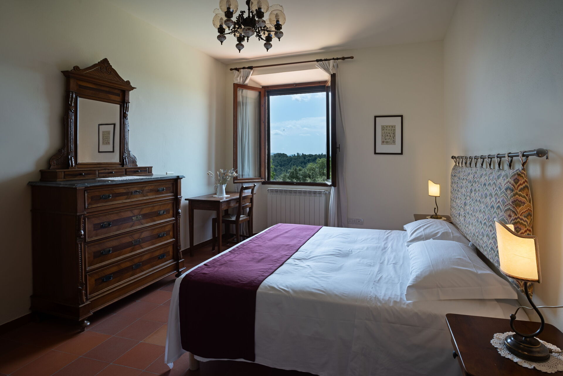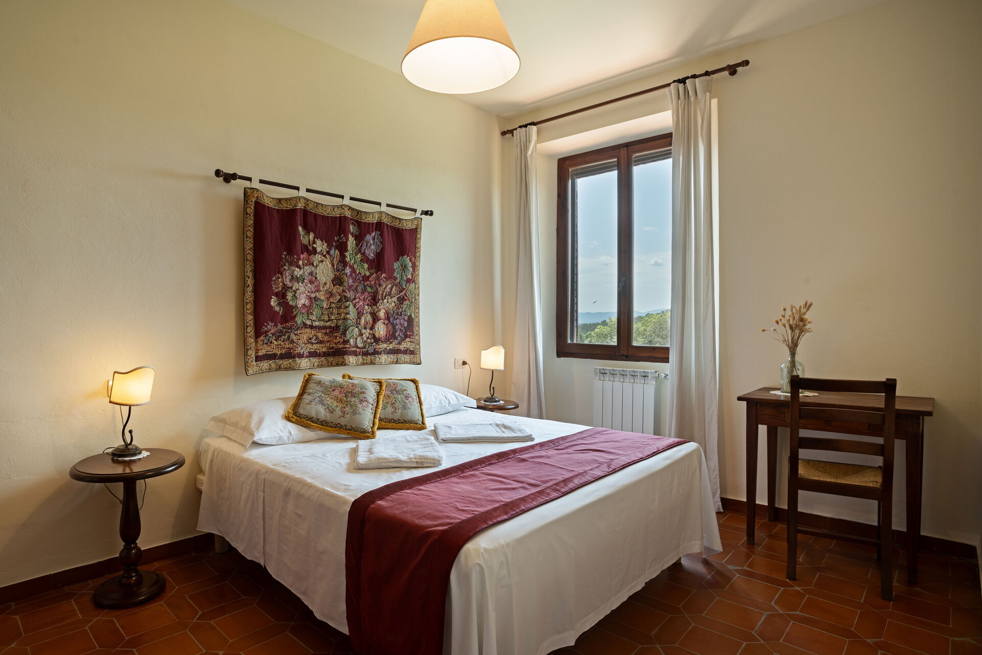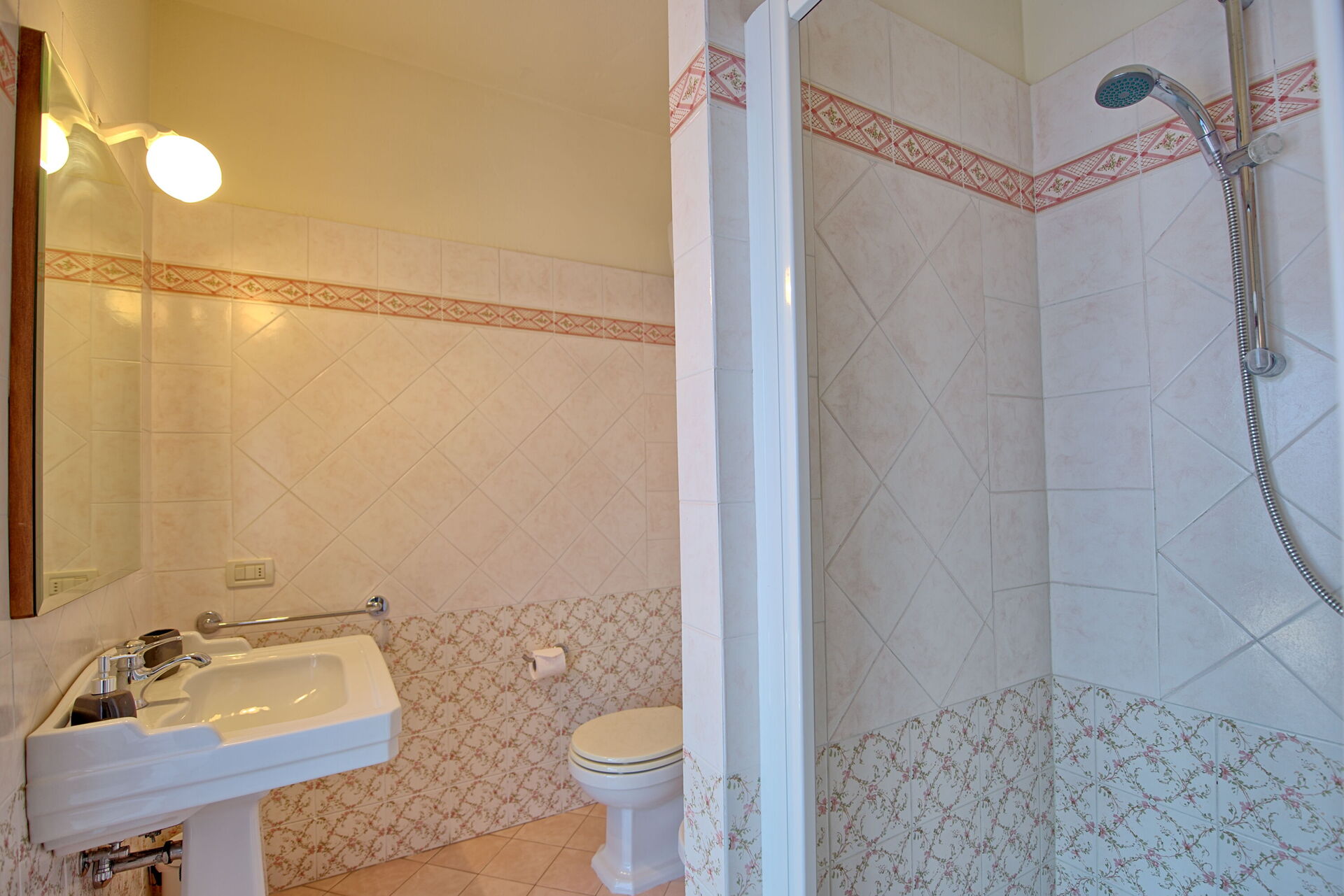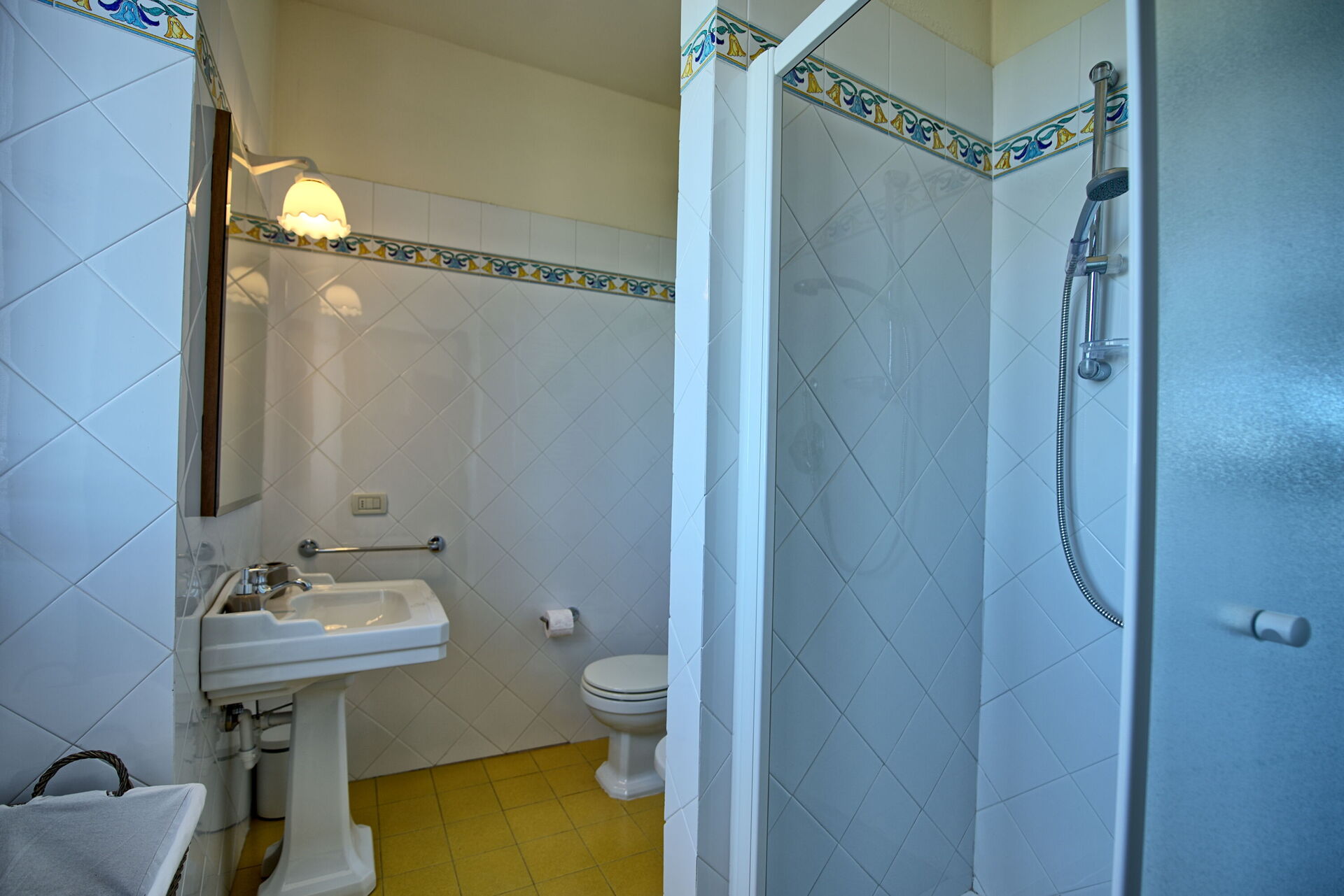 Primo piano: camera matrimoniale con bagno privato con doccia, camera con 2 letti singoli