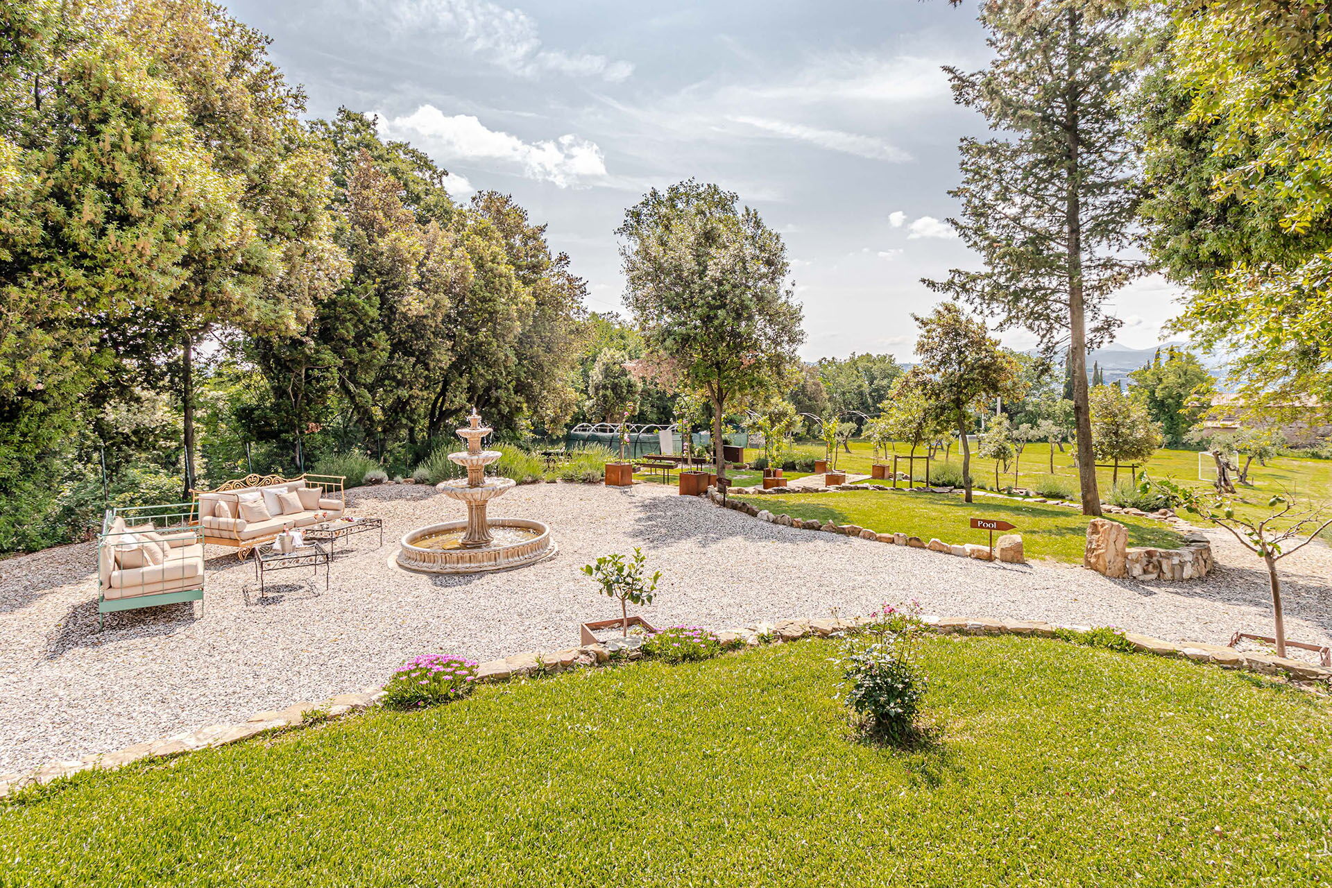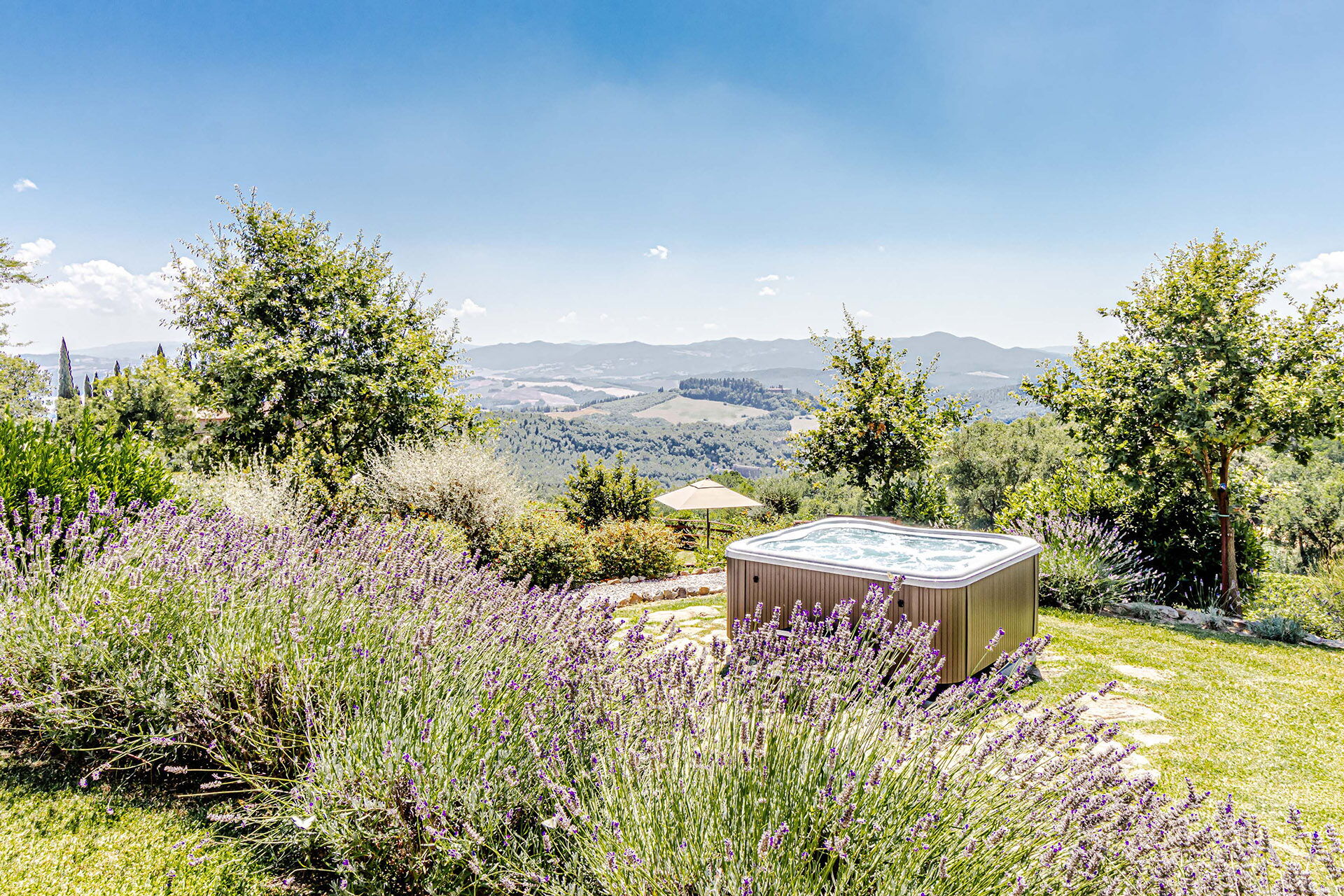 Le panoramiche zone esterne offrono numerose aree che permettono agli ospiti di trascorrere un piacevole soggiorno in famiglia o tra amici: sarà possibile rilassarsi a bordo piscina, nella vasca idromassaggio o nella zona solarium ideale per trascorrere indimenticabili momenti sotto il sole della Toscana.