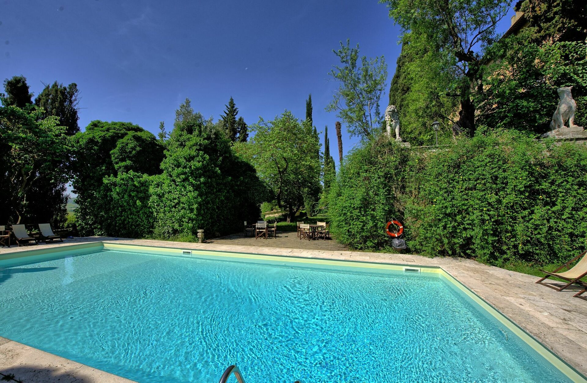 Montegufoni offre un ambiente provvisto di tutti i comfort ed in particolare di una fantastica piscina dove passare ore di relax con amici e familiari, un ampio giardino dove accogliere i propri ospiti che renderà unica la vostra permanenza nei periodi estivi e primaverili.