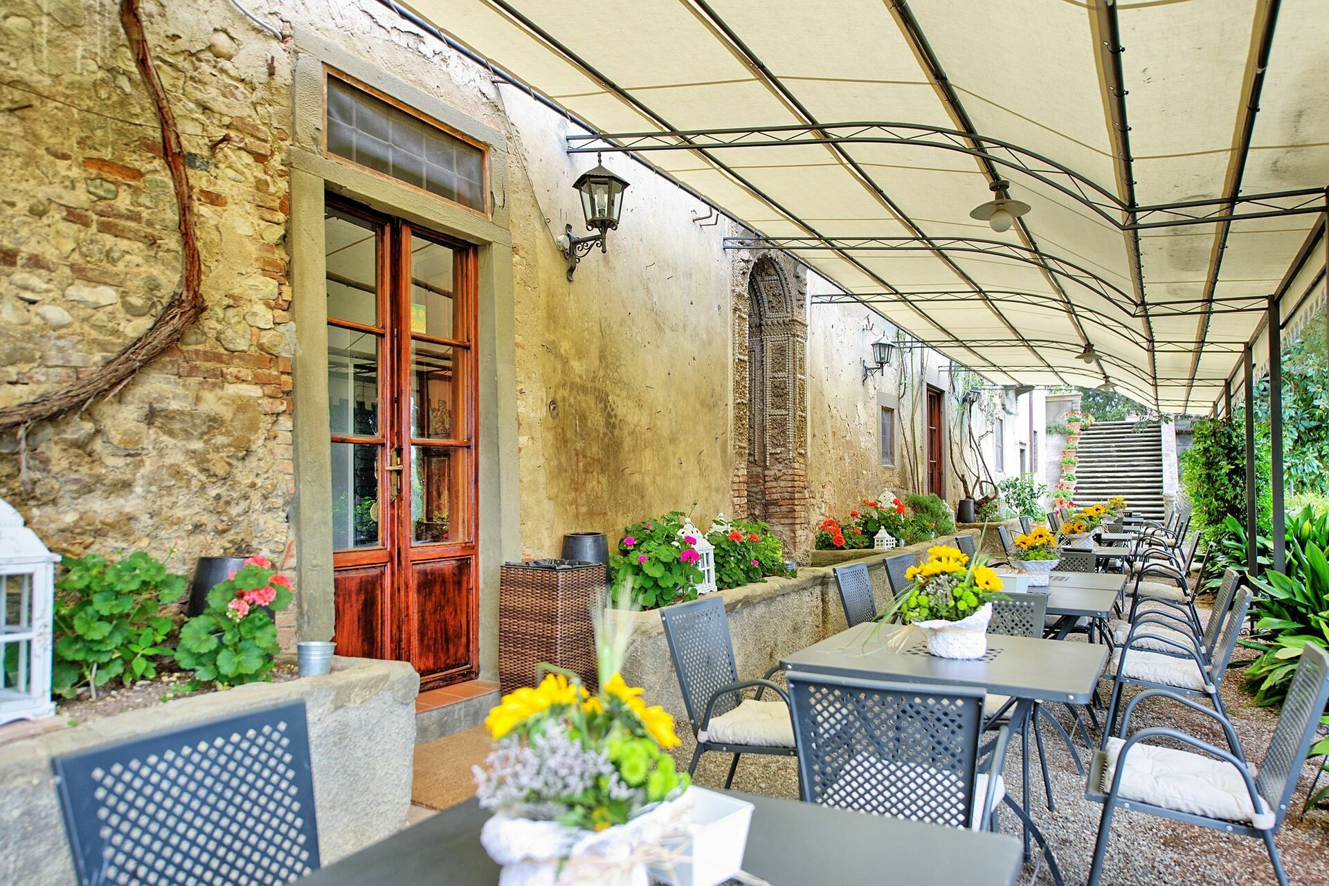The property is one of the most incredible places where we have stayed while we were in Italy with a very nice swimming pool and garden. It is very centraly situated and the very efficient and friendly Reception staff will give you lots of nearby places to visit and how to get there. The staff all speak very good English. Also try out the Restaurant as they make really nice food and the menu changes daily. Bring Mosquito repellent.