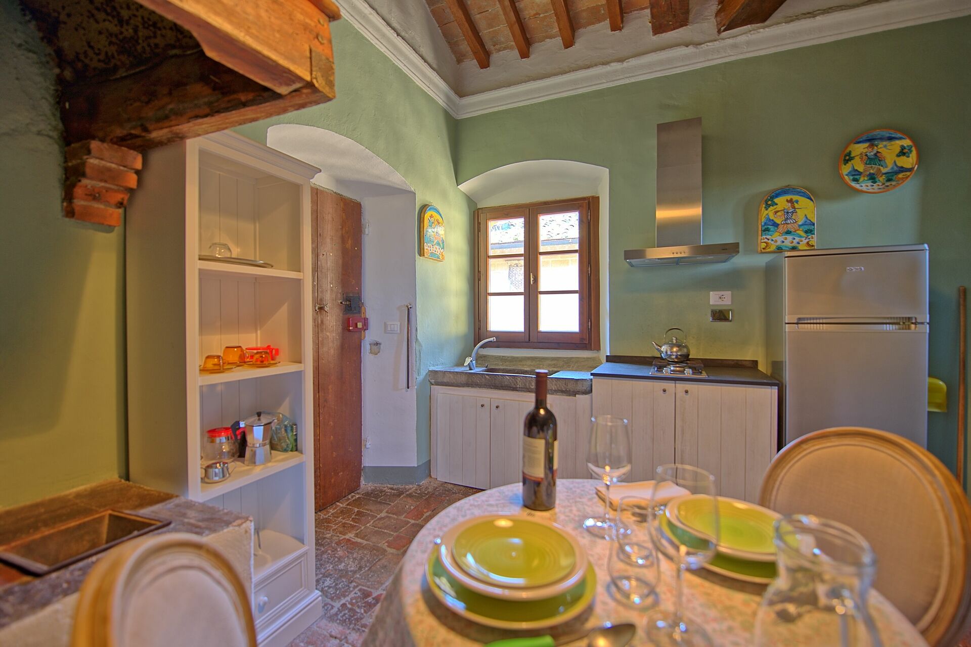 1° Piano: cucina e tavolo da pranzo, camera matrimoniale, bagno con doccia.