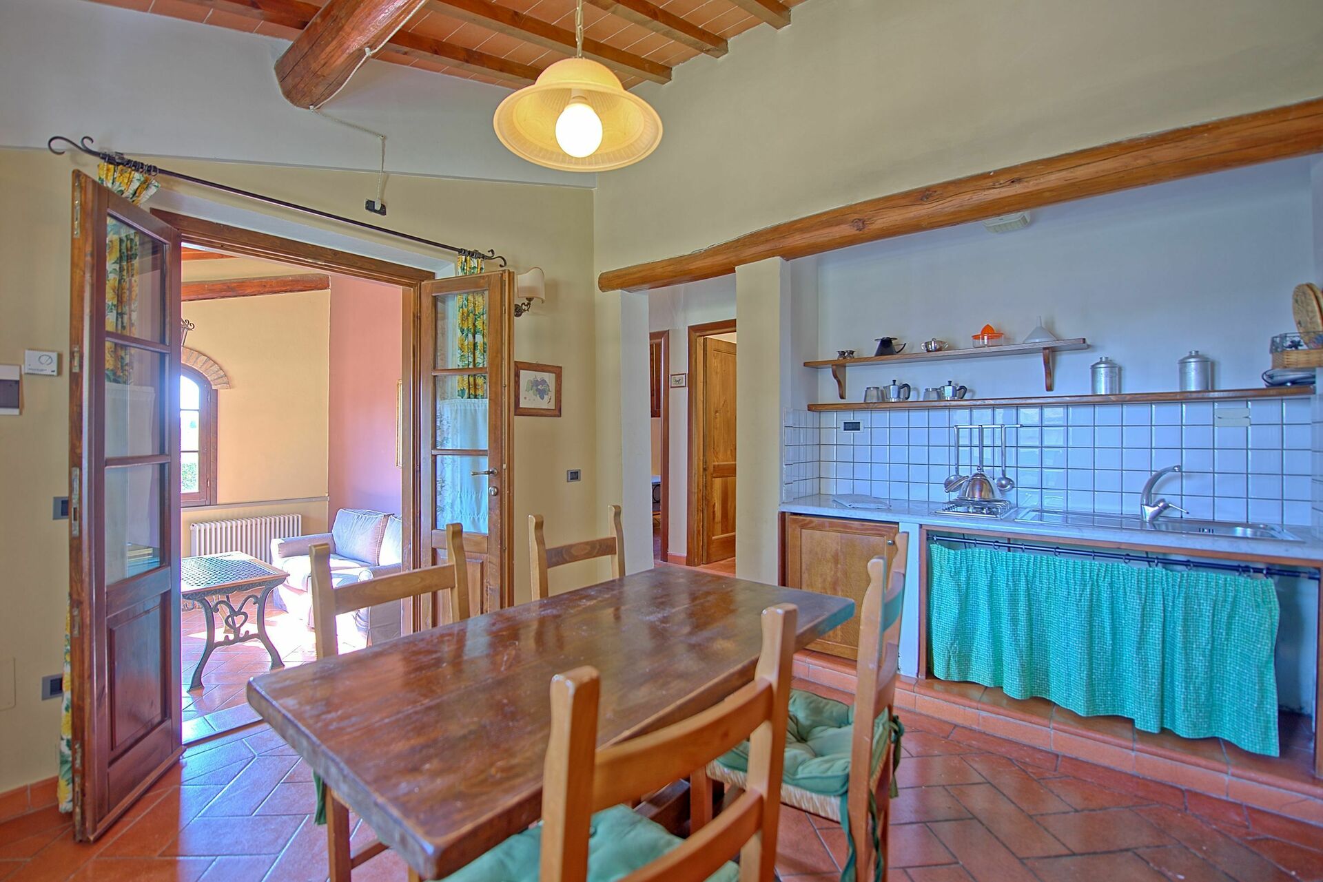 Piano terreno: cucina con tavolo da pranzo e soggiorno, 2 camere matrimoniali, bagno con doccia.