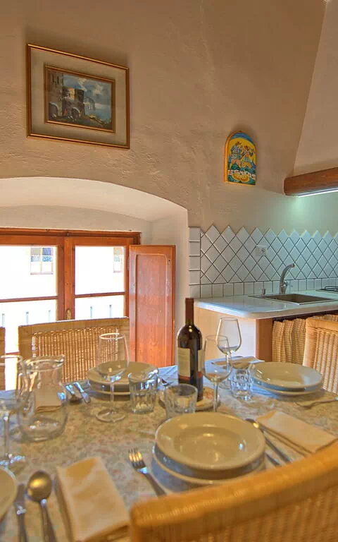 2° Piano: piccolo soggiorno con accesso alla cucina con tavolo da pranzo, bagno con doccia, camera singola con bagno privato con doccia, camera matrimoniale, camera con 2 letti singoli.