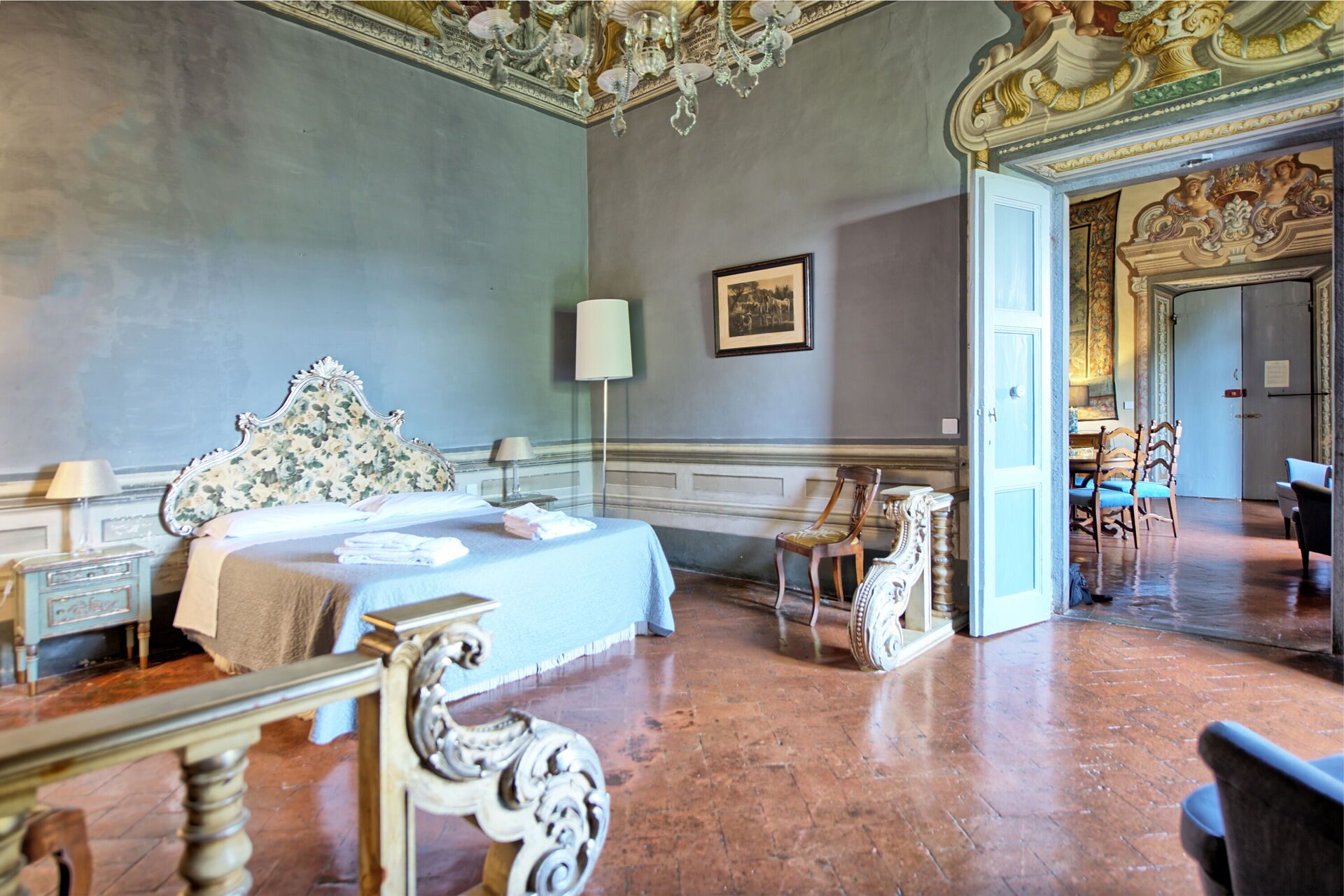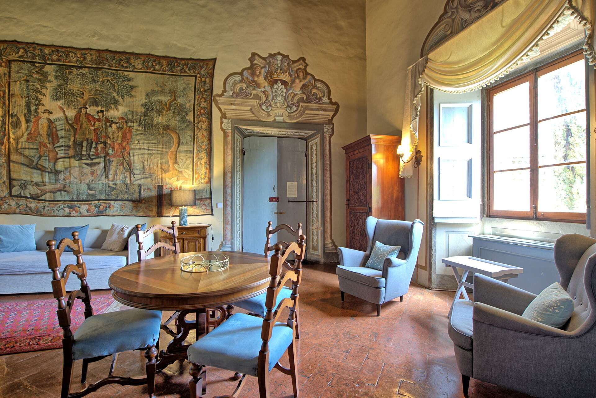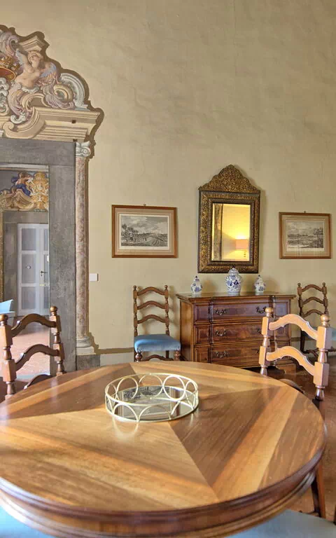 Appartamento situato nella parte nobile del castello con grandi finestre sul giardino.