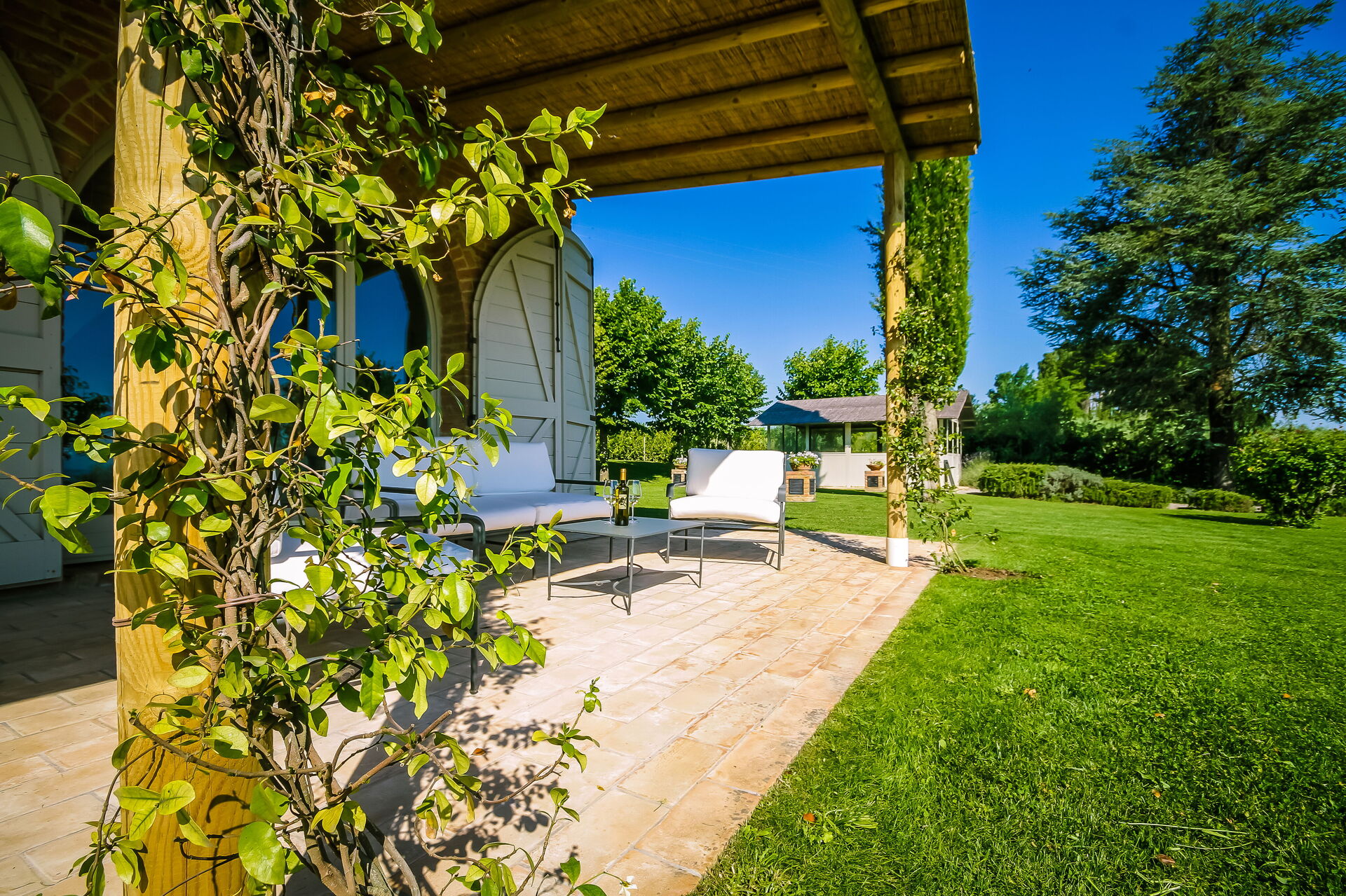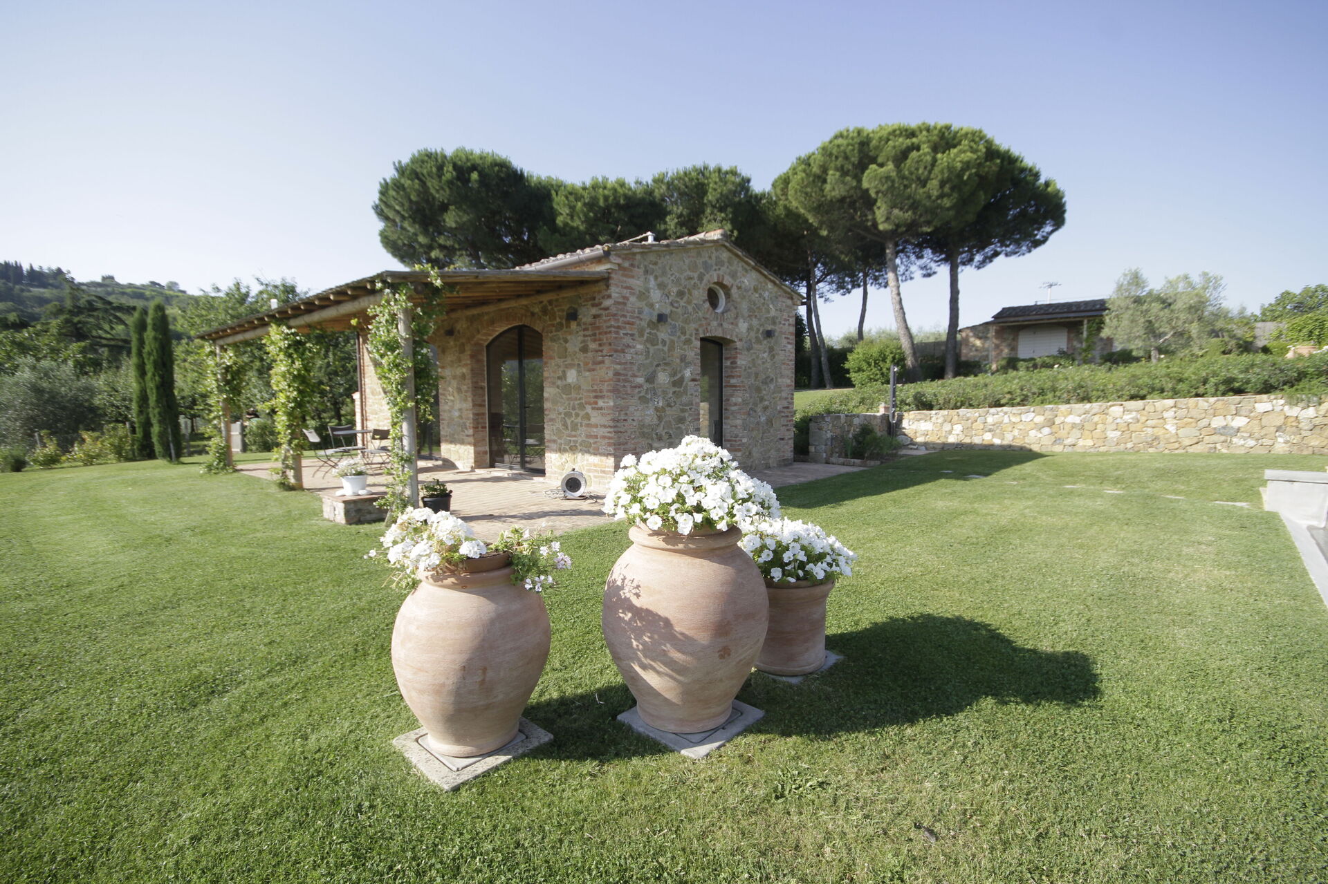 All'esterno gli ospiti possono usufruire di un ampio e ben curato giardino e di una super panoramica piscina privata attrezzata con sdraio e ombrelloni: il luogo ideale in cui rilassarsi e rinfrescarsi nelle soleggiate giornate estive in compagnia di amici e familiari.