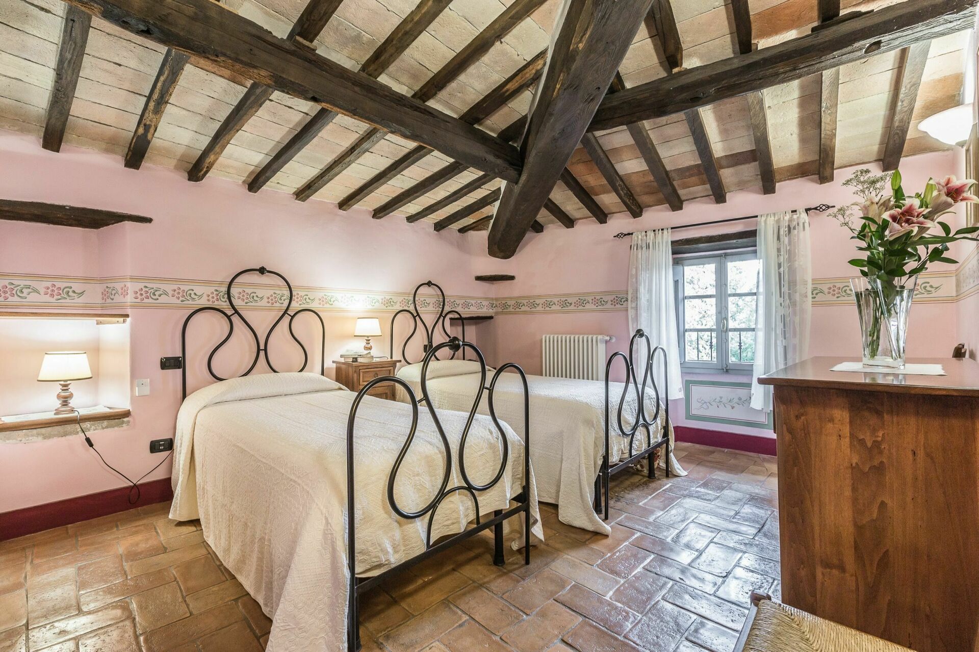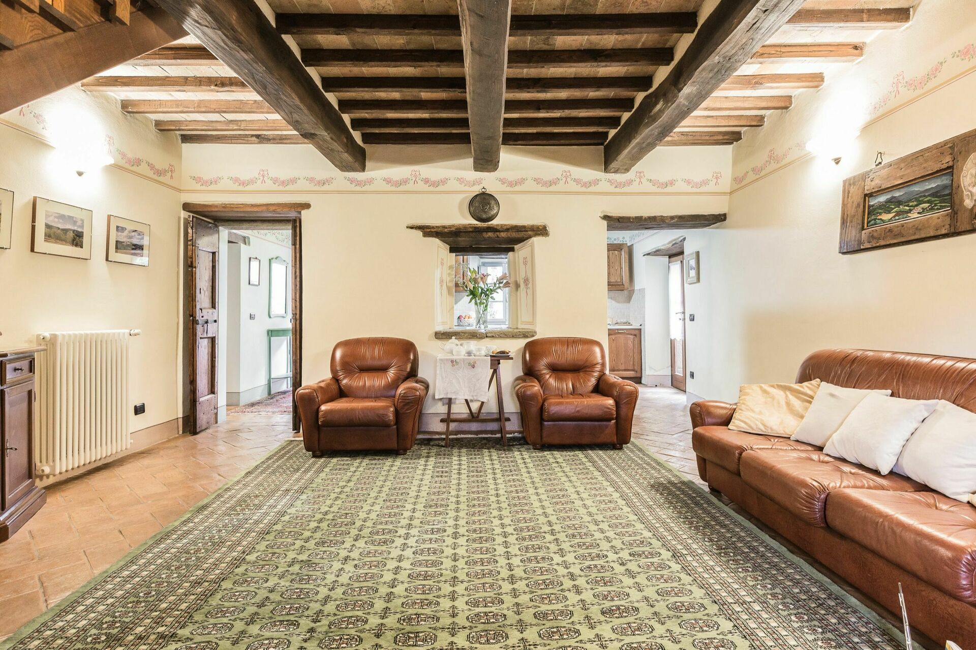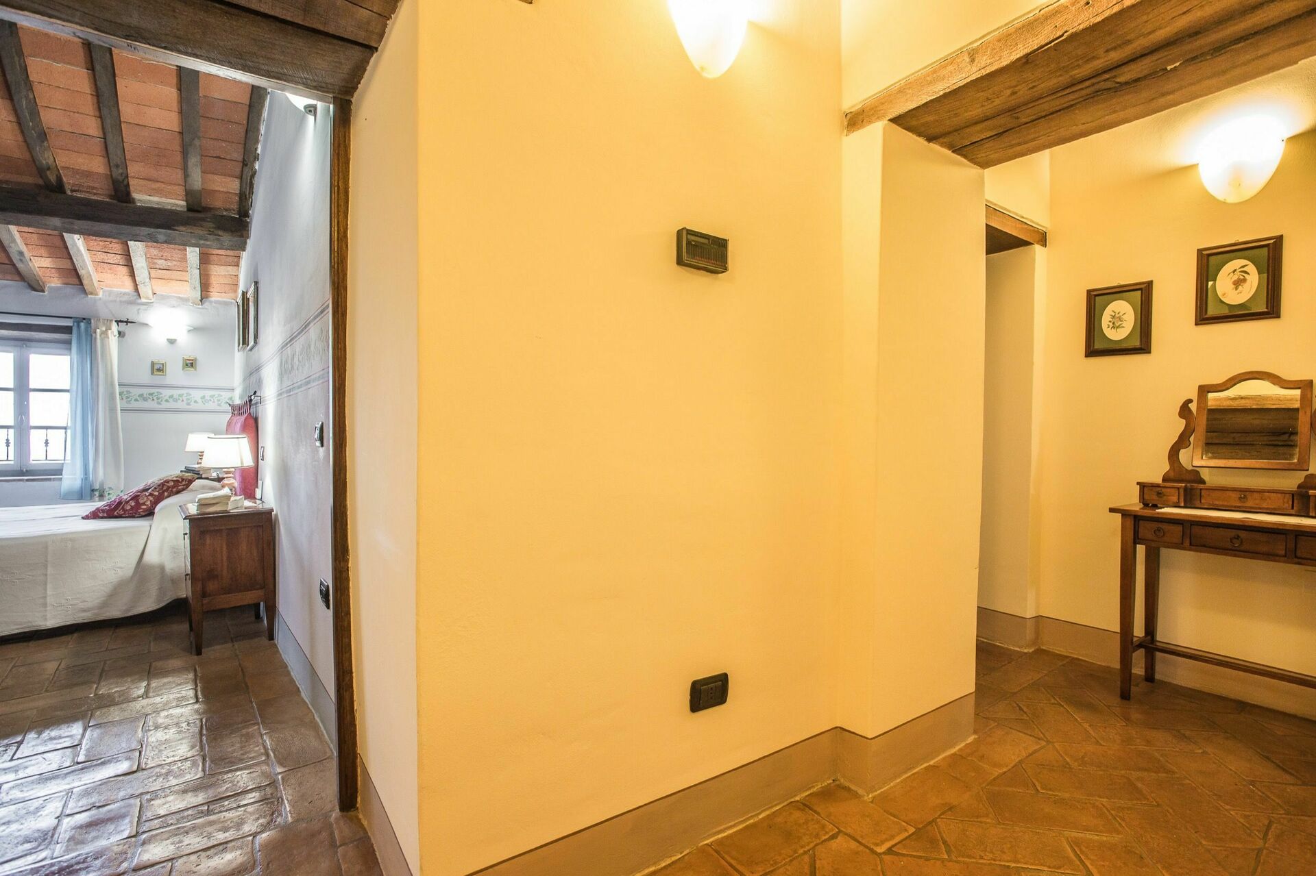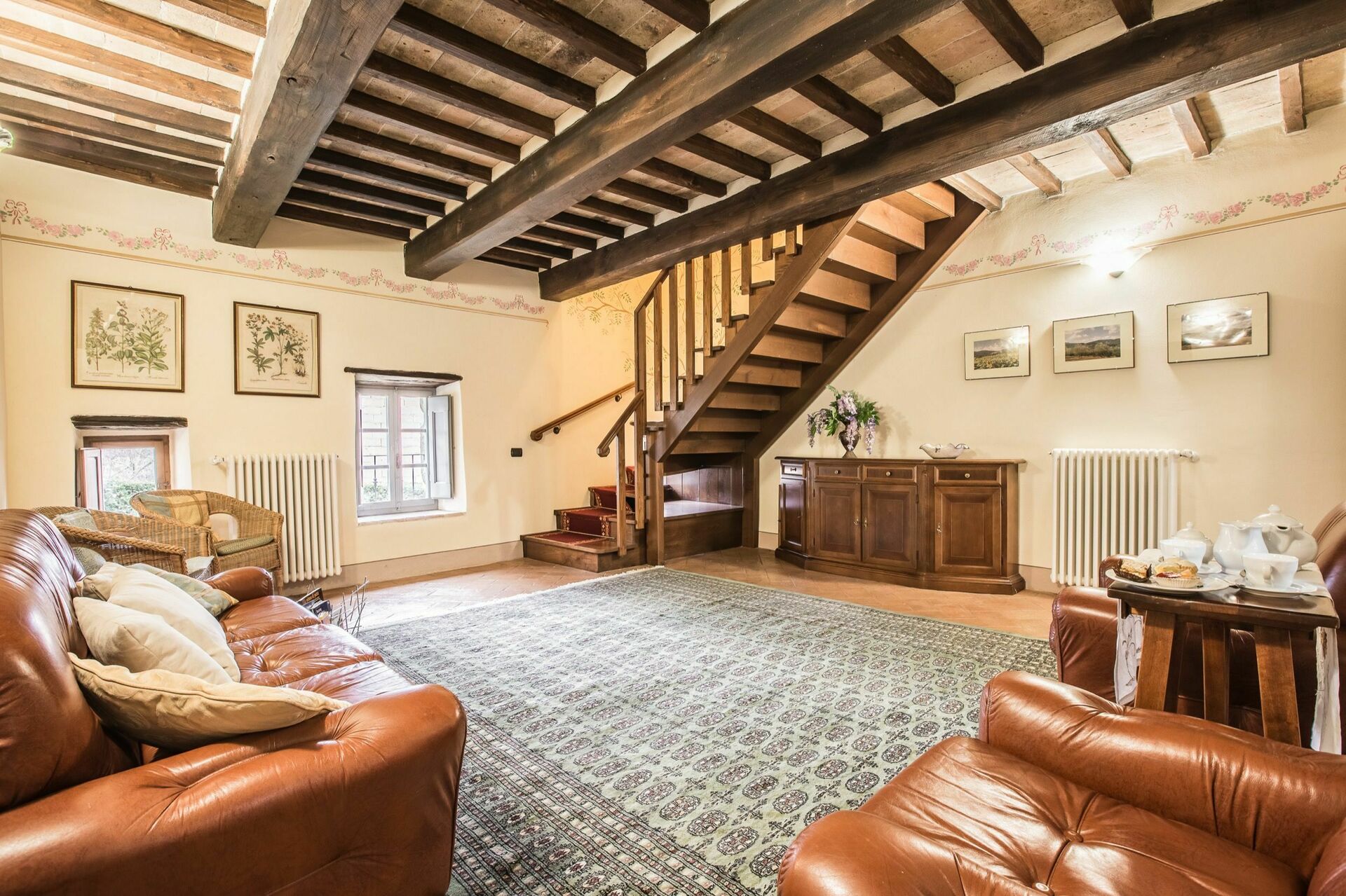 Lo stile toscano caratterizza gli ambienti (pavimenti in cotto, travi a vista, porte originali) e le caratteristiche architettoniche originali sono state preservate. Arredamento molto confortevole.