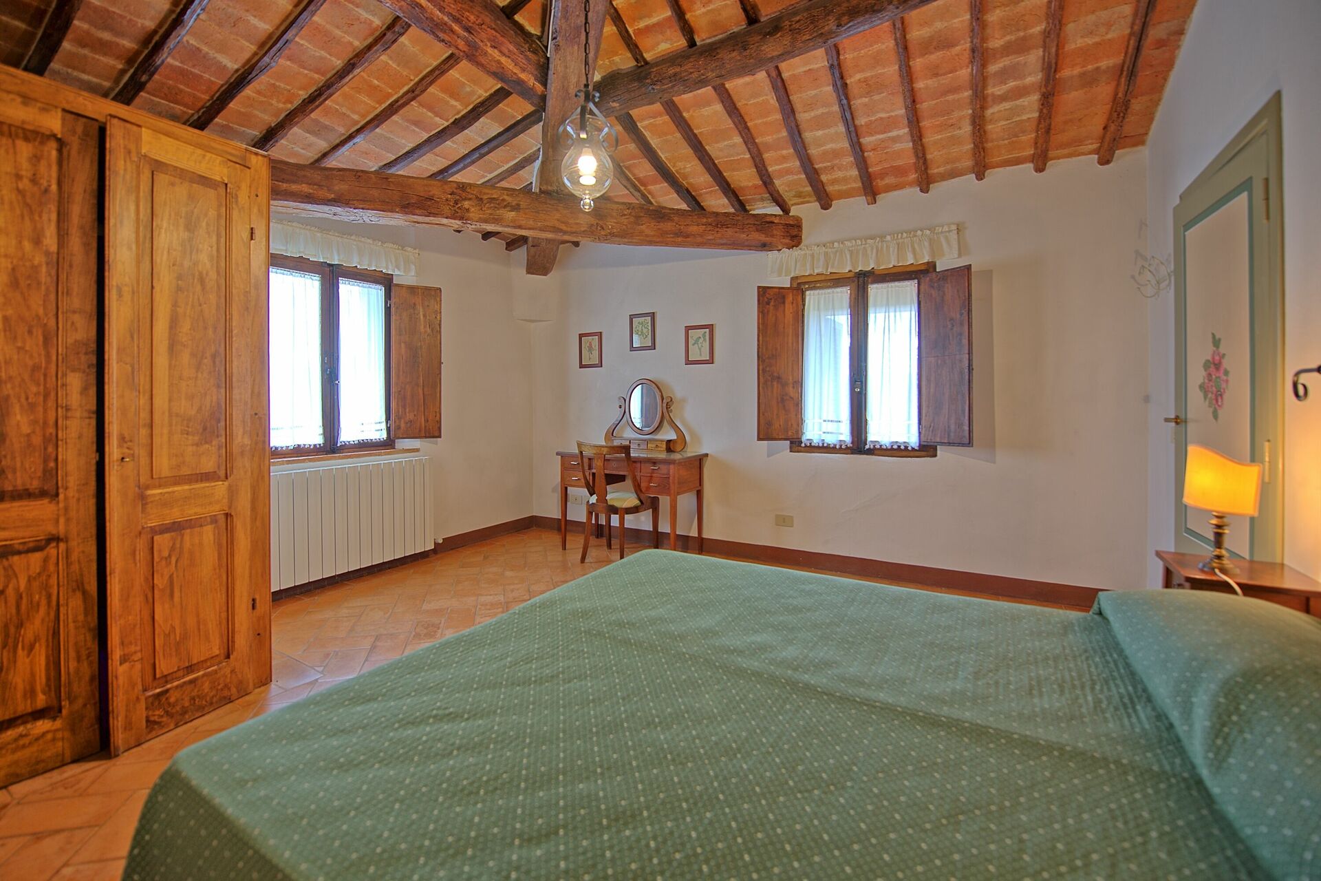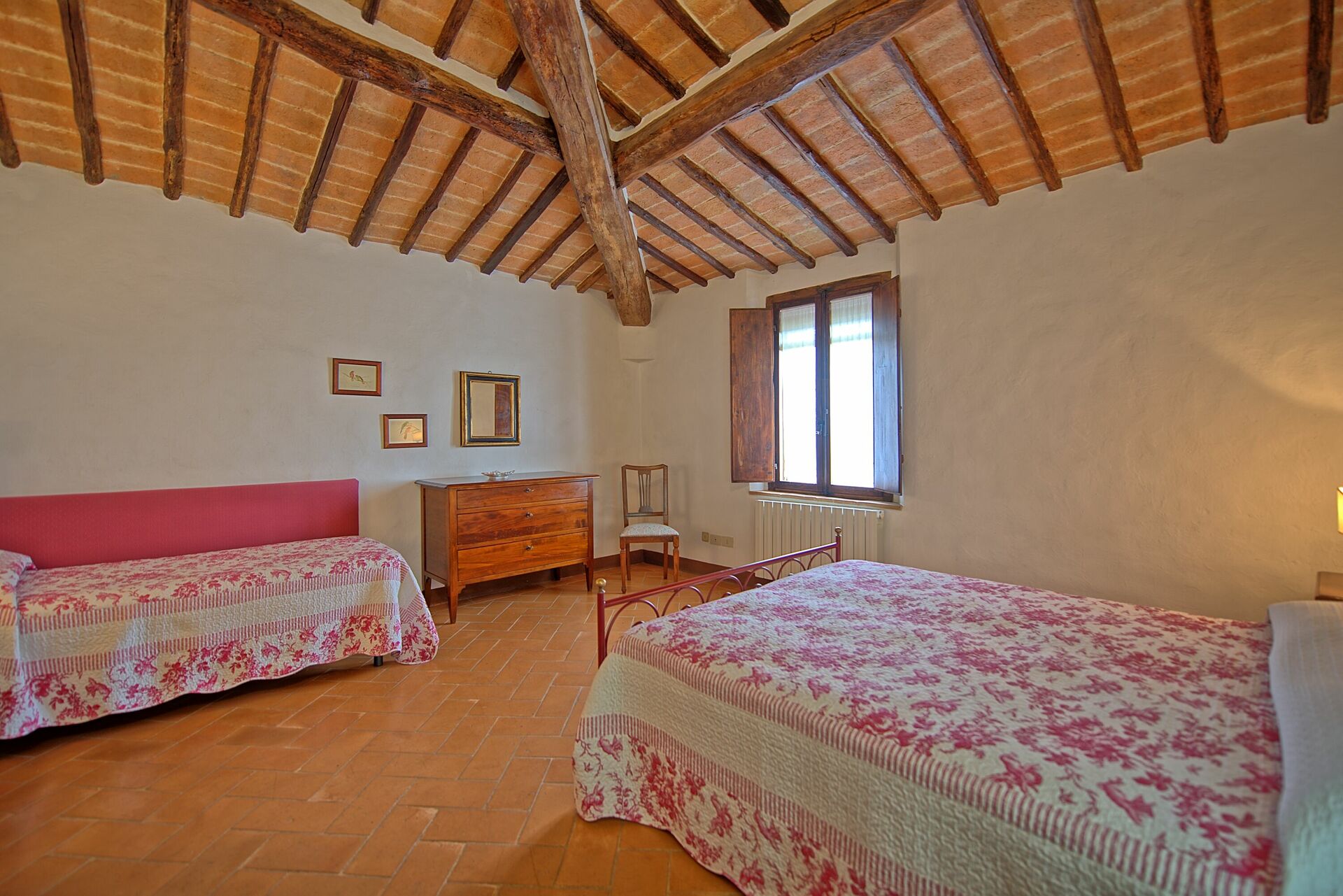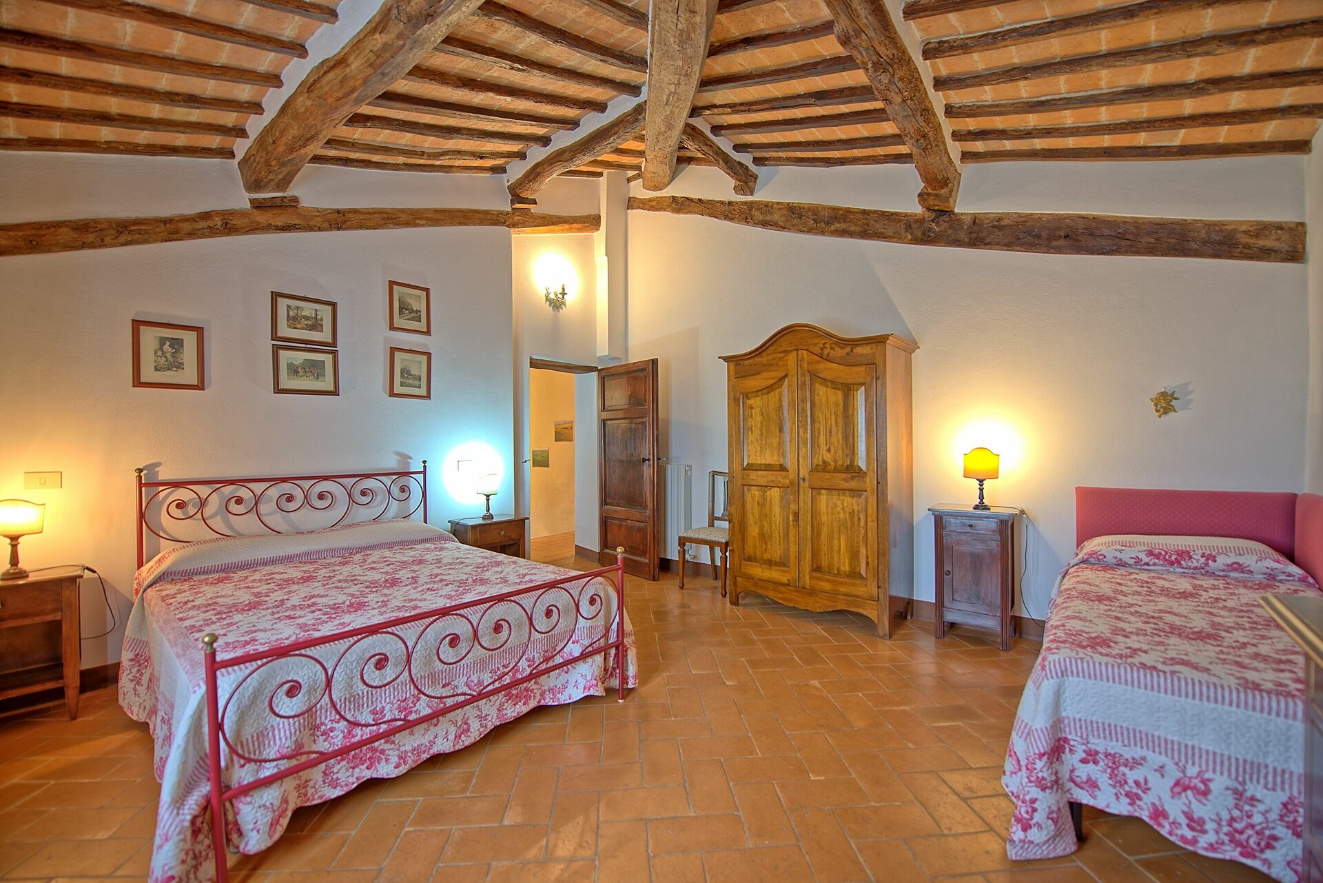 1° Piano: camera matrimoniale con piccolo bagno privato con doccia, camera matrimoniale con letto singolo supplementare, bagno con doccia.