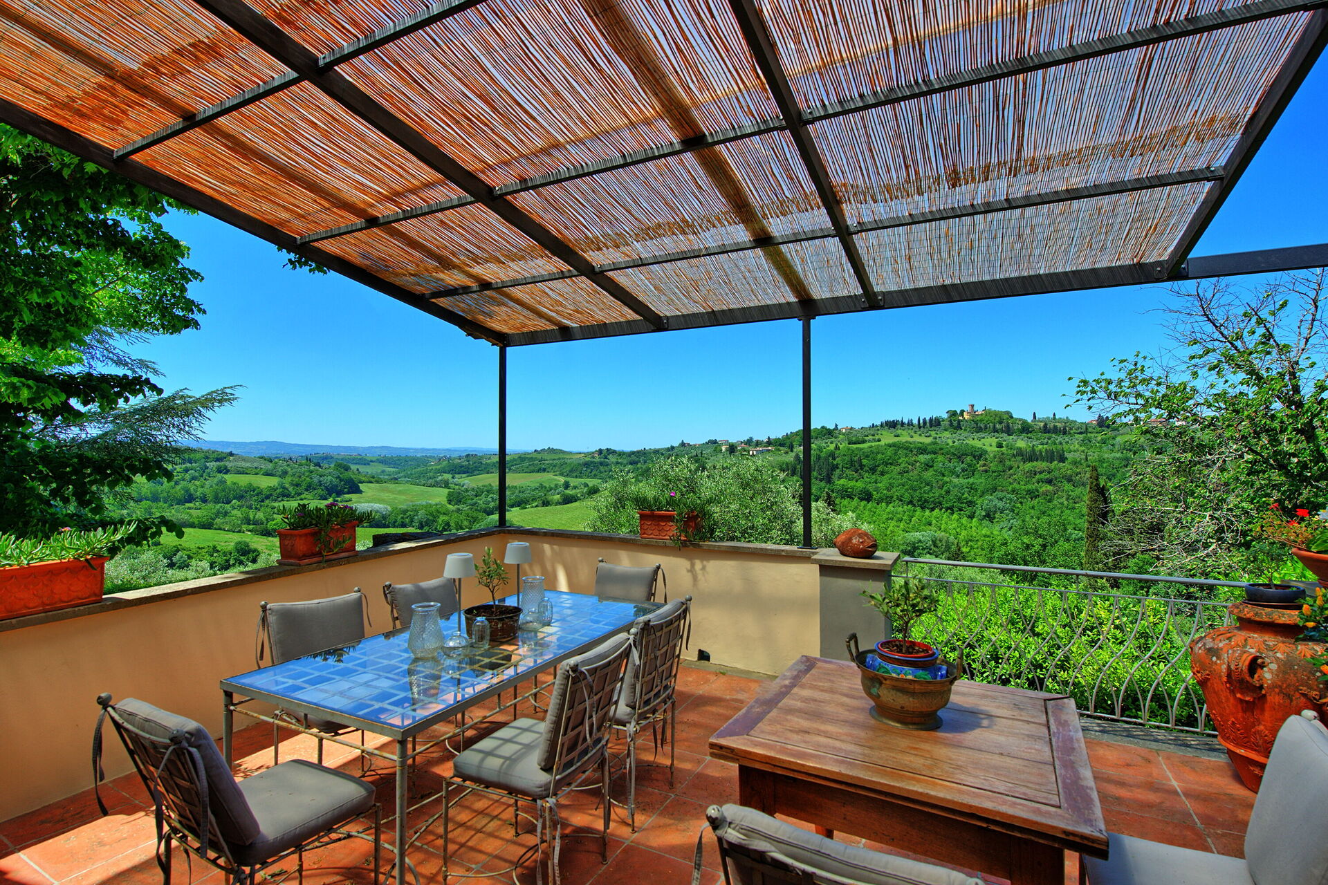 Villa Casciani è una grande e panoramica villa indipendente con piscina privata situata in Toscana in posizione panoramica sulle dolci colline di Montespertoli, a soli 35 km da Firenze.