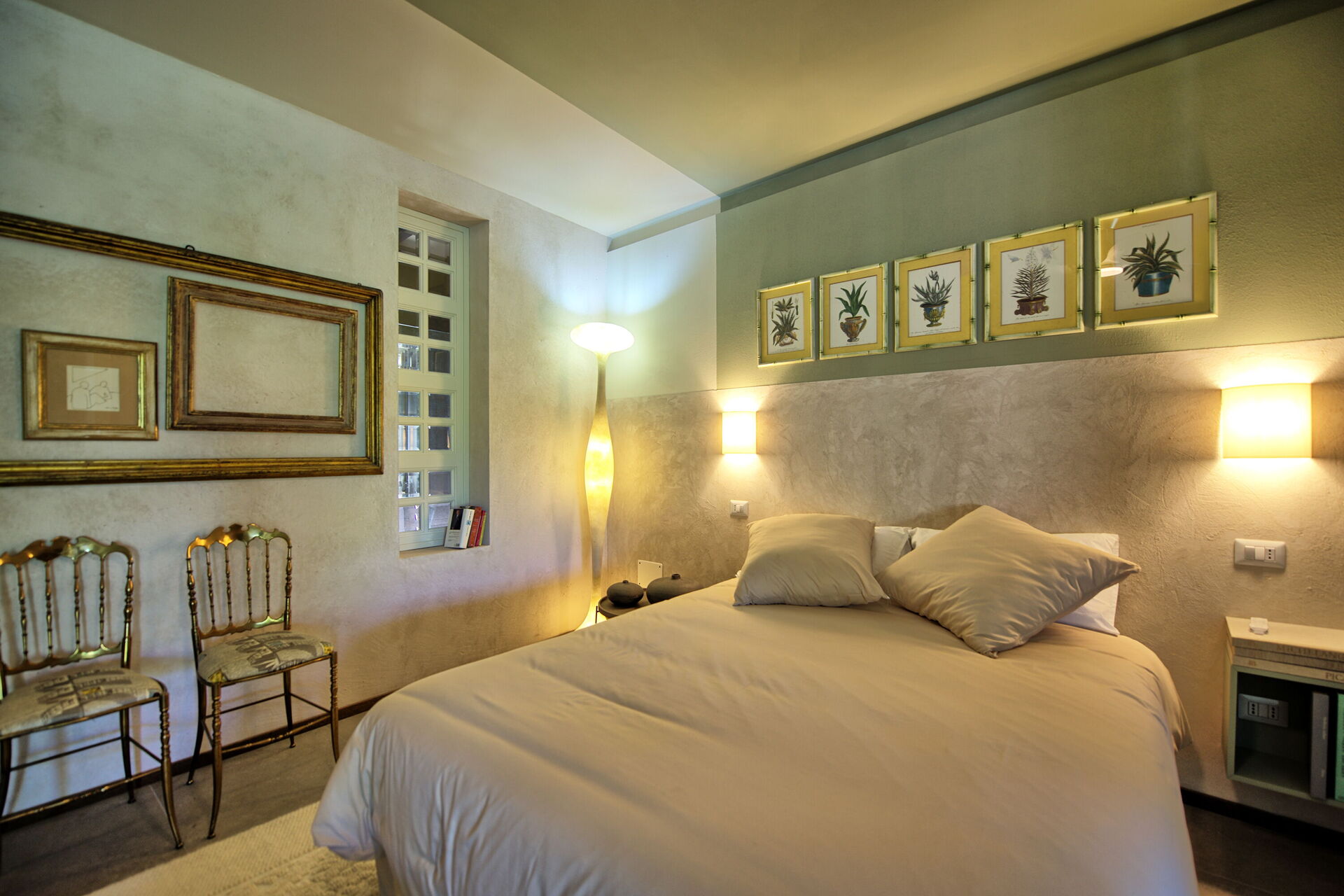 Piano terreno (non collegata internamente al resto della villa): camera matrimoniale (aria condizionata) con bagno privato con doccia e spazio esterno privato e recintato.