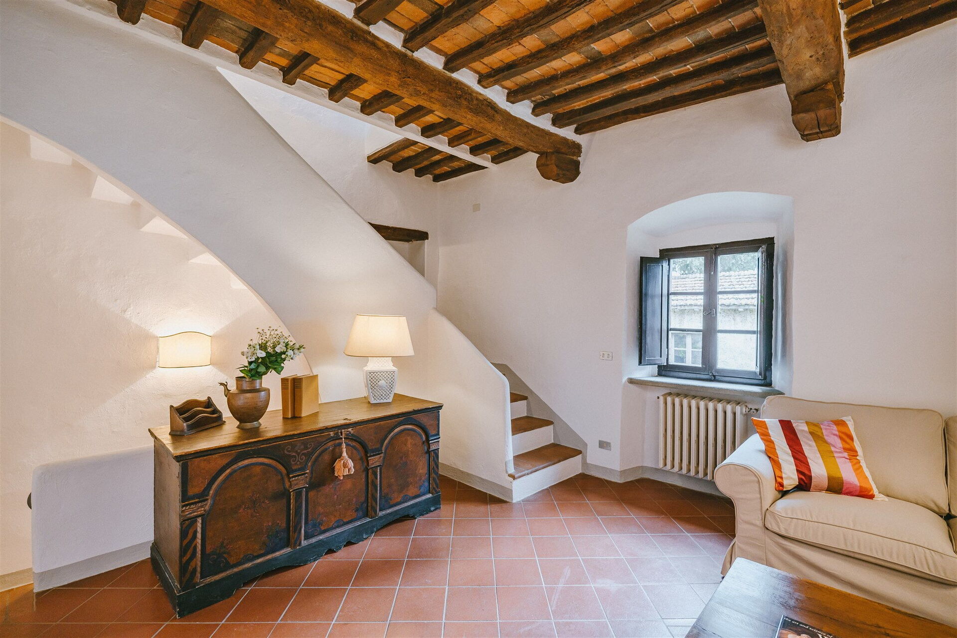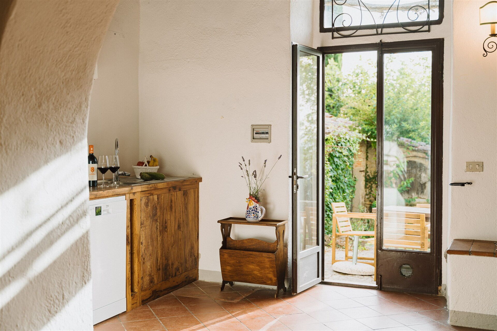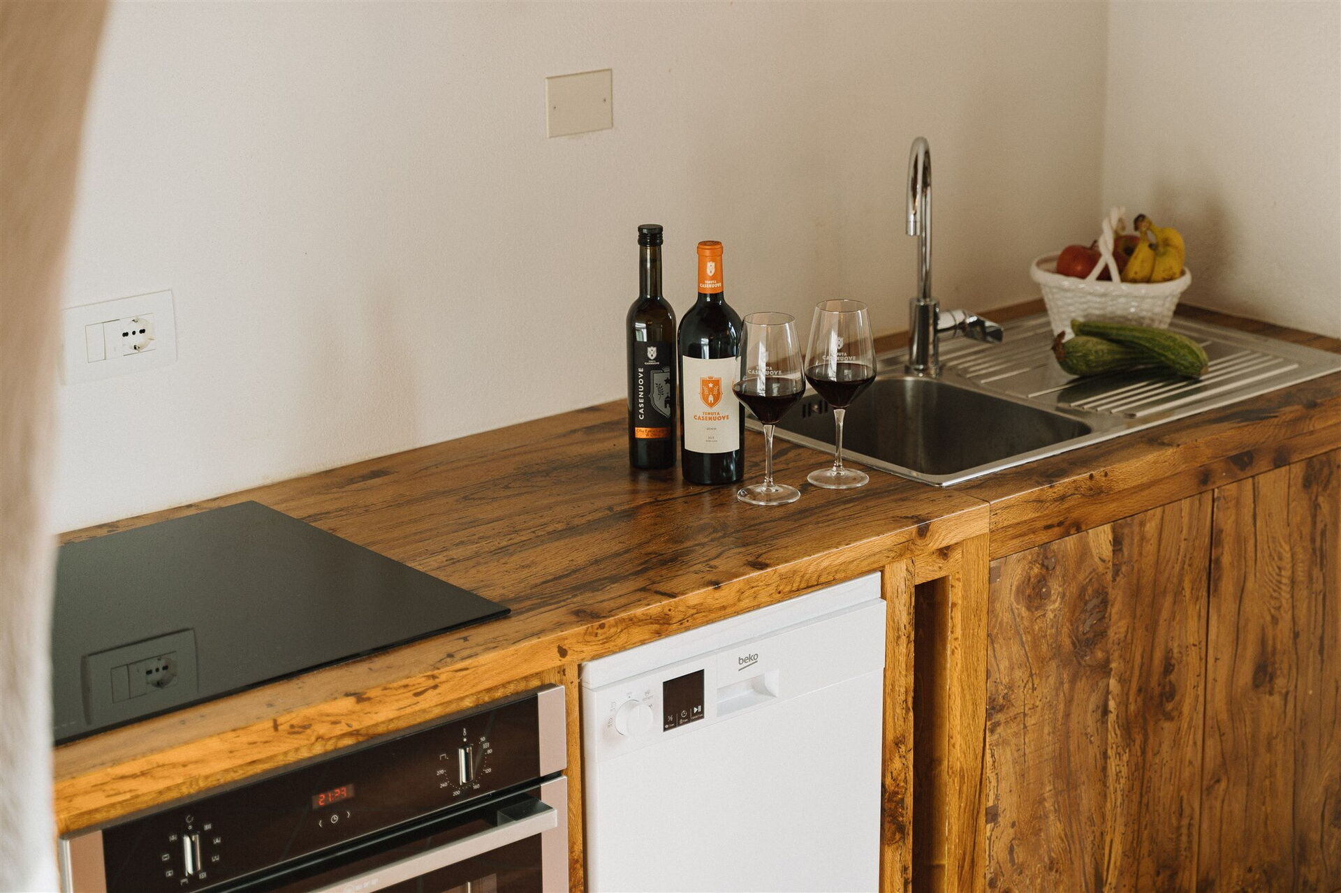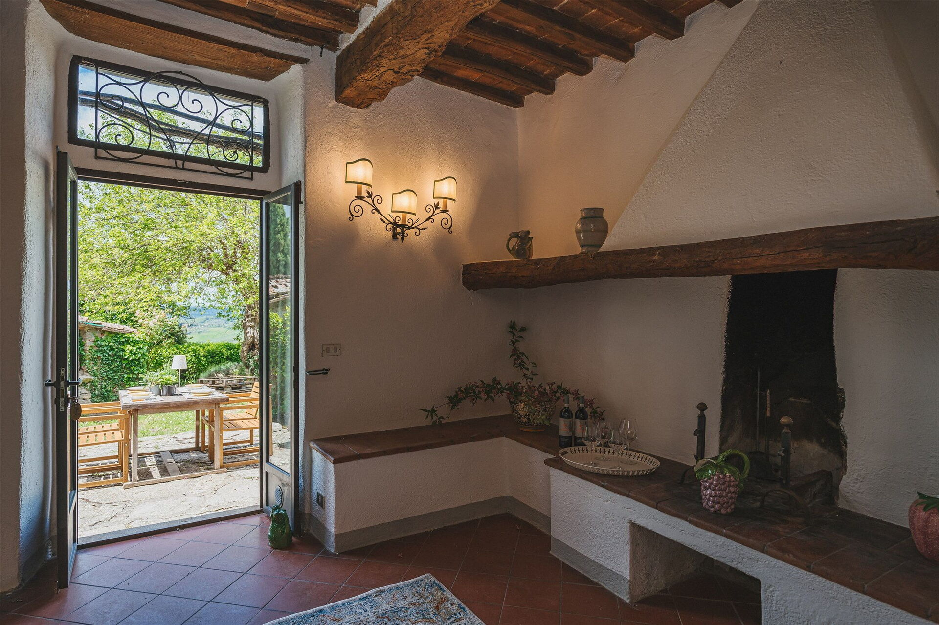 Piano terreno: cucina (piano cottura, forno, freezer, frigorifero, lavastoviglie, microonde, moka) con camino, sala pranzo, wc.