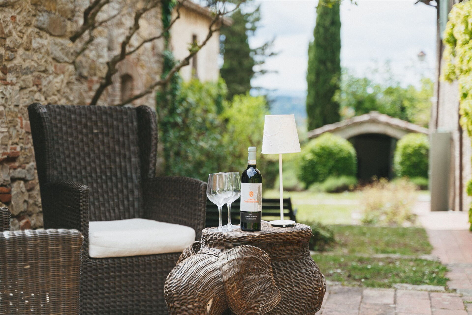 Spazio esterno privato attrezzato con tavolo e sedie e barbecue.