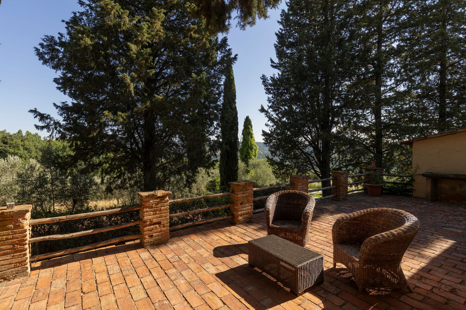 Spazio esterno privato attrezzato con tavolo e sedie e barbecue.