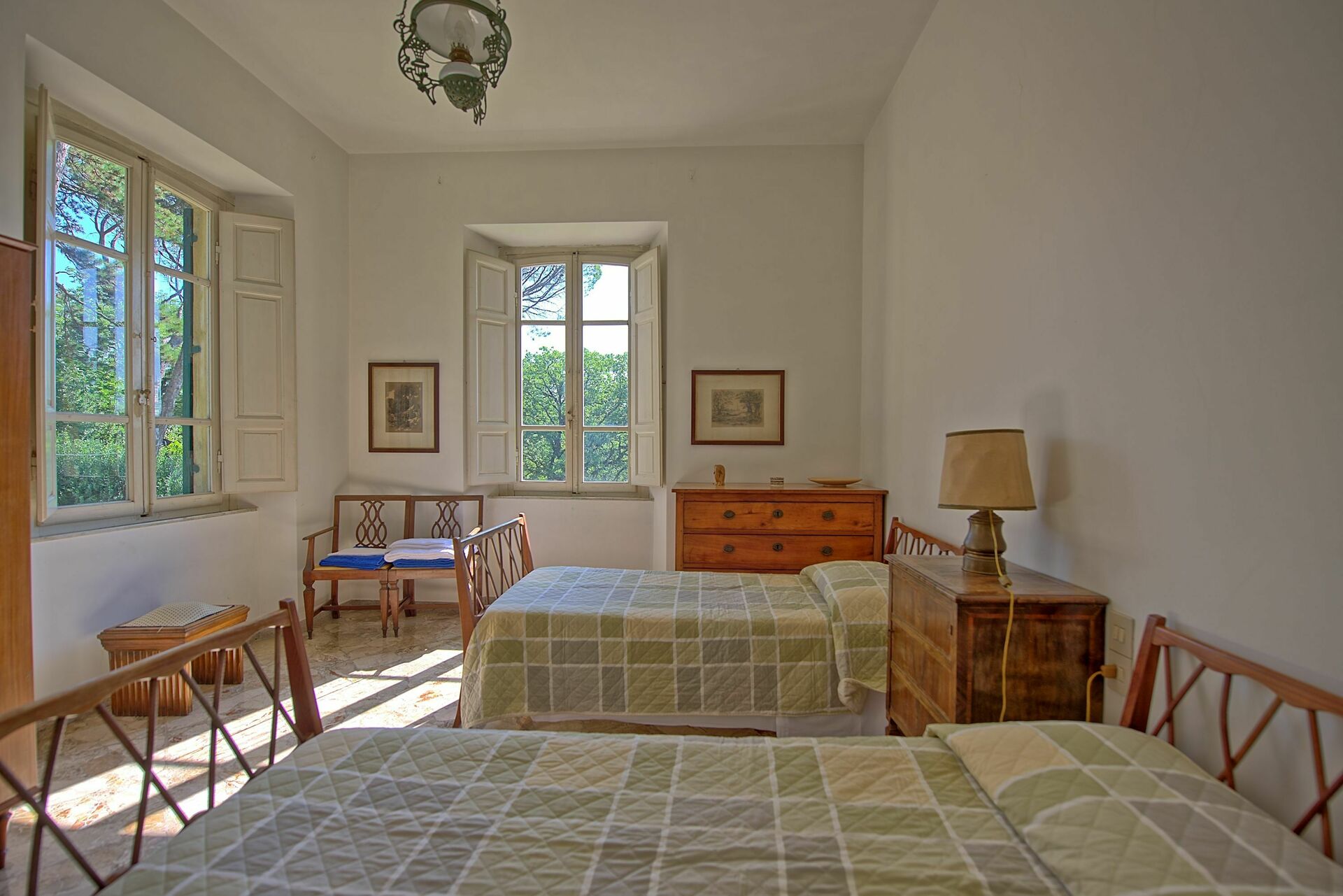 Secondo piano: camera con due letti singoli, bagno con doccia.