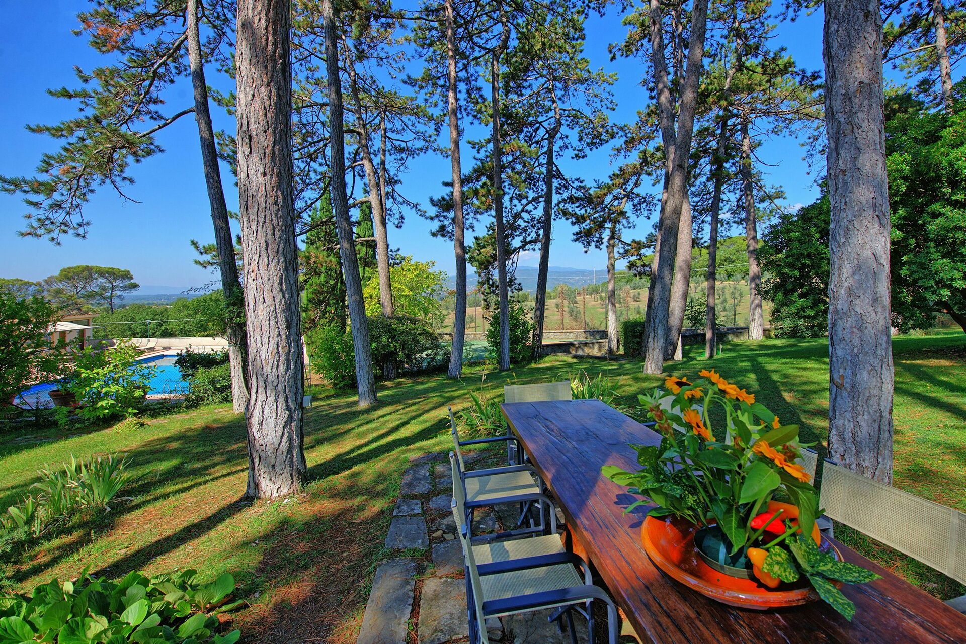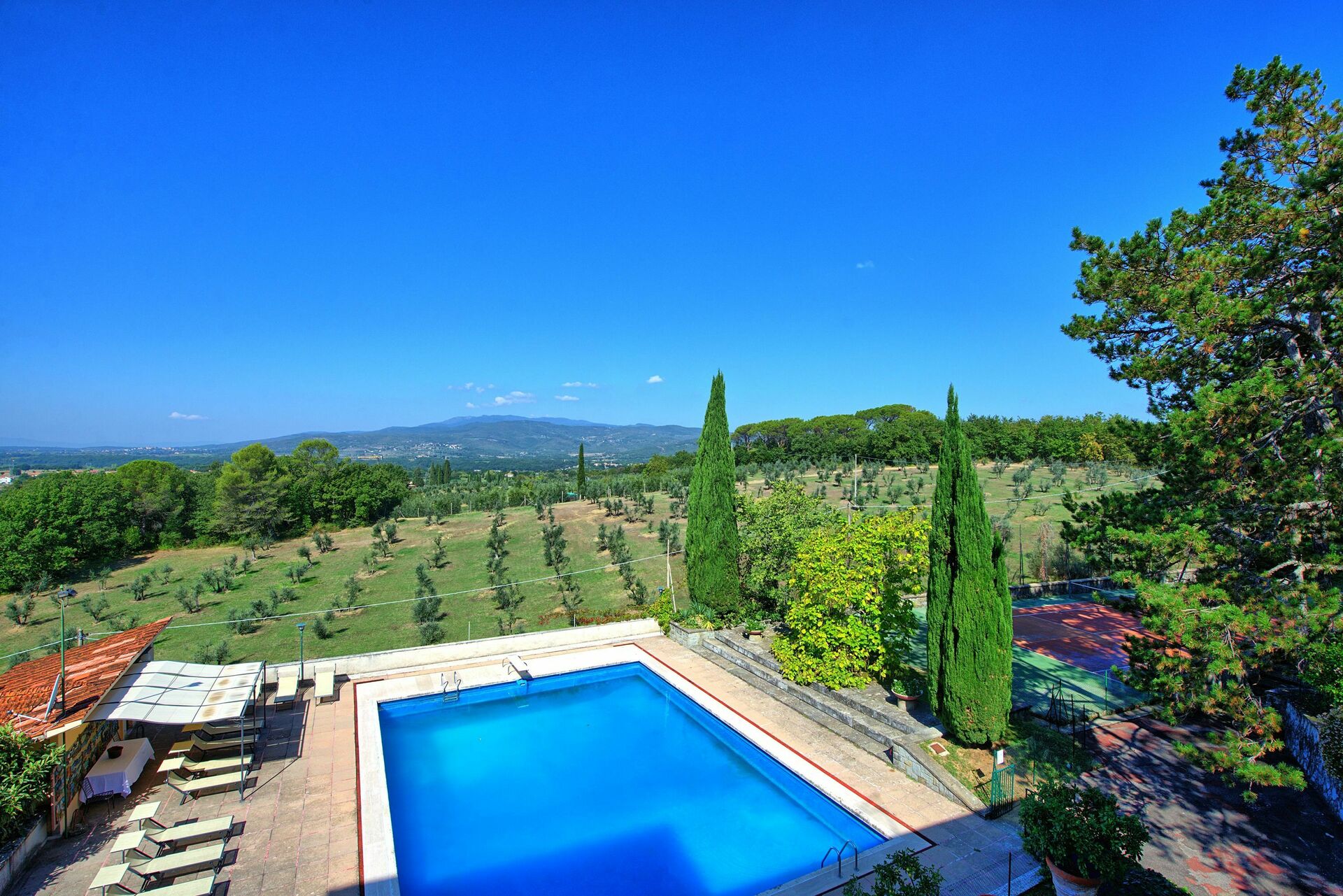 Affittando questa grande villa per vacanze con piscina privata e campo da tennis potrete comodamente raggiungere tutte le più importanti destinazioni della Toscana come Arezzo, Siena, Firenze, Montepulciano, la Val d'Orcia e anche la vicina Umbria.