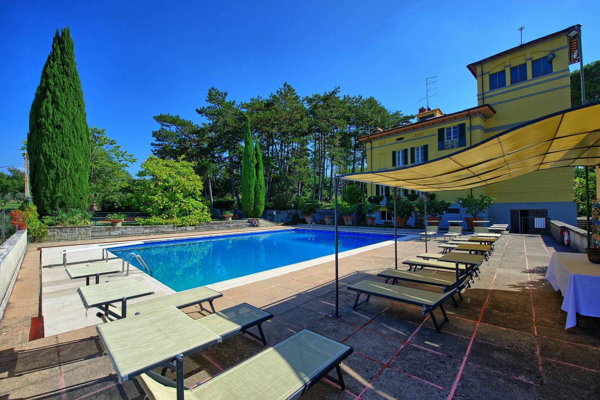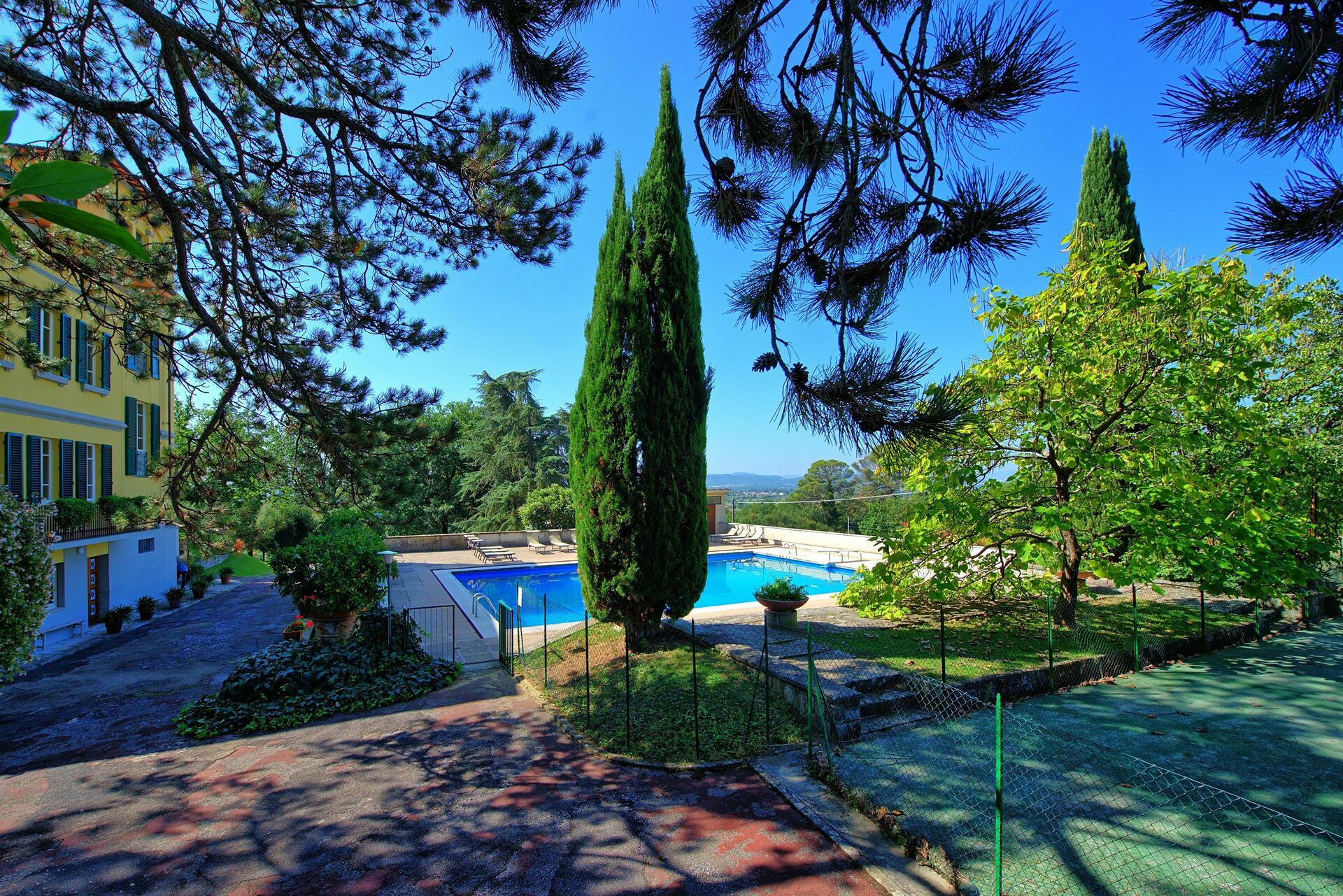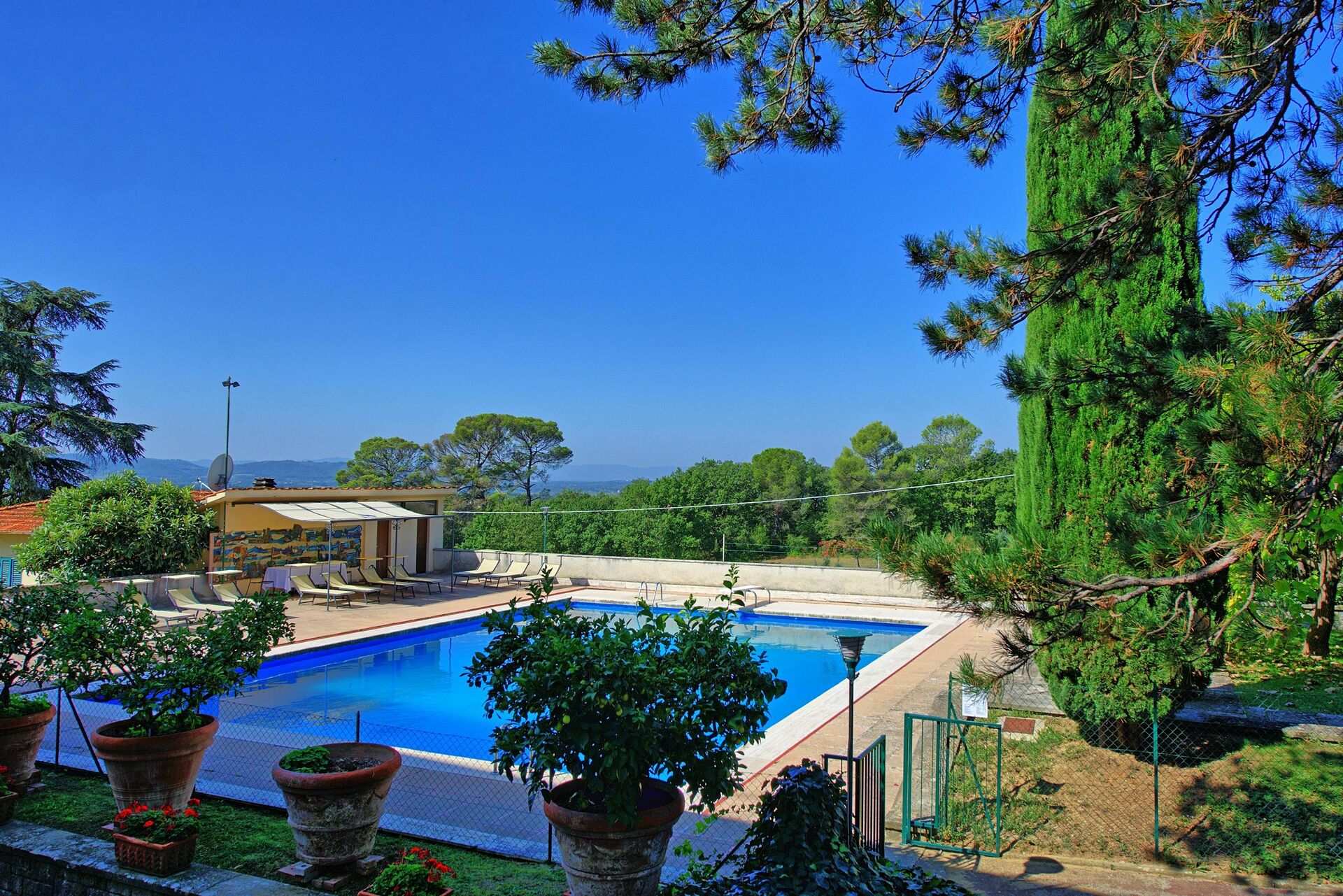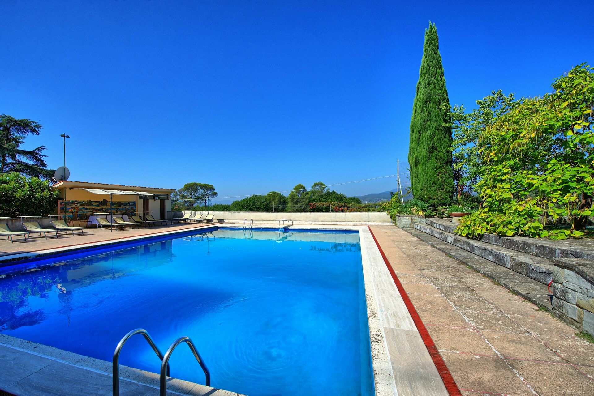 Questa bella villa con piscina privata in Toscana presenta enormi spazi sia interni che esterni ed è una sistemazione perfetta per chi vuole trascorrere una vacanza all'insegna del relax e dello svago: un grande parco con campo da tennis e una panoramica piscina garantiranno privacy e divertimento per tutti i visitatori.