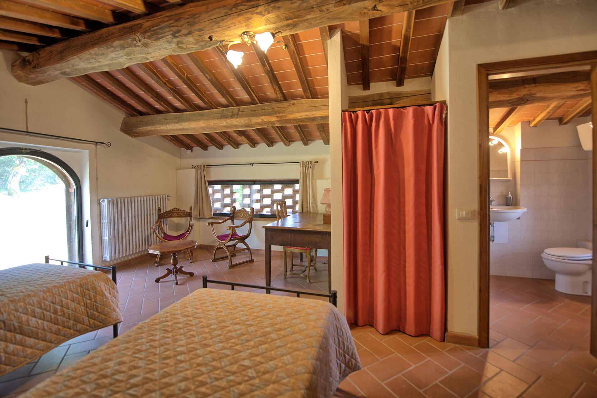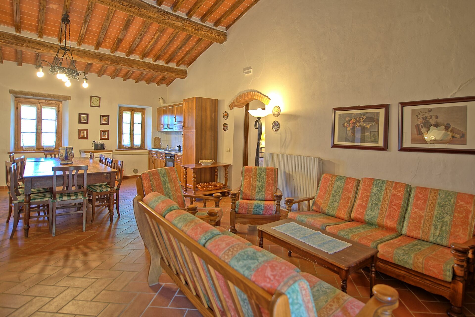 Querciolaia è la classica casa di campagna, fornita di 7 camere e 5 bagni, è situata sulle colline non lontane da Arezzo nel pieno cuore del Chianti, regione famosa in tutto il mondo per la sua bellezza, per il vino e per le specialità gastronomiche. La villa gode di una vista mozzafiato sui campi, boschi e vigneti circostanti.