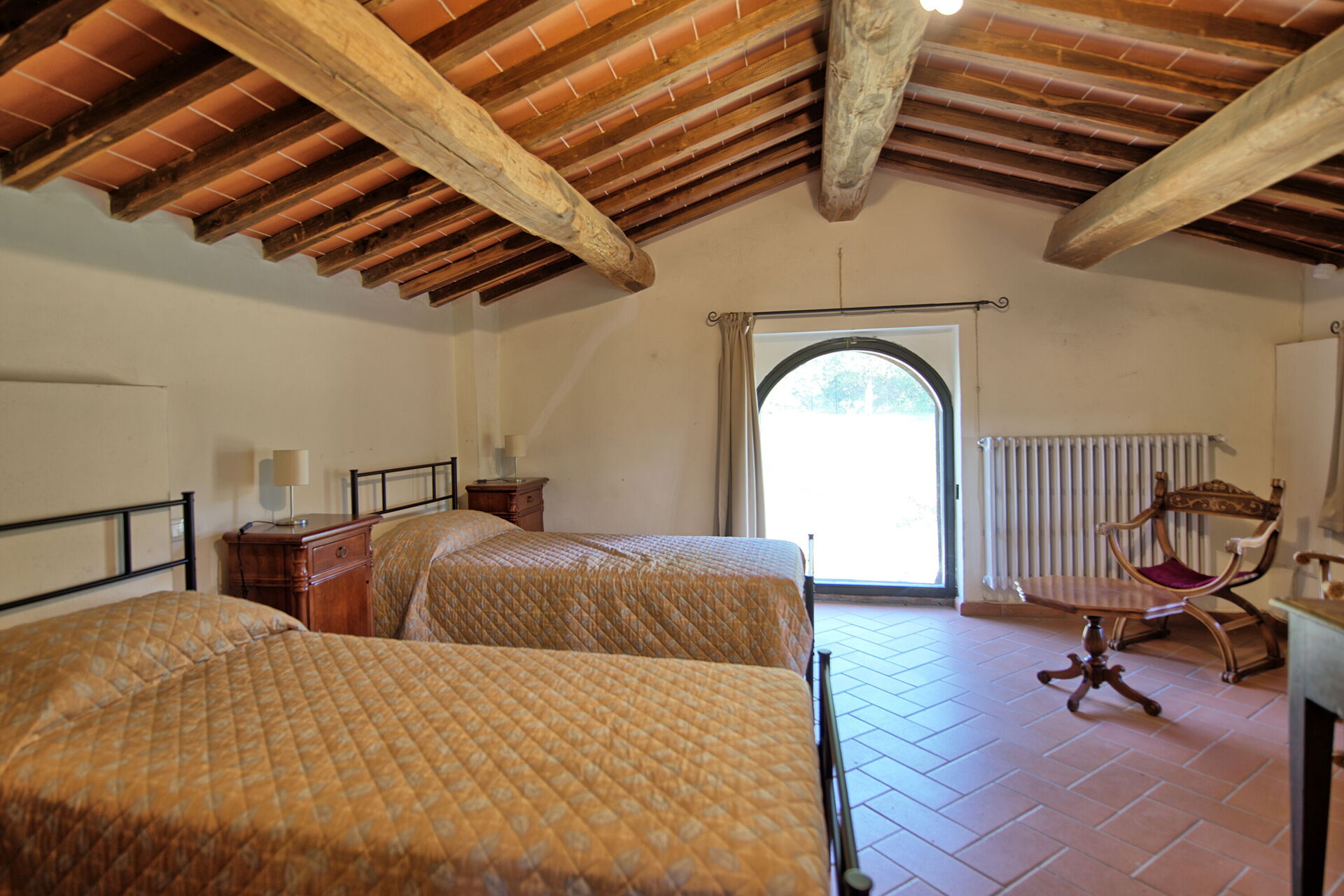 Primo piano (accessibile tramite scala a chiocciola): camera con 2 letti singoli con bagno con doccia.