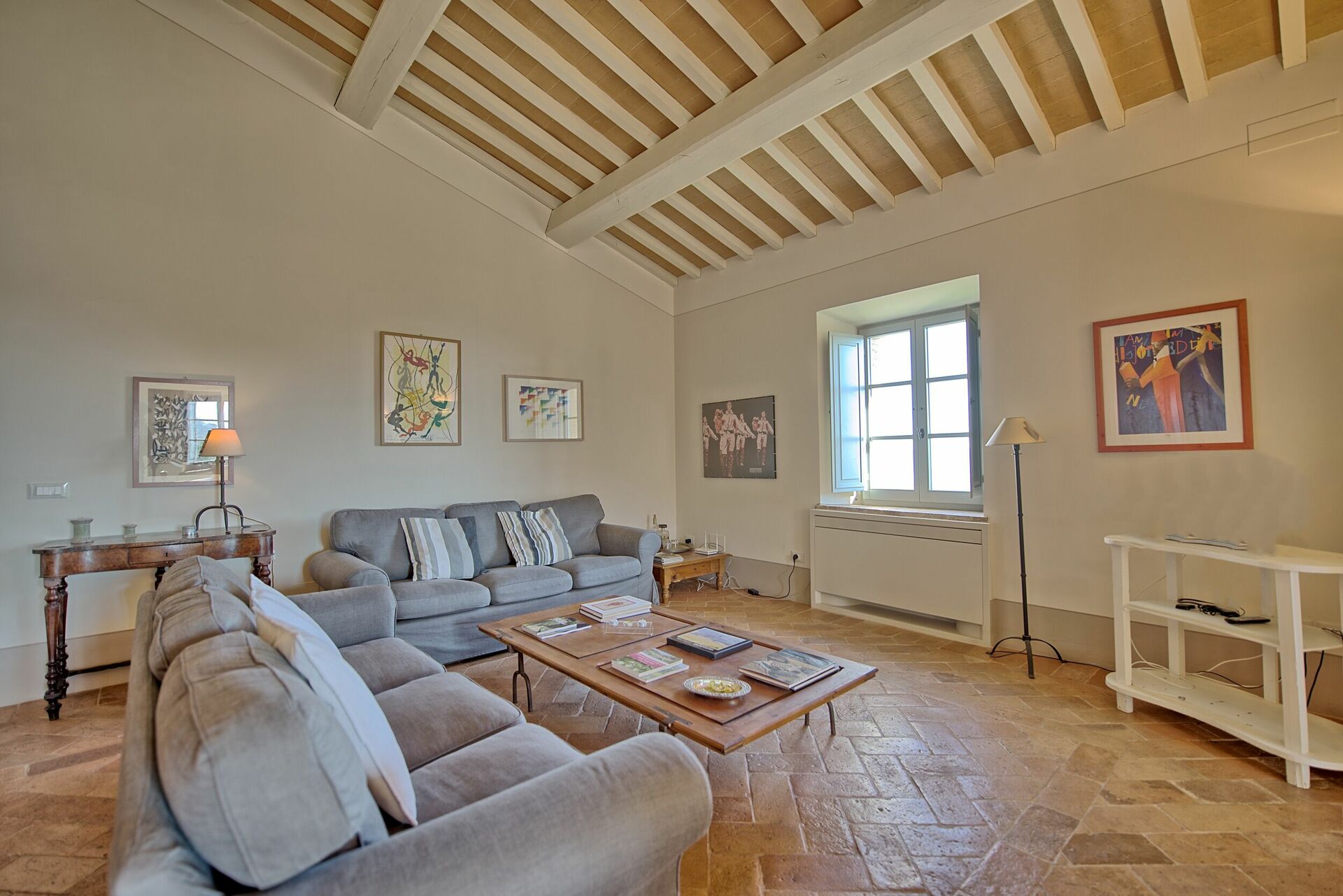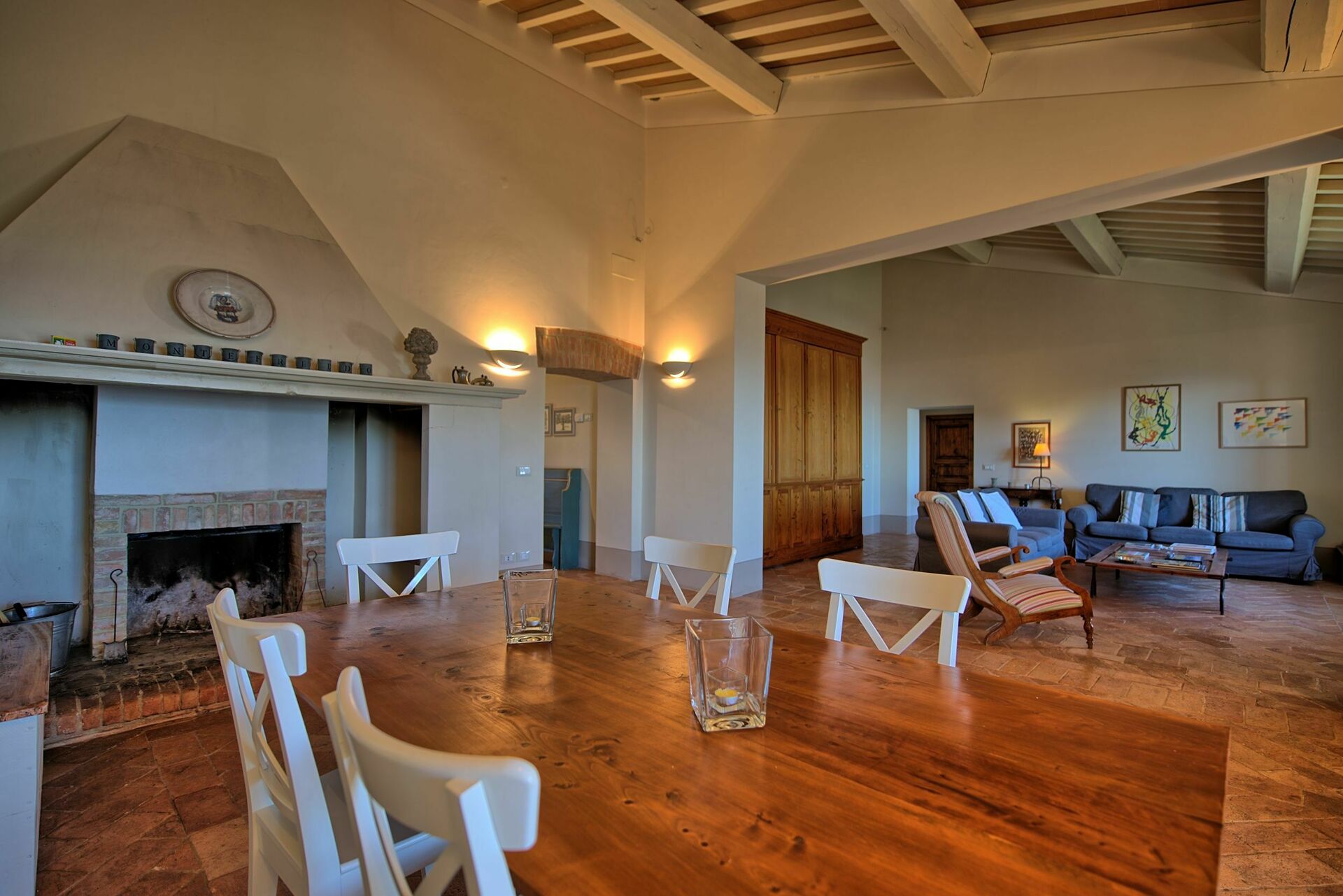 La casa in affitto è arredata con gusto, seguendo il tipico stile toscano che prevede mobili in legno, muri in pietra e colori caldi e luminosi, che accolgono gli ospiti in un ambiente confortevole e funzionale. Gli interni sono forniti di ogni elemento che permetta agli ospiti di vivere una vacanza in totale relax (come elettrodomestici, utensili, camino, divani e poltrone ecc.)