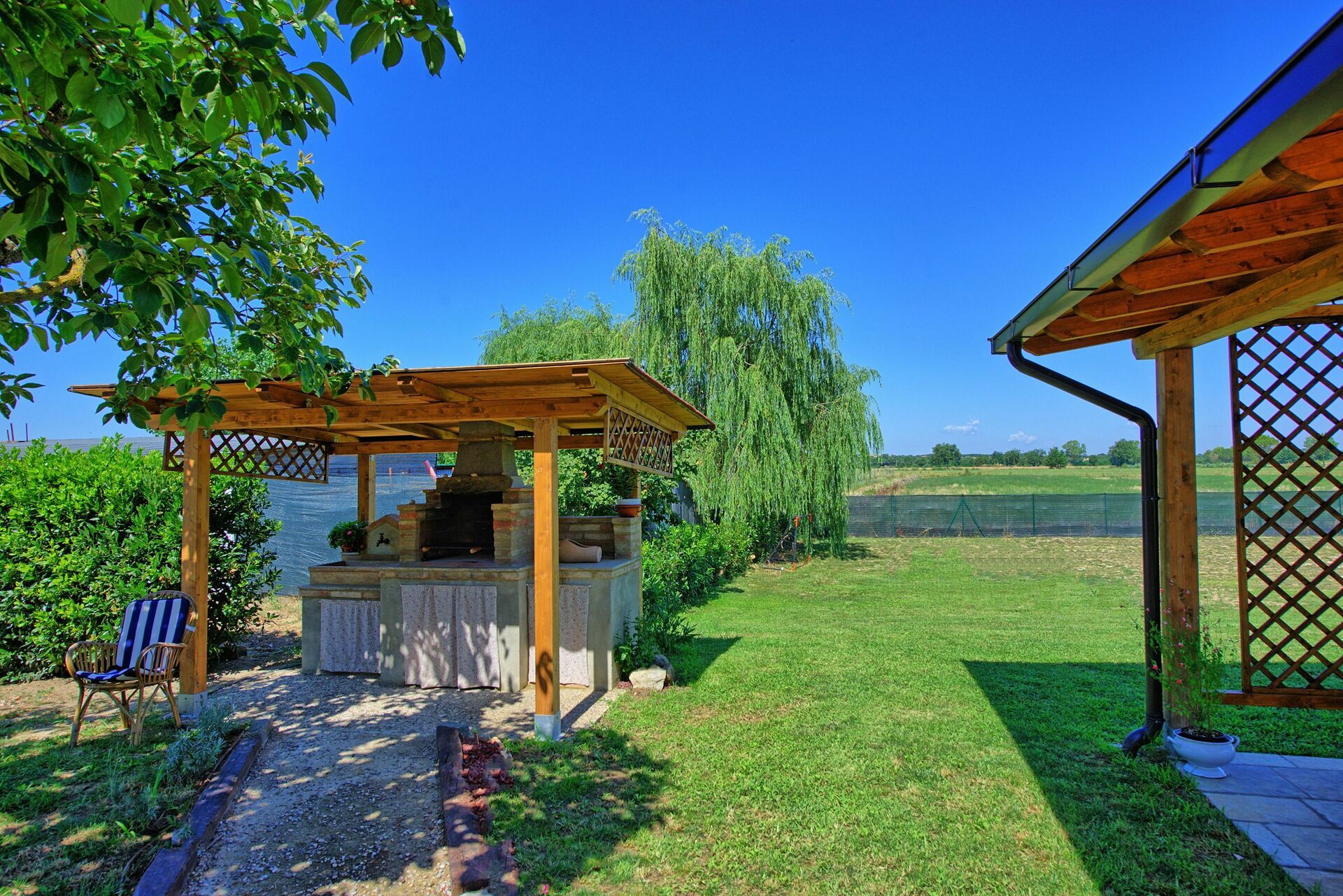 All'esterno, la casa vacanze offre un giardino recintato in cui si trova una bella piscina situata in posizione panoramica, circondata da un solarium con lettini ed ombrelloni: è il luogo perfetto in cui trascorrere le lunghe giornate estive rilassandosi e rinfrescandosi in compagnia di amici e familiari. A disposizione degli ospiti vi è anche una bella zona barbecue con un grande patio attrezzato di tavolo da pranzo e barbecue in muratura, l'ideale per organizzare pranzi e cene all'aperto.