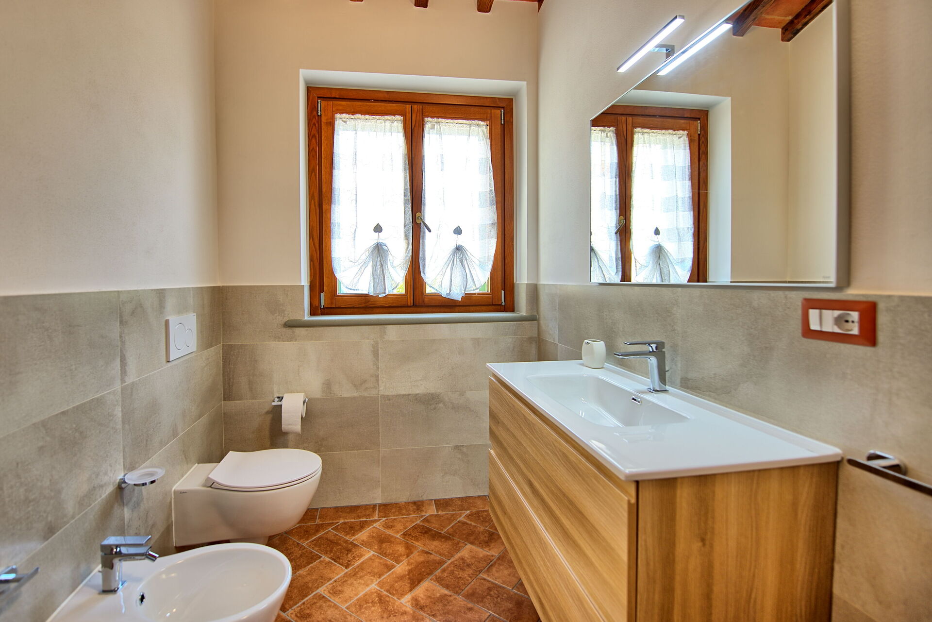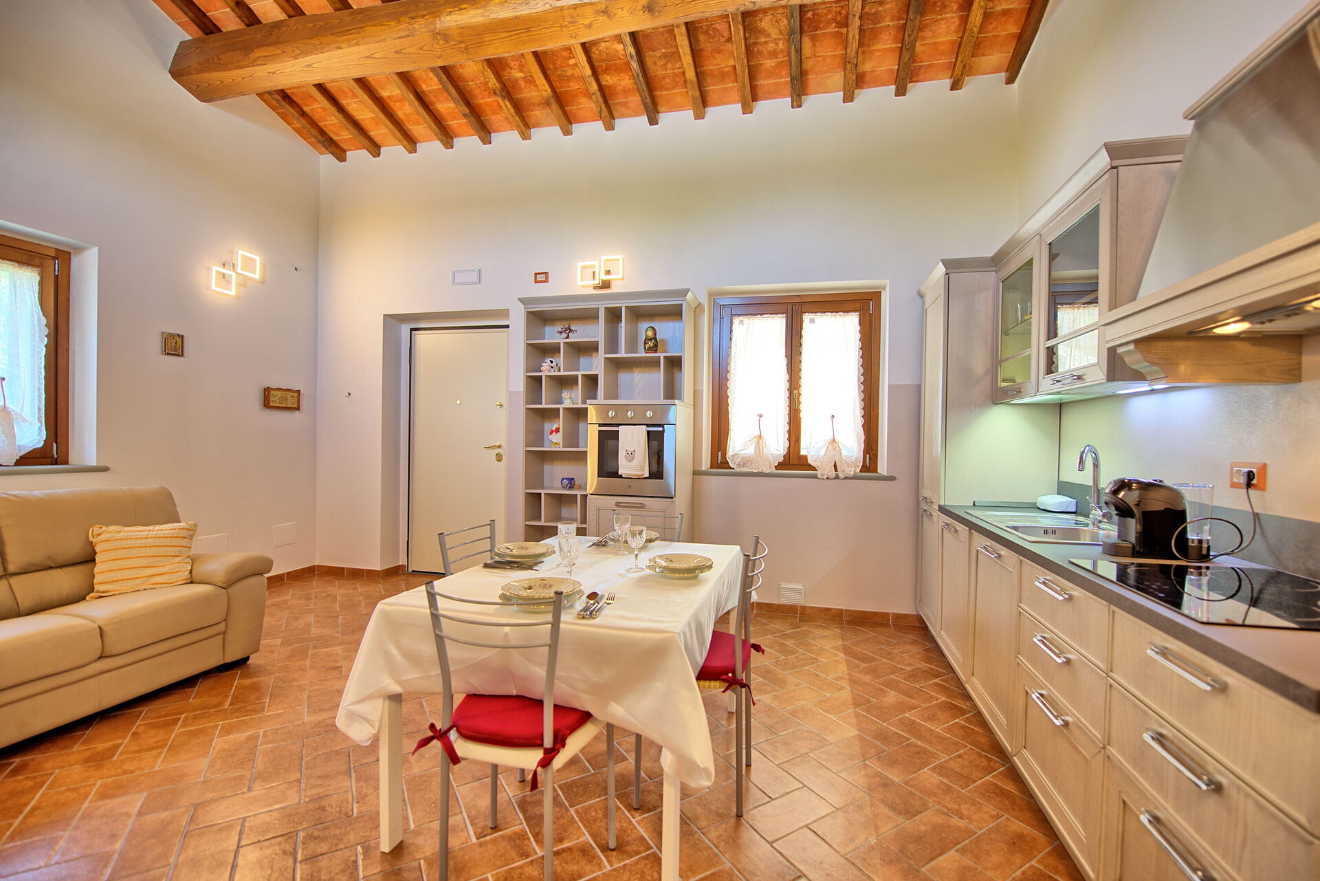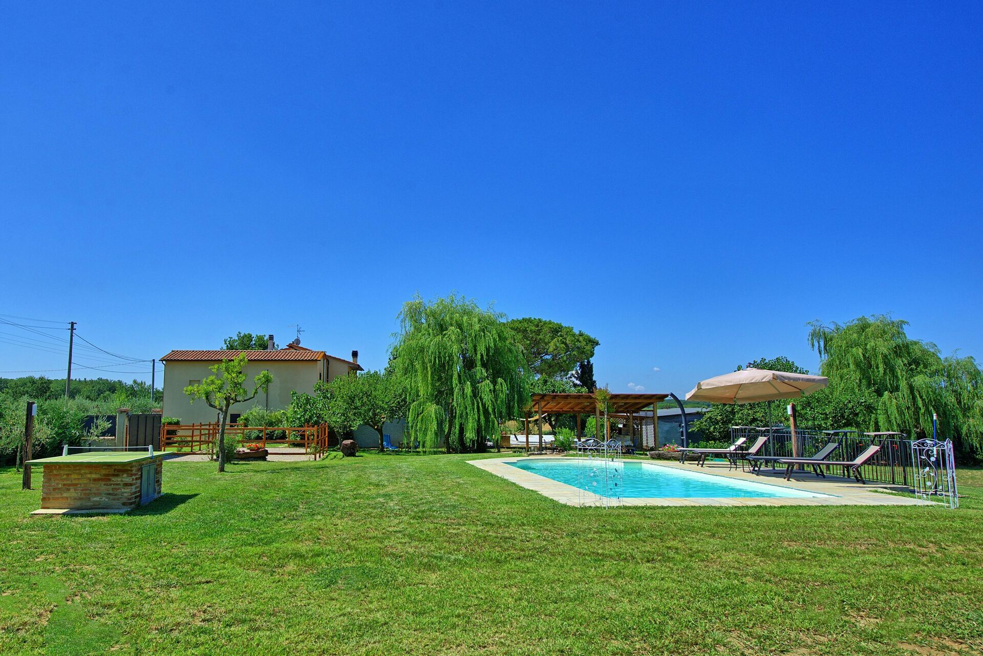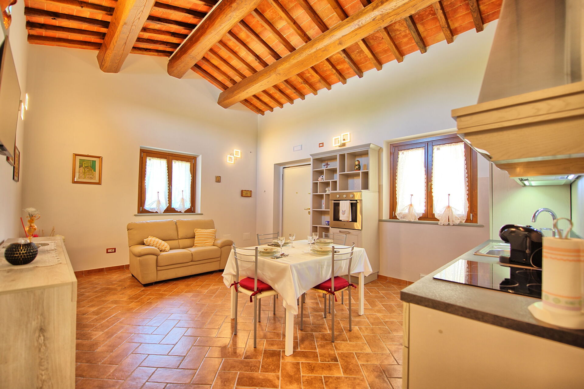 La proprietà è dotata di ogni comfort ed è stata arredata con gusto, seguendo lo stile rustico tipico delle case di campagna in Toscana, utilizzando materiali quali legno, cotto e mattoni che rendono l'ambiente suggestivo e autentico. Grazie alle sue 4 camere da letto e ad ampi e luminosi interni, la casa può ospitare fino a 7/8 persone.