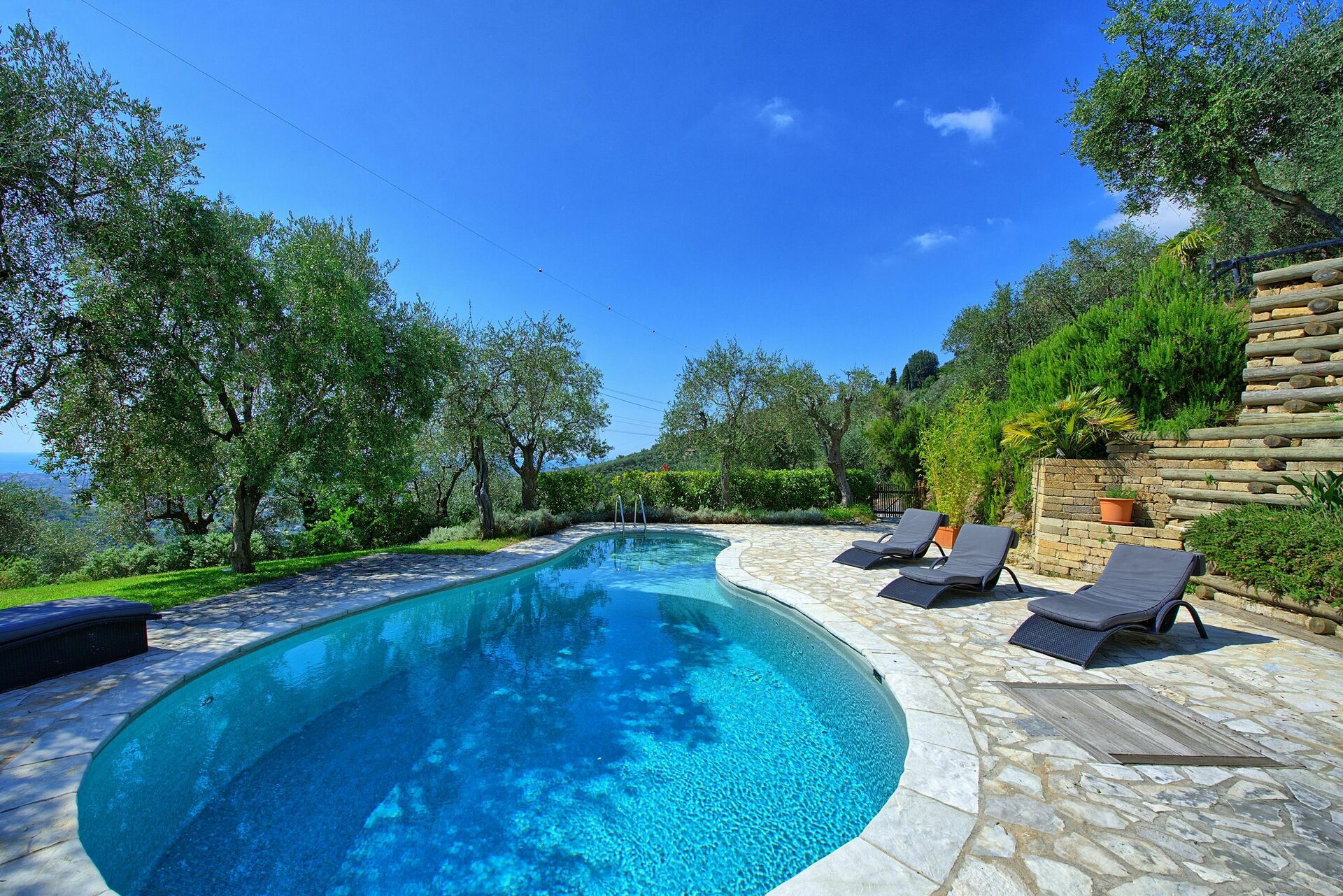 zeer mooi gelegen villa op berg met olijfboomgaard en fantastisch uitzicht. Heerlijk zwembad en prachtige tuin.