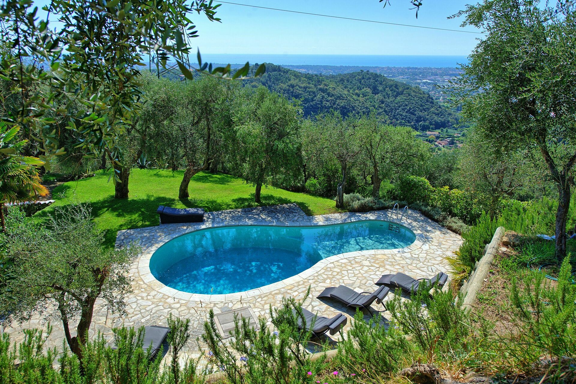 All'esterno, la grande proprietà dispone di un ampio giardino terrazzato, che ospita una vegetazione rigogliosa e verdeggiante. A pochi metri dalla casa si trova la bellissima piscina privata dotata di solarium con lettini prendisole, una location perfetta per rilassarsi nelle calde giornate estive in alternativa alla vicina spiaggia della Versilia. Una zona attrezzata e coperta è a disposizione degli ospiti, arredata con cucina (forno, fuochi a induzione, frigorifero, lavastoviglie, cantinetta frigo per vini), mobili da giardino come tavoli, sedie e poltroncine ideale per mangiare all'aperto.