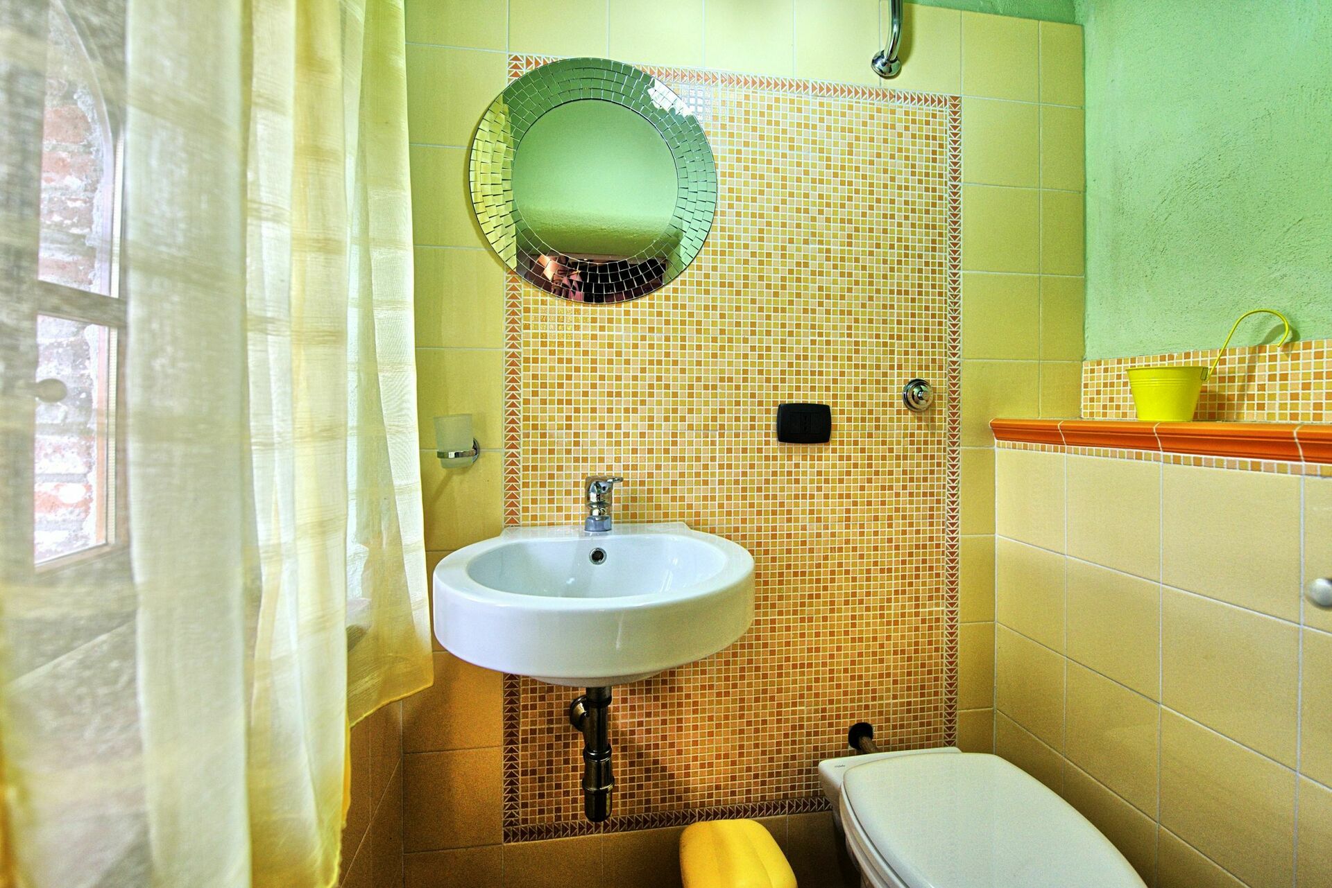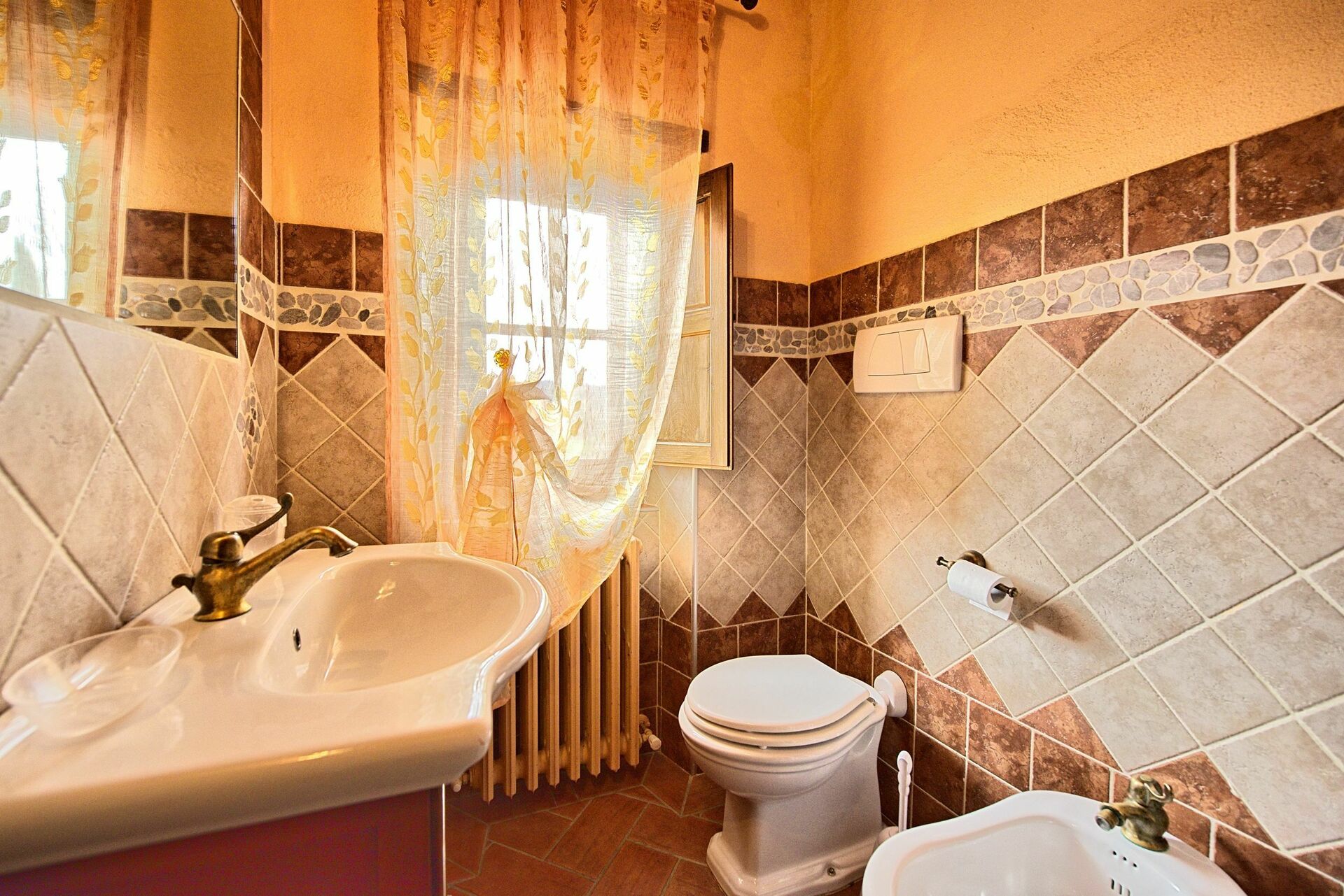 Primo piano: camera con 2 letti singoli, bagno con doccia, camera con 2 letti singoli, camera matrimoniale con bagno privato con doccia (senza bidet), camera matrimoniale con WC privato (a cui si accede salendo 3 gradini).