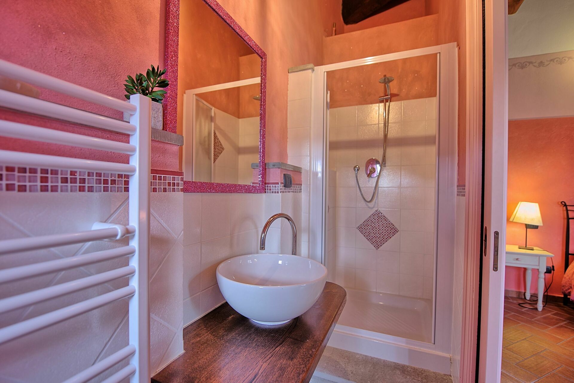 4 gradini sotto: camera matrimoniale con bagno privato con doccia (senza bidet), camera matrimoniale, bagno con doccia e vasca idromassaggio.