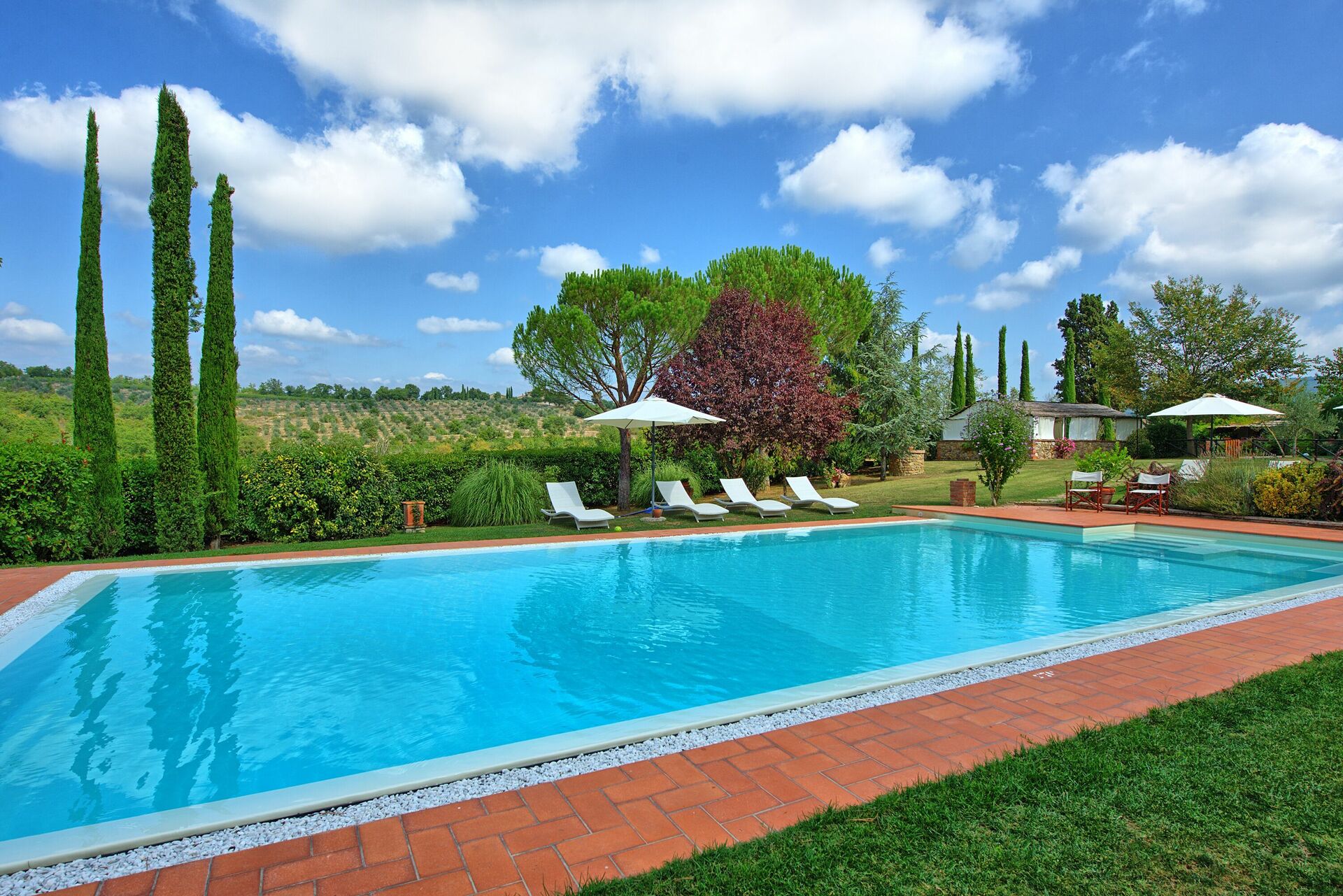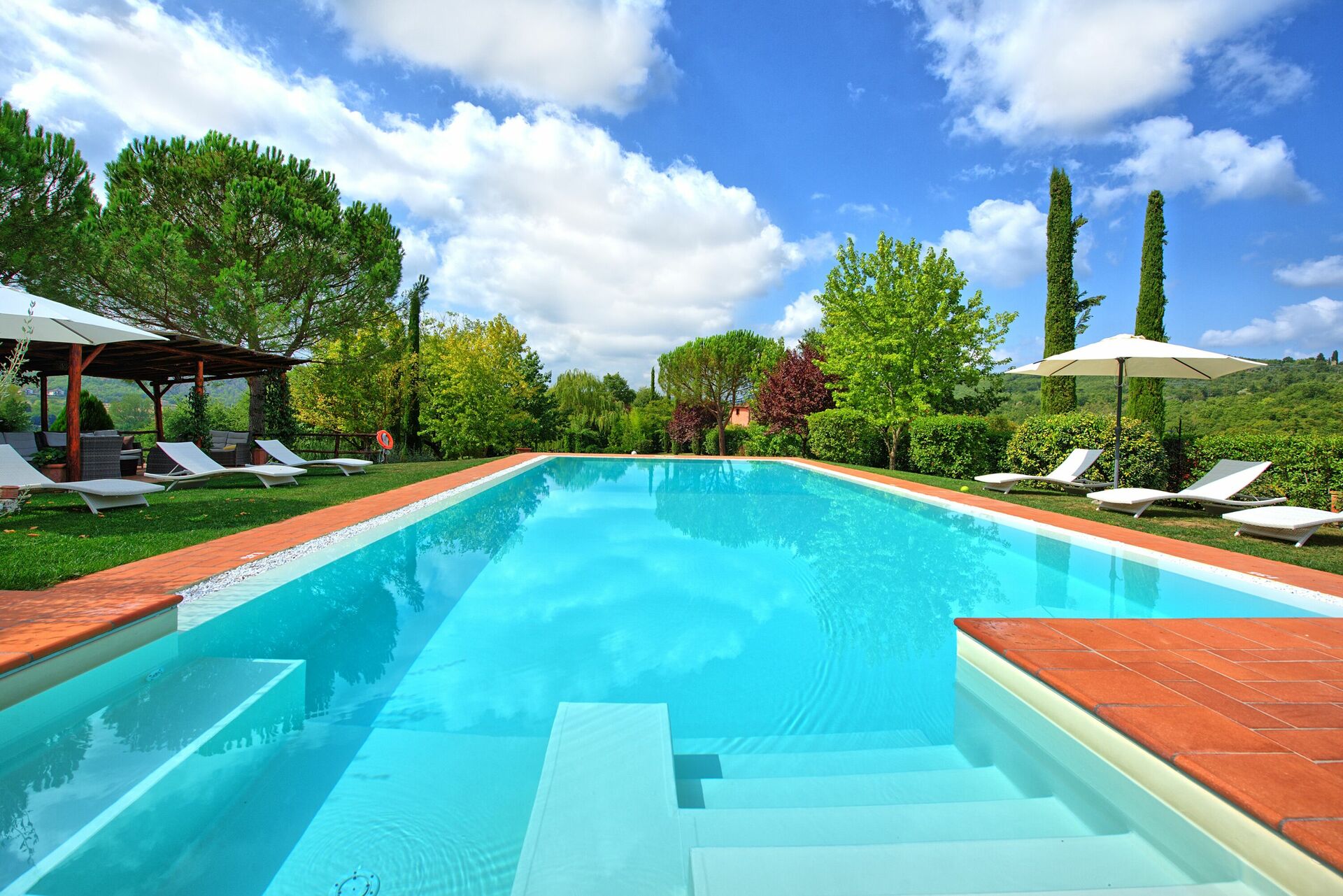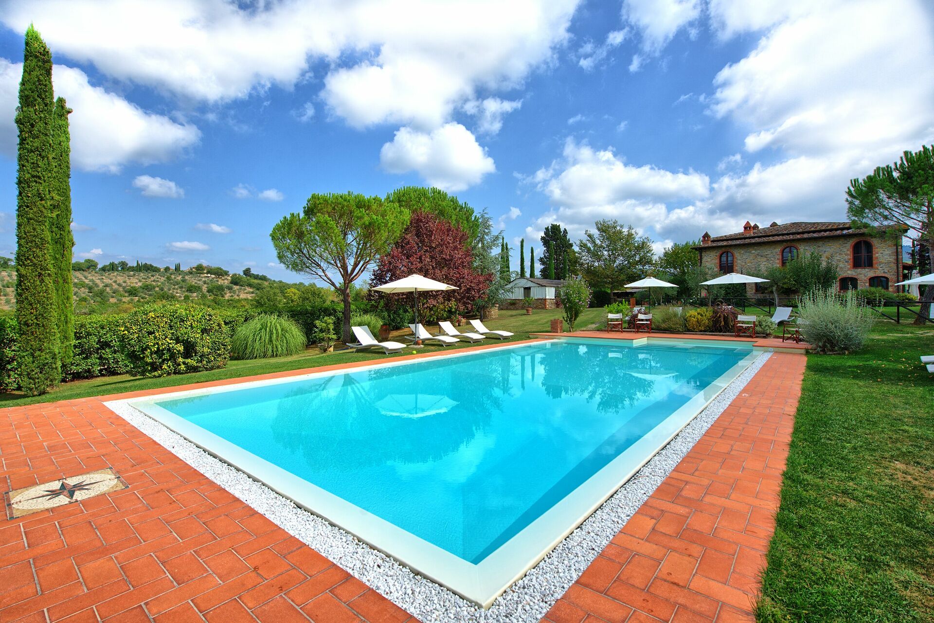 Questa panoramica villa in affitto con piscina privata in Toscana è un ottimo punto di partenza per visitare le bellezze artistiche della regione: Arezzo, Siena, la Val d'Orcia, il Chianti, Firenze, San Gimignano, Volterra.
