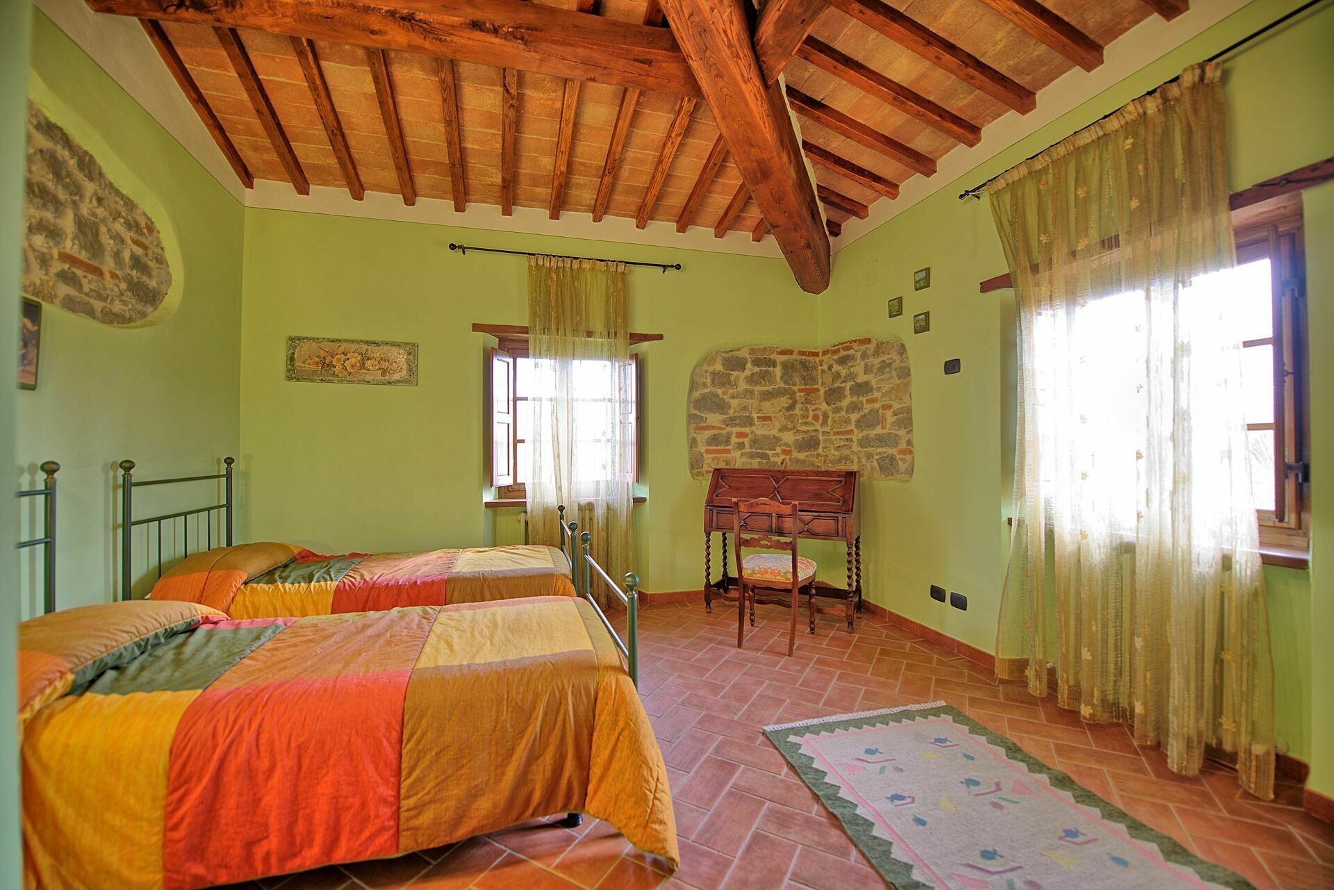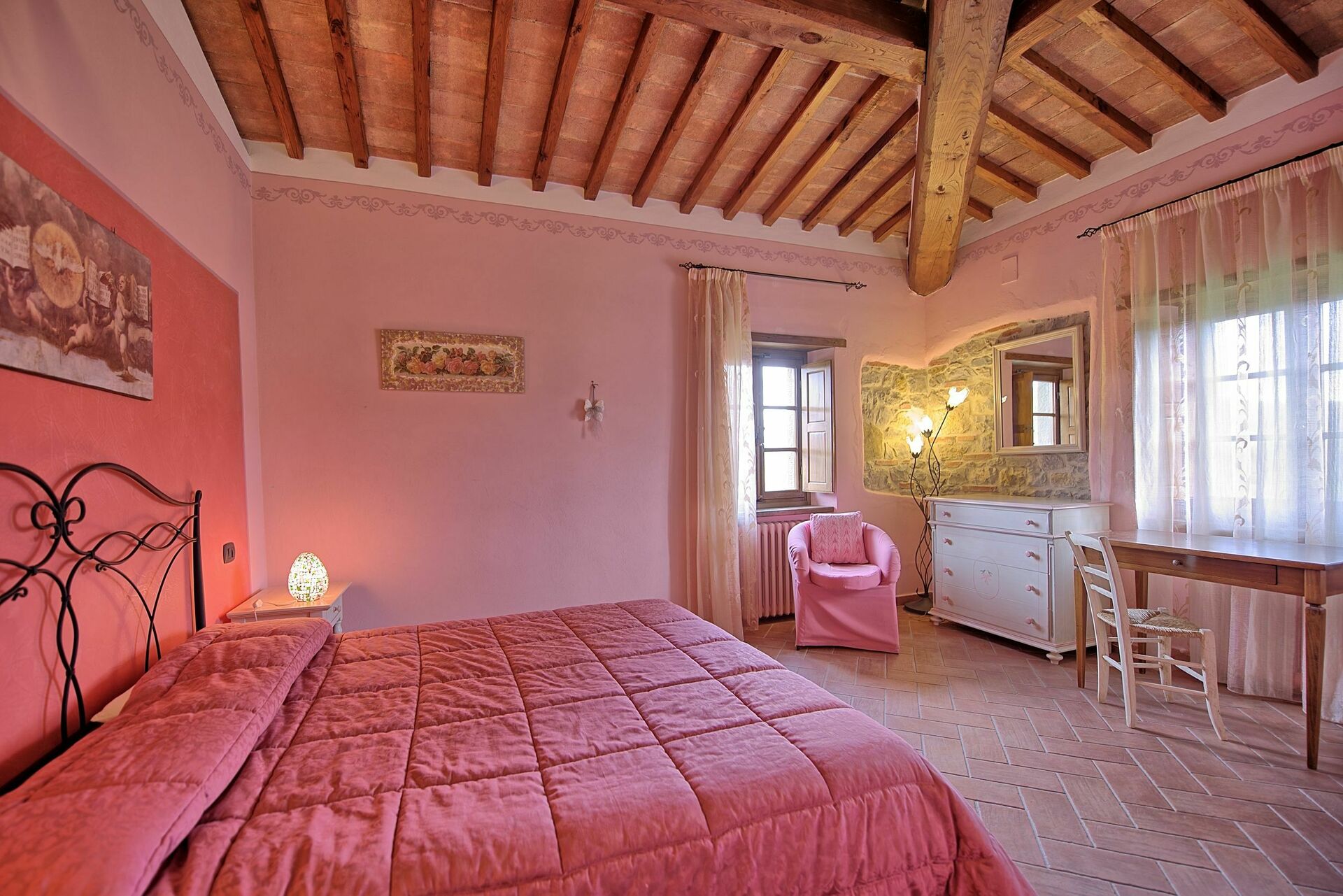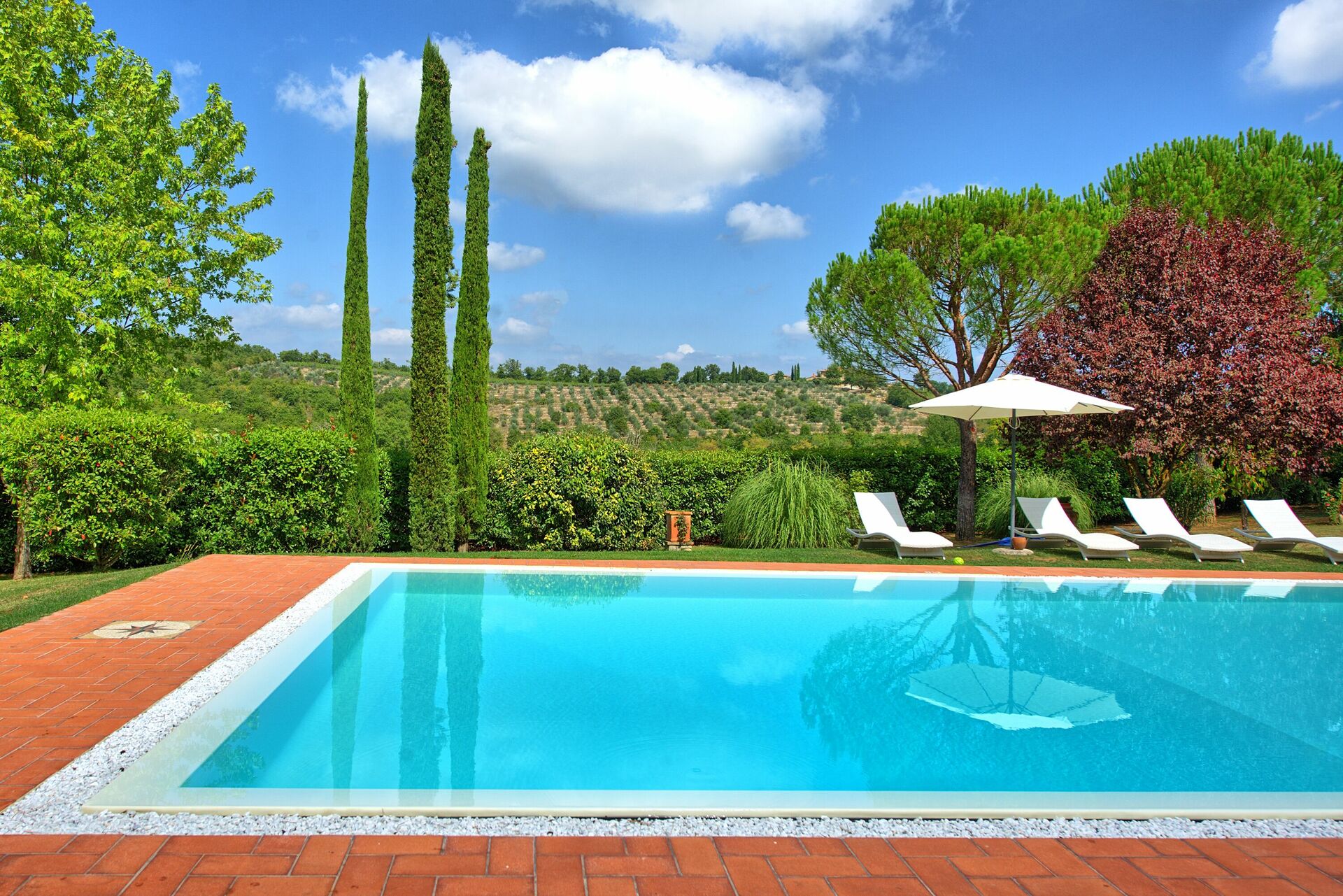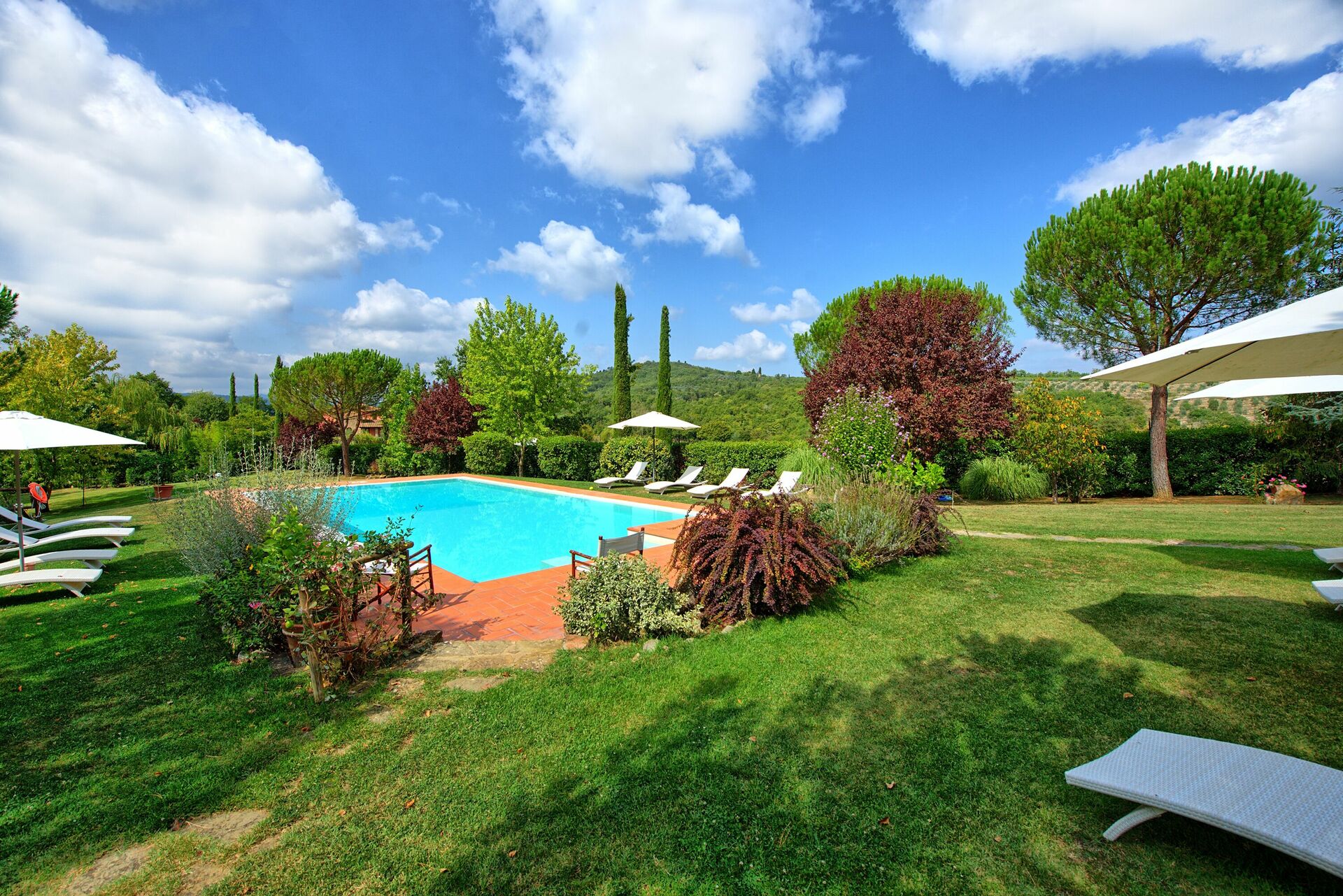 Questa panoramica villa in affitto con piscina privata in Toscana è un ottimo punto di partenza per visitare le bellezze artistiche della regione: Arezzo, Siena, la Val d'Orcia, il Chianti, Firenze, San Gimignano, Volterra.