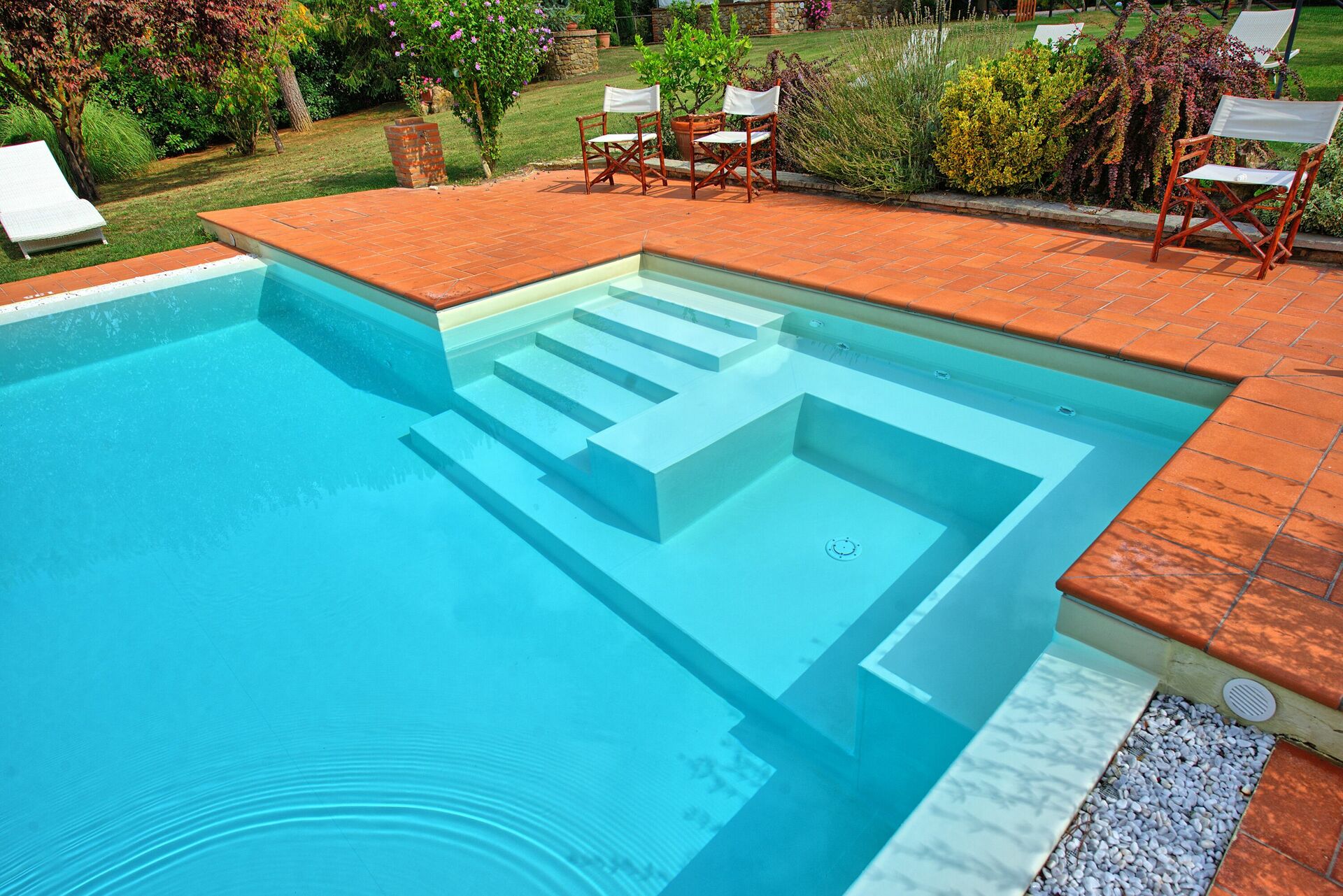 • piscina riservata all'uso esclusivo degli ospiti: 13 x 6 metri; profondità minima: 1,40 metri; profondità massima: 2,50 metri