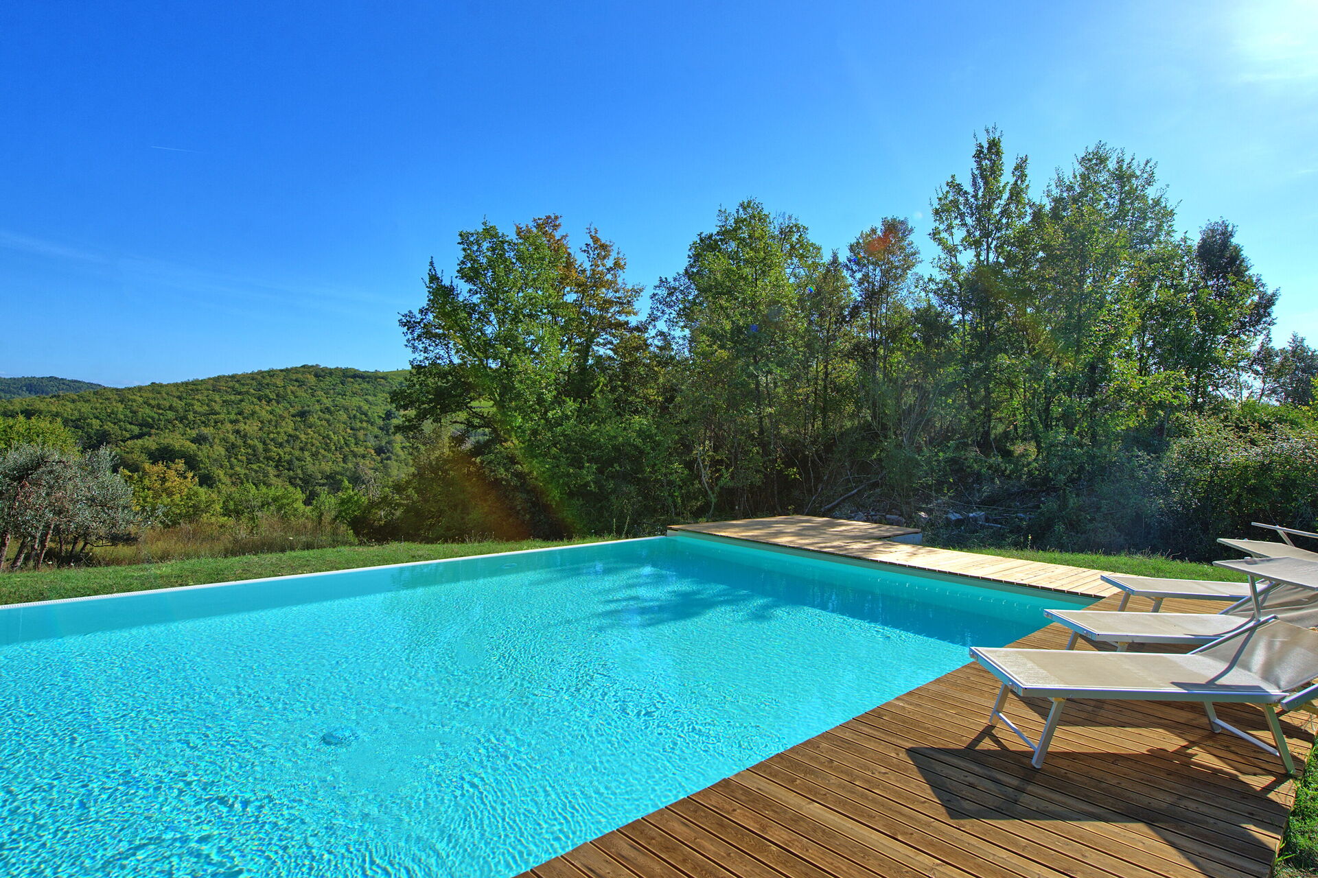Tutte le 3 unità dispongono di un ampio giardino comune e di una bella piscina panoramica il cui utilizzo è condiviso tra gli ospiti così come lettini e ombrelloni.
