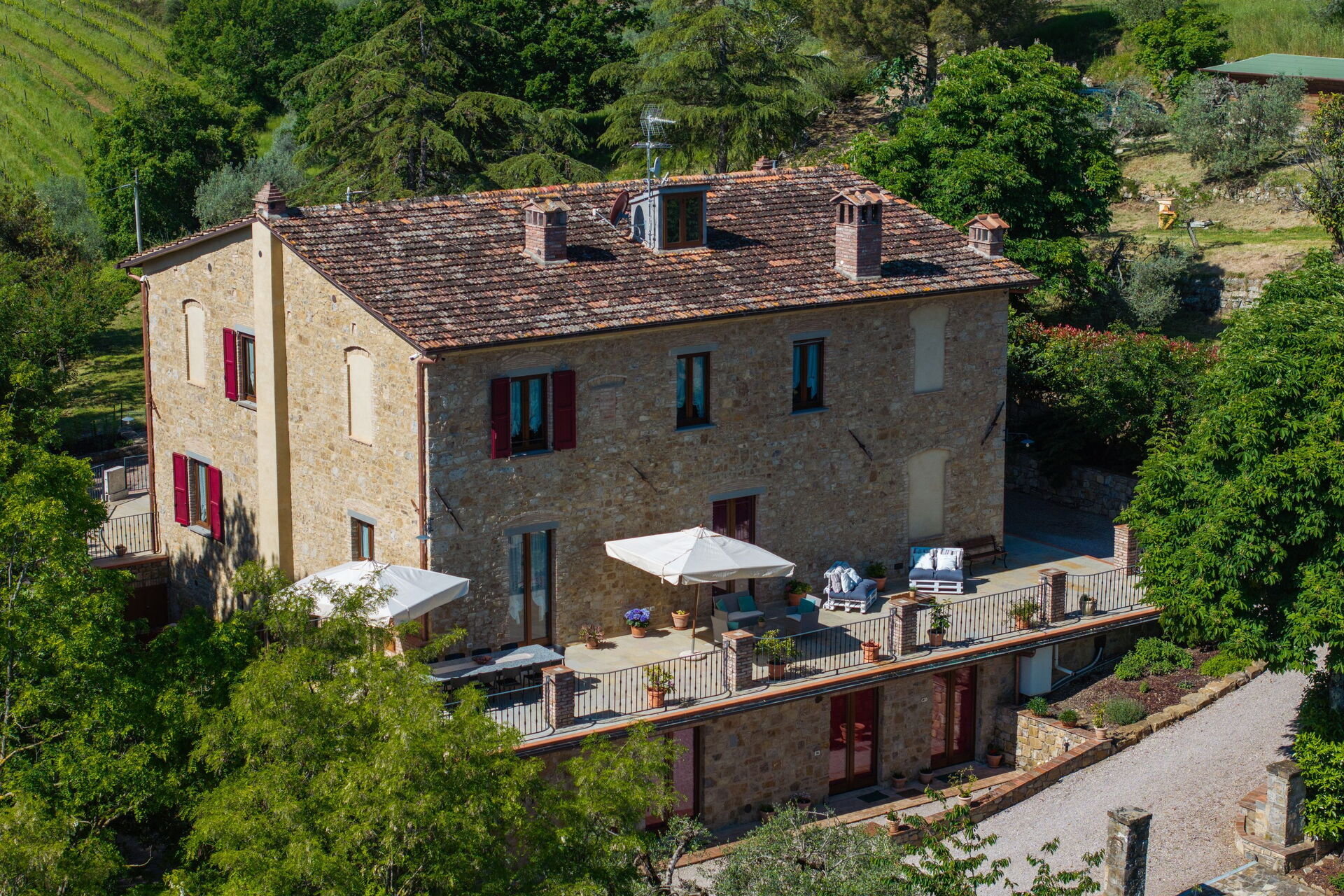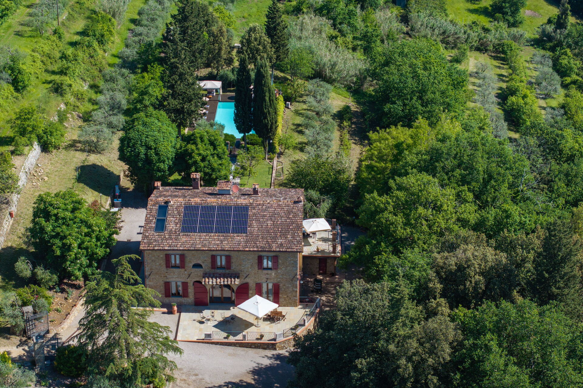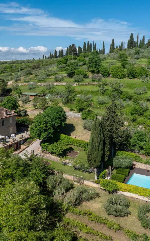 Tenuta Macericca è una bellissima villa con piscina privata situata in posizione panoramica nel verde della campagna toscana a metà strada tra Firenze e Siena.