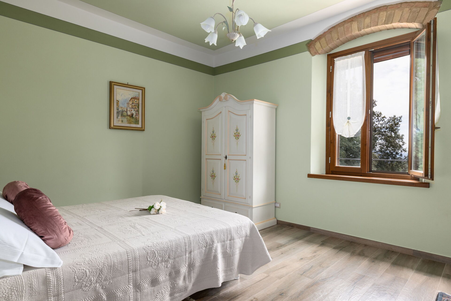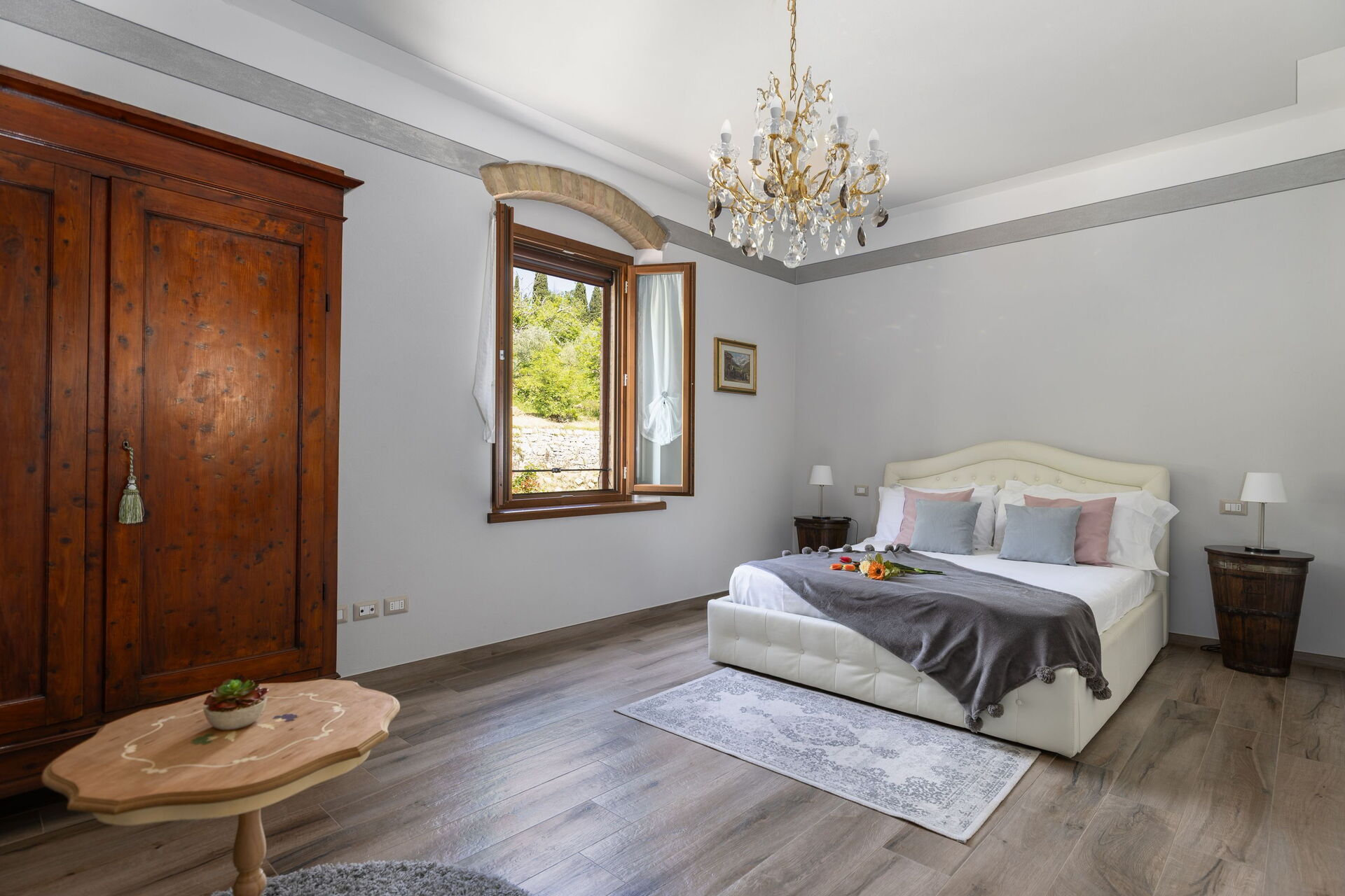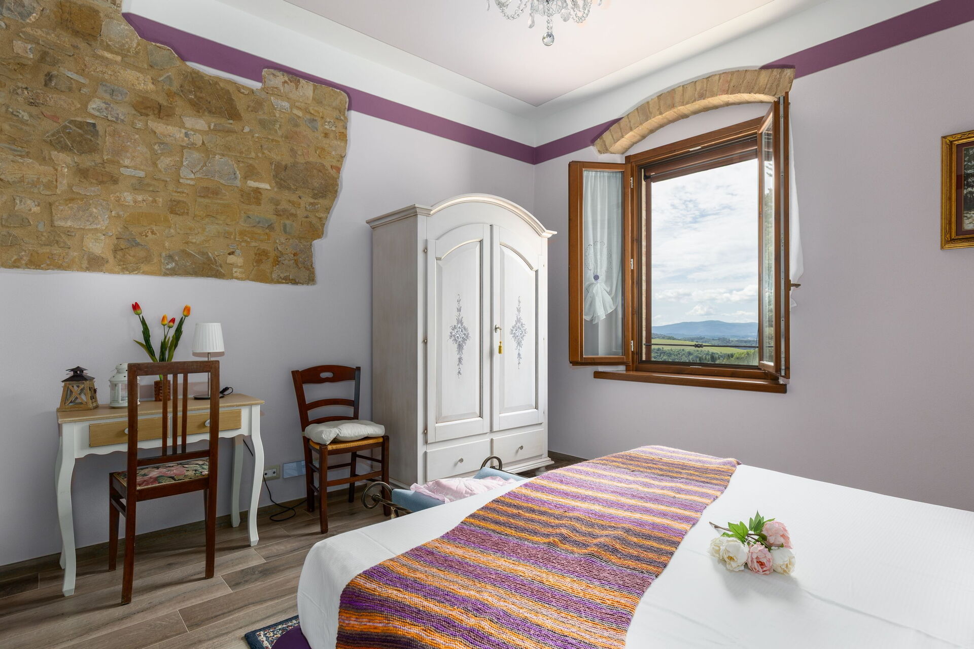Questa esclusiva proprietà risale ai primi anni del 1900 ed è stata ristrutturata con cura: gli interni sono arredati con gusto, sono luminosi, accoglienti e distribuiti su due livelli; grazie alle sue 5 camere matrimoniali (ognuna dotata di bagno privato en-suite) è possibile ospitare comodamente fino a 10 persone.