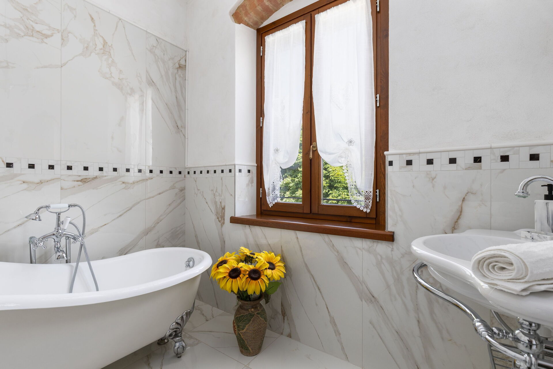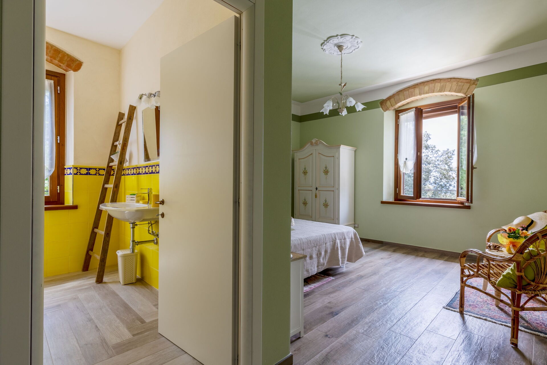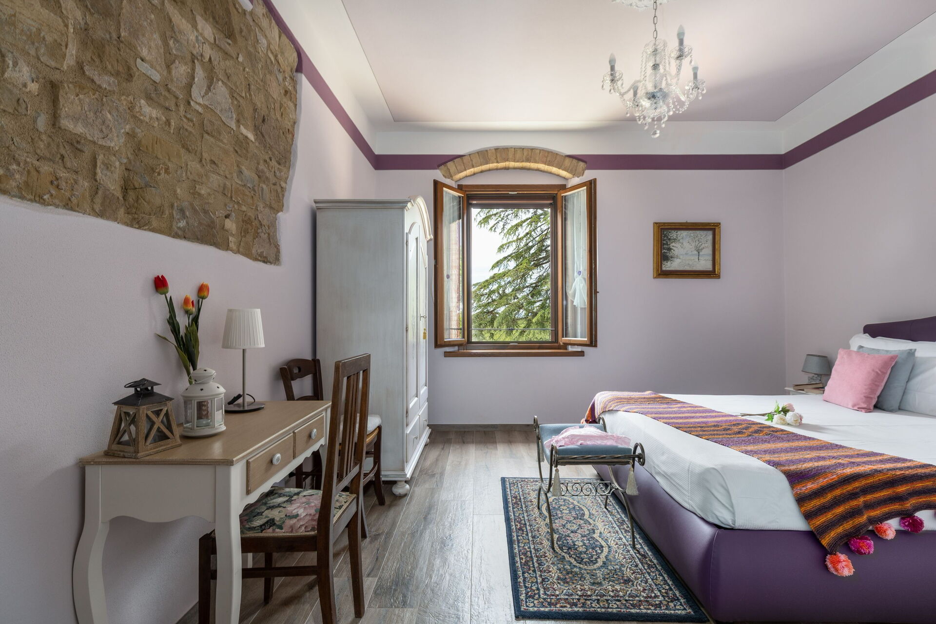 Questa esclusiva proprietà risale ai primi anni del 1900 ed è stata ristrutturata con cura: gli interni sono arredati con gusto, sono luminosi, accoglienti e distribuiti su due livelli; grazie alle sue 5 camere matrimoniali (ognuna dotata di bagno privato en-suite) è possibile ospitare comodamente fino a 10 persone.