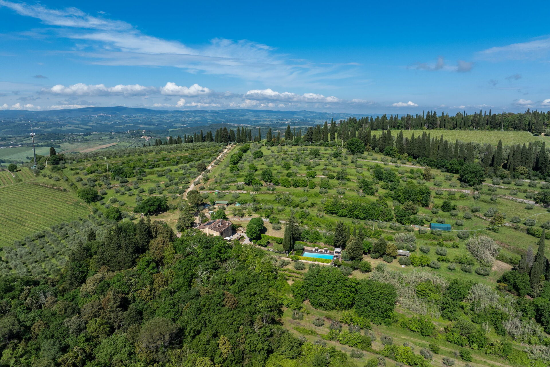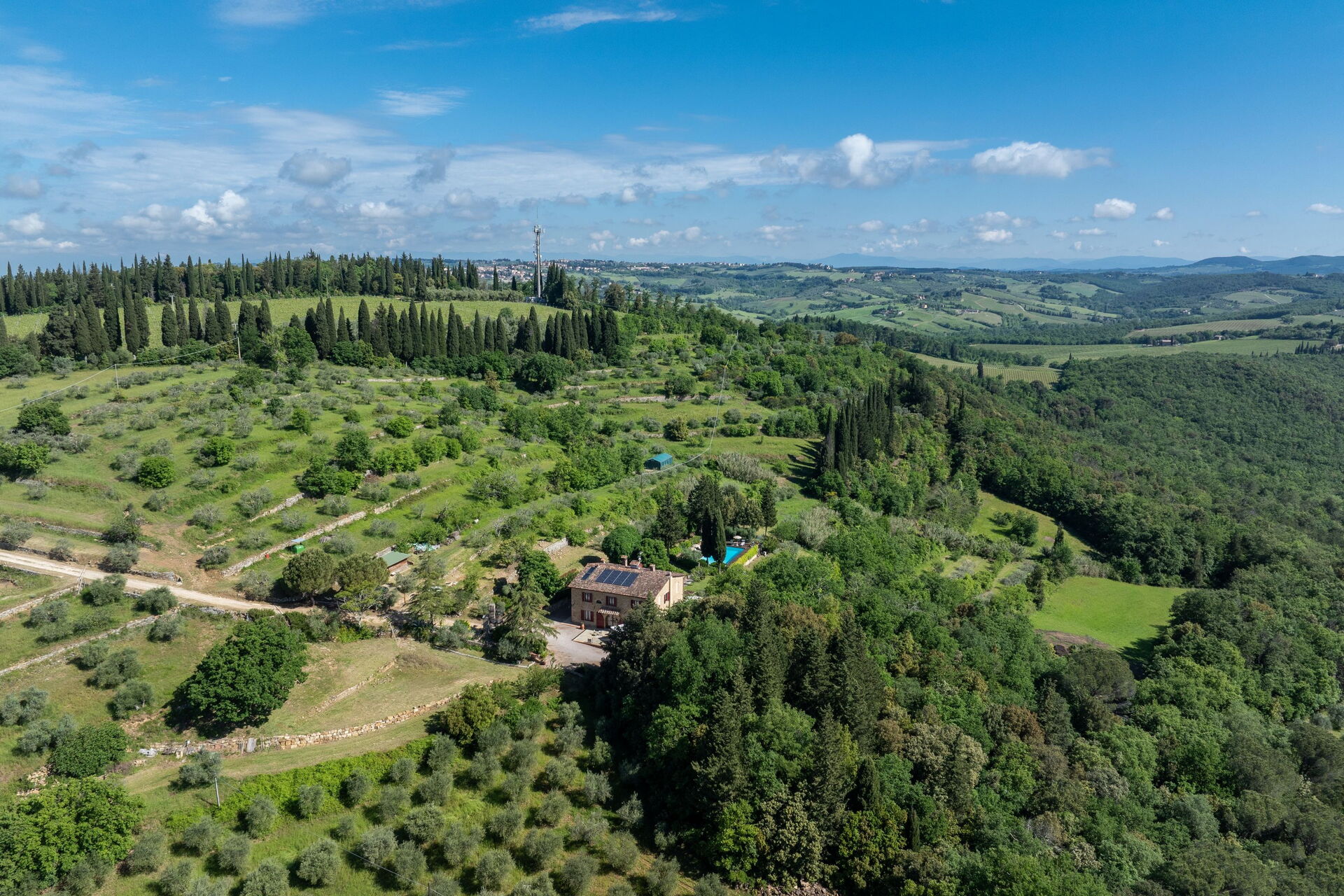 Distanze: Poggibonsi con negozi di ogni genere a 7 km, Barberino Tavarnelle a 12 km, San Gimignano a 18 km, Monteriggioni a 23 km, Siena a 38 km, Volterra a 48 km, i paesi del Chianti si trovano nel raggio di 25 – 50 km, Firenze a 48 km, Firenze (aeroporto) a 53 km, Pisa a 95 km.