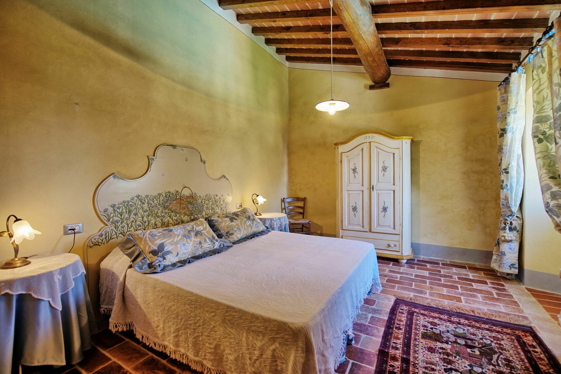 La villa in affitto è fornita di tutti i comfort ed i servizi necessari a soddisfare anche gli ospiti più esigenti. Affittando questa incantevole casa vacanze in Toscana sarete certi di accogliere amici e familiari in un ambiente elegante e suggestivo. La casa è confortevole e ha mantenuto alcuni tratti tipici delle antiche case coloniche (travi a vista e pavimenti in cotto). Grazie alle sue 7 camere da letto e ai numerosi spazi in comune, la villa vacanze può ospitare fino a 16 persone nei suoi caldi e luminosi interni, arredati in stile rustico tipico delle case di campagna in Toscana.