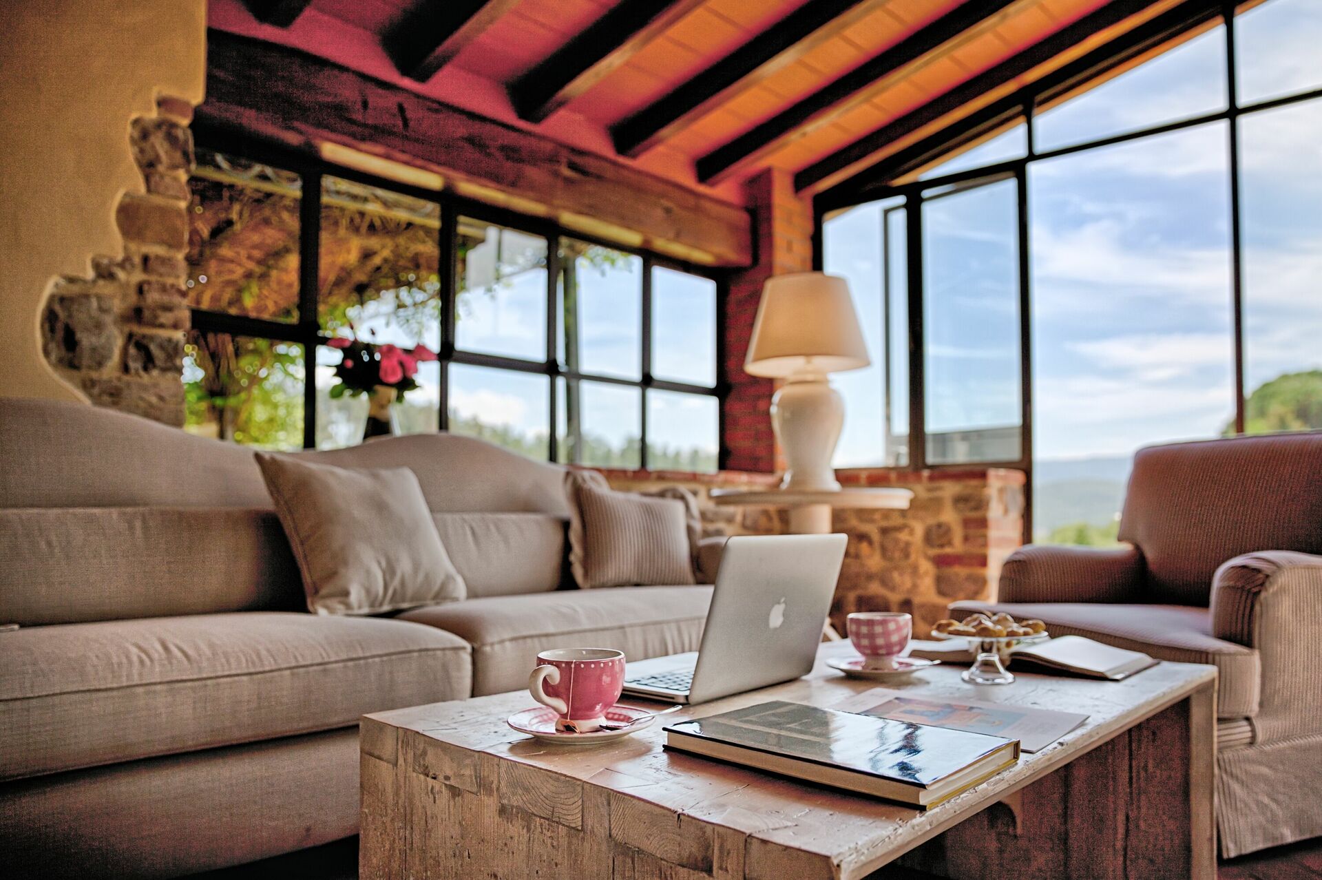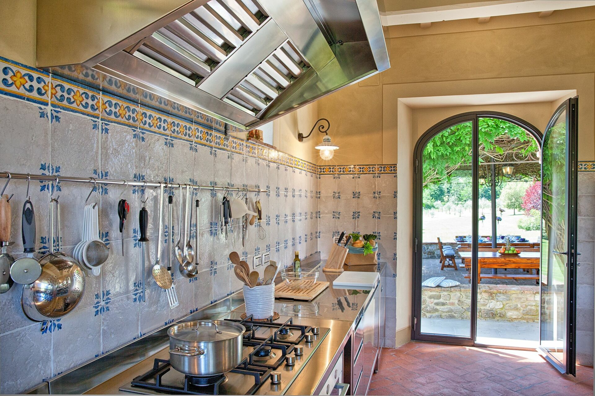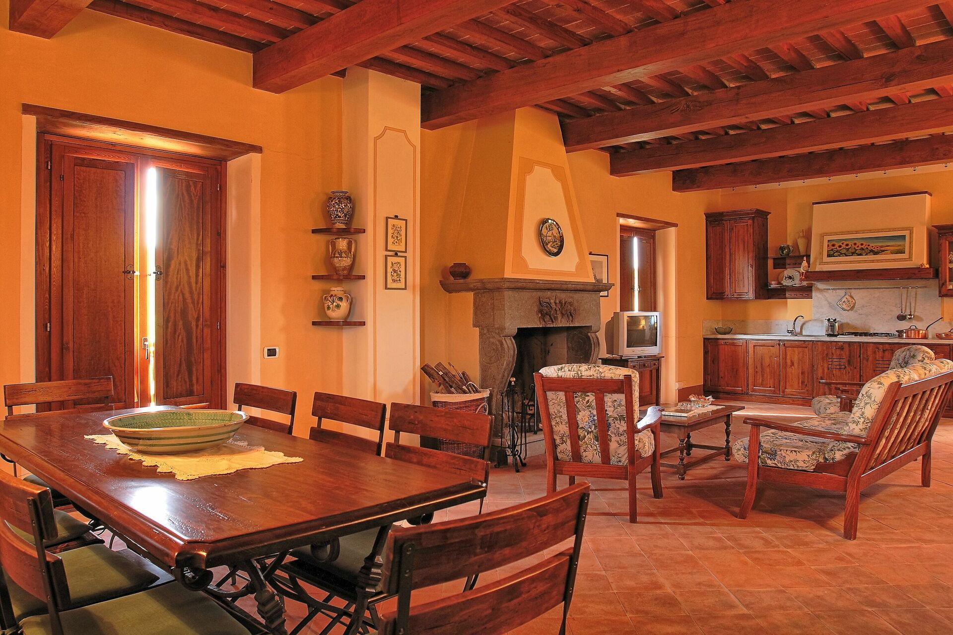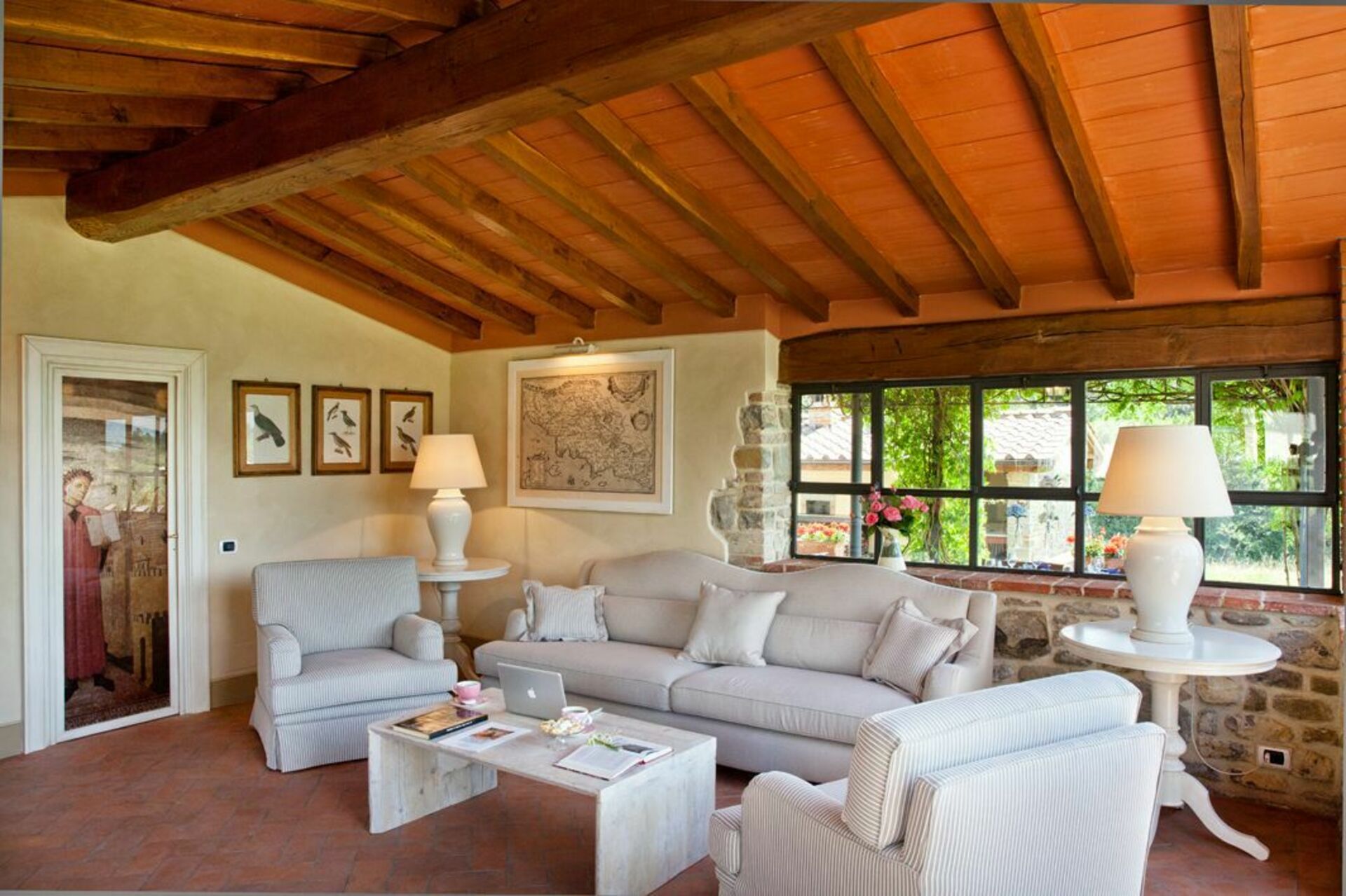 Ristrutturata recentemente, ha mantenuto intatto il fascino originale grazie alle rifiniture di pregio, quali antichi travi in legno, pavimenti in cotto e caminetti di pietra nei saloni, alla scelta dei colori ed agli ambienti ampi e luminosi. L'arredamento, scelto con cura, è di certo all'insegna delle funzionalità e del comfort, ma si distingue per la ricercatezza dei complementi e per il calore dato dai mobili tipicamente toscani come si conviene ad ogni classica casa toscana.