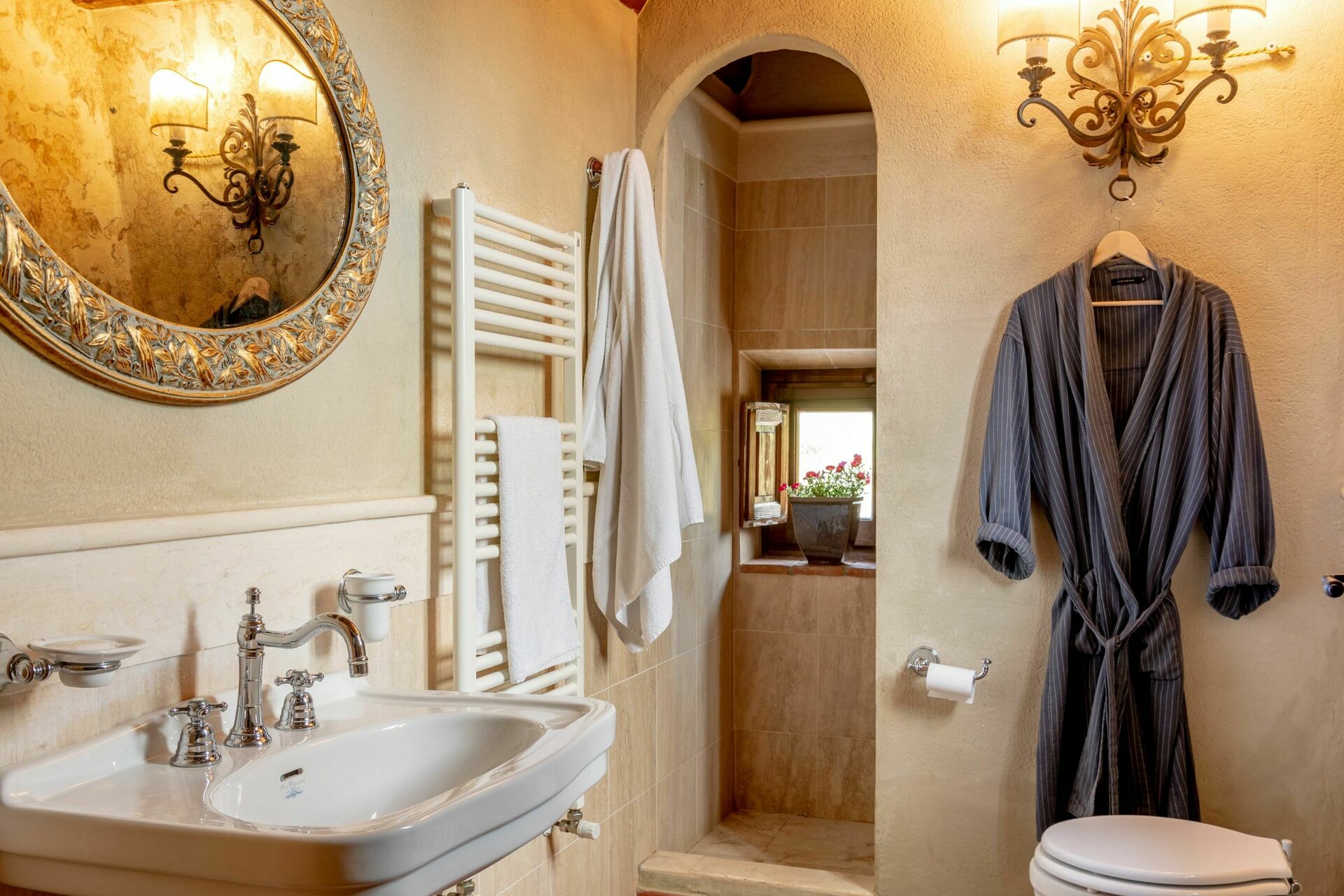 Primo piano: 5 camere da letto matrimoniali con bagno private con doccia (alcune di queste camere possono essere trasformate in camere con 2 letti singoli su richiesta).